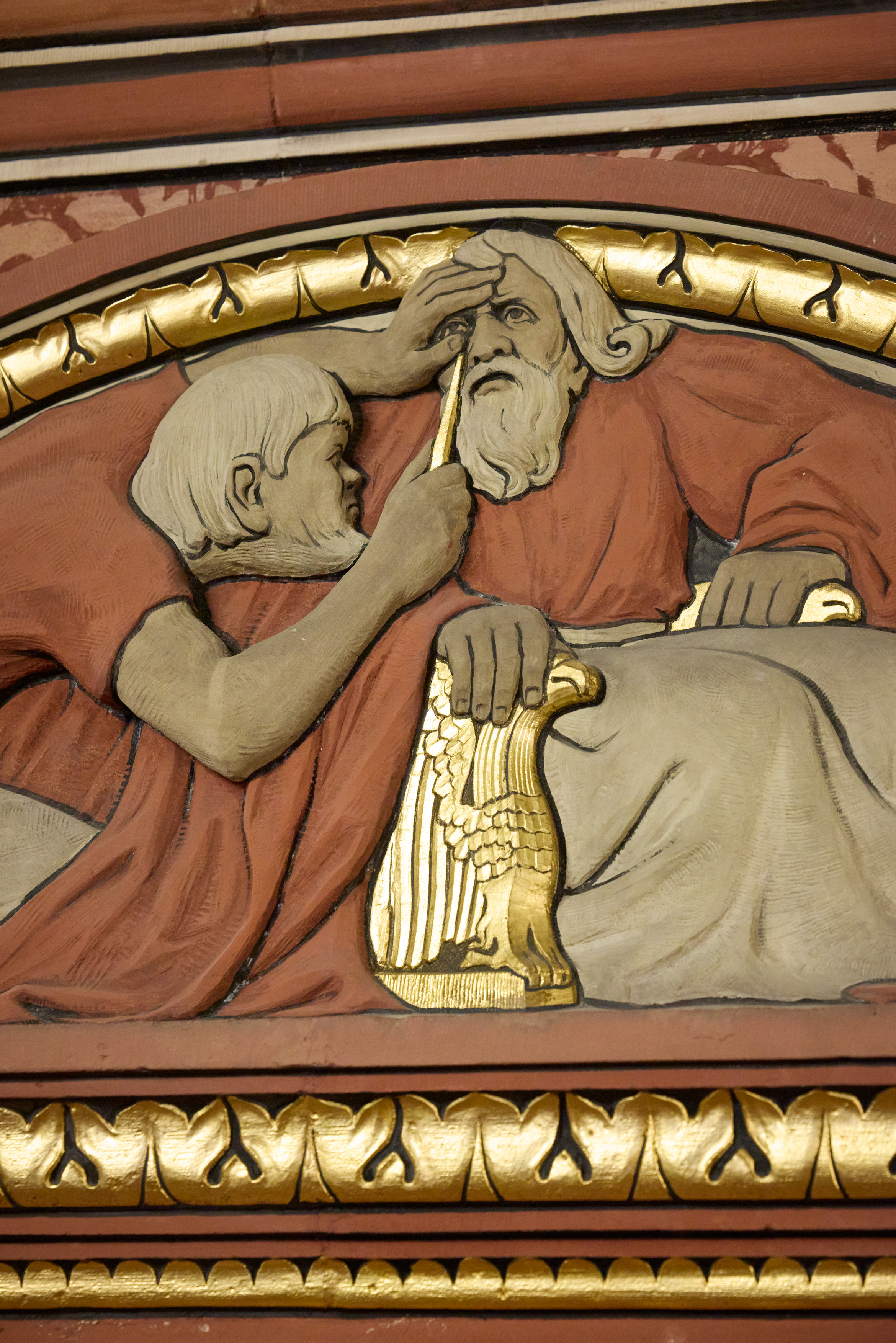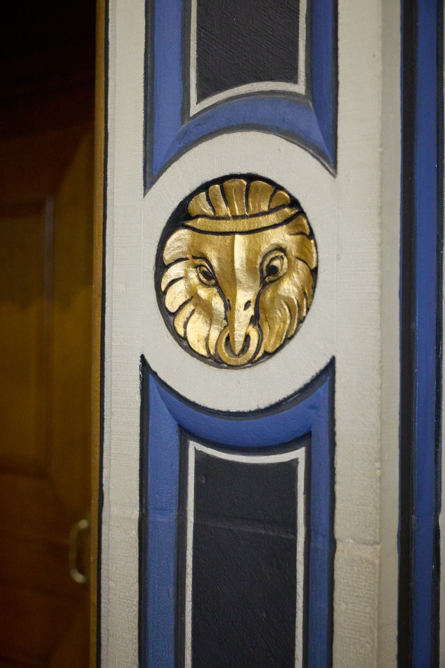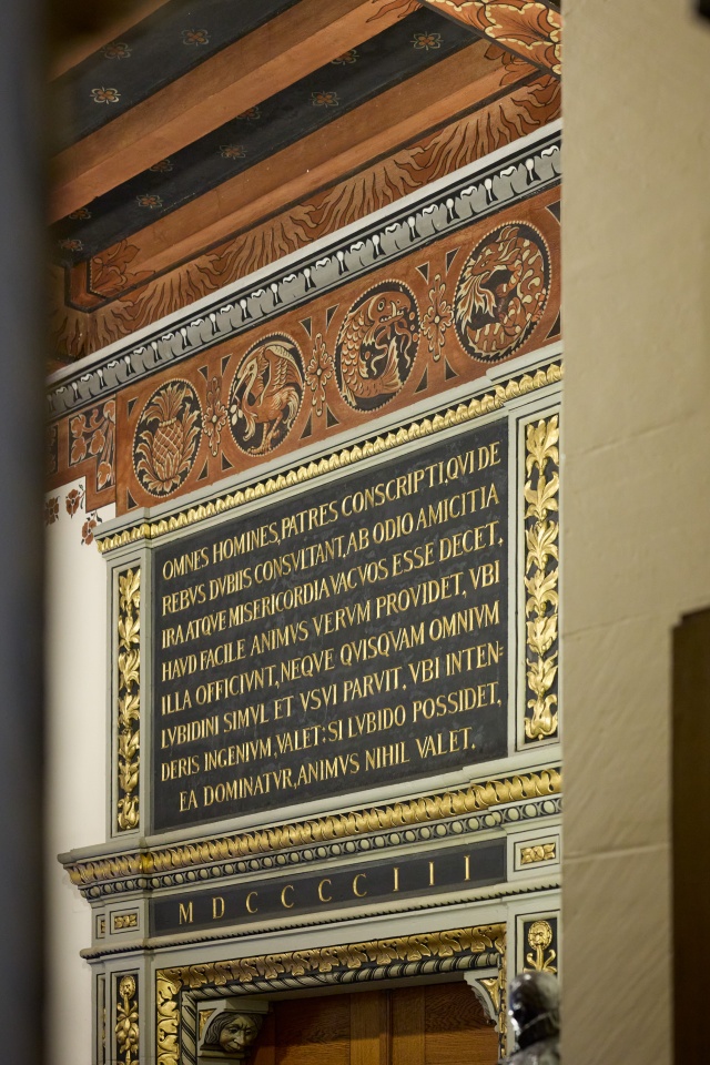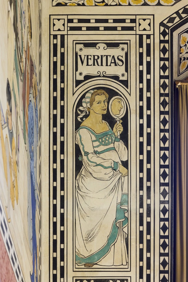 Bogenfeld über einer der vier Türen zum Grossratssaal: Gerechtigkeit (Zeleukos)