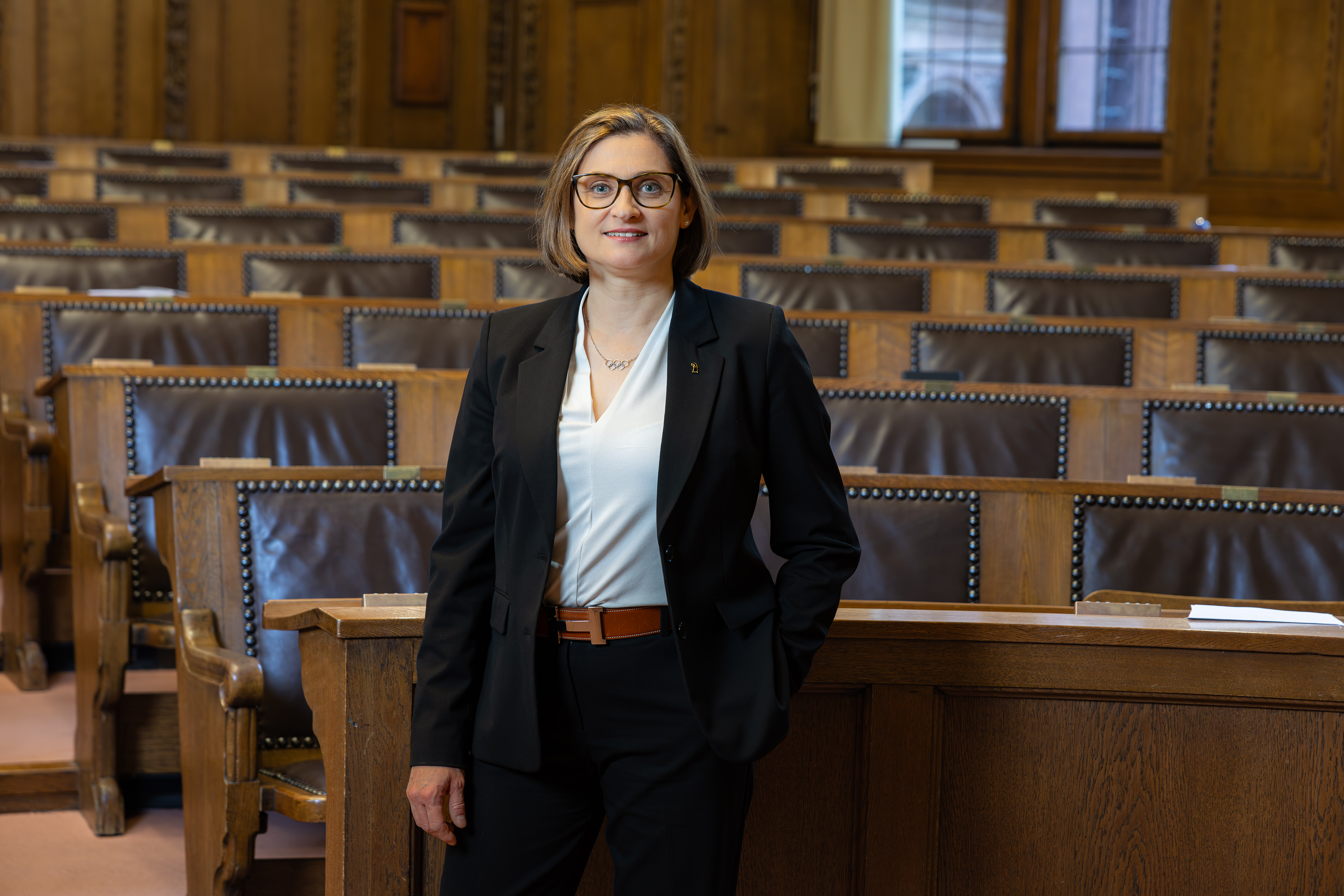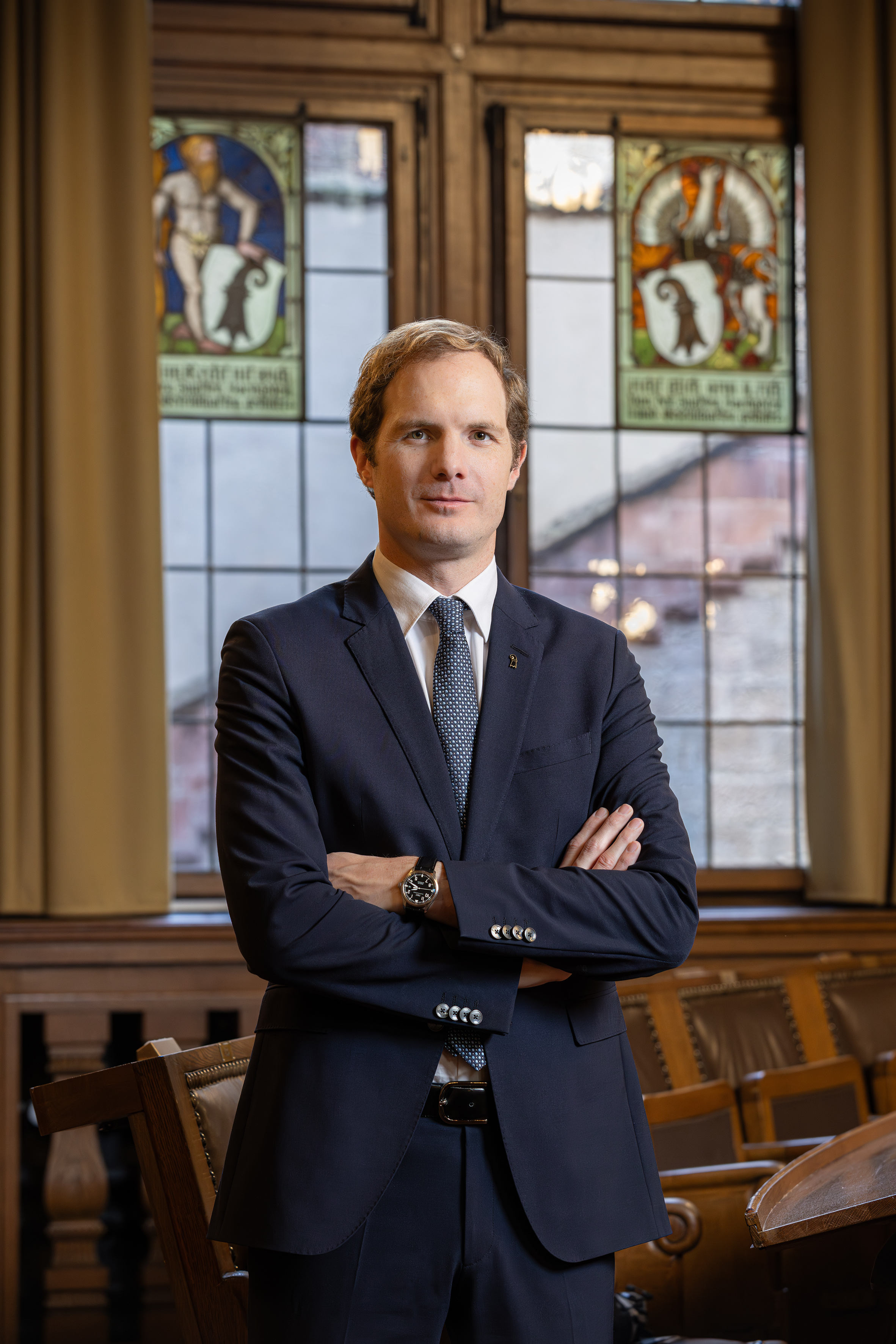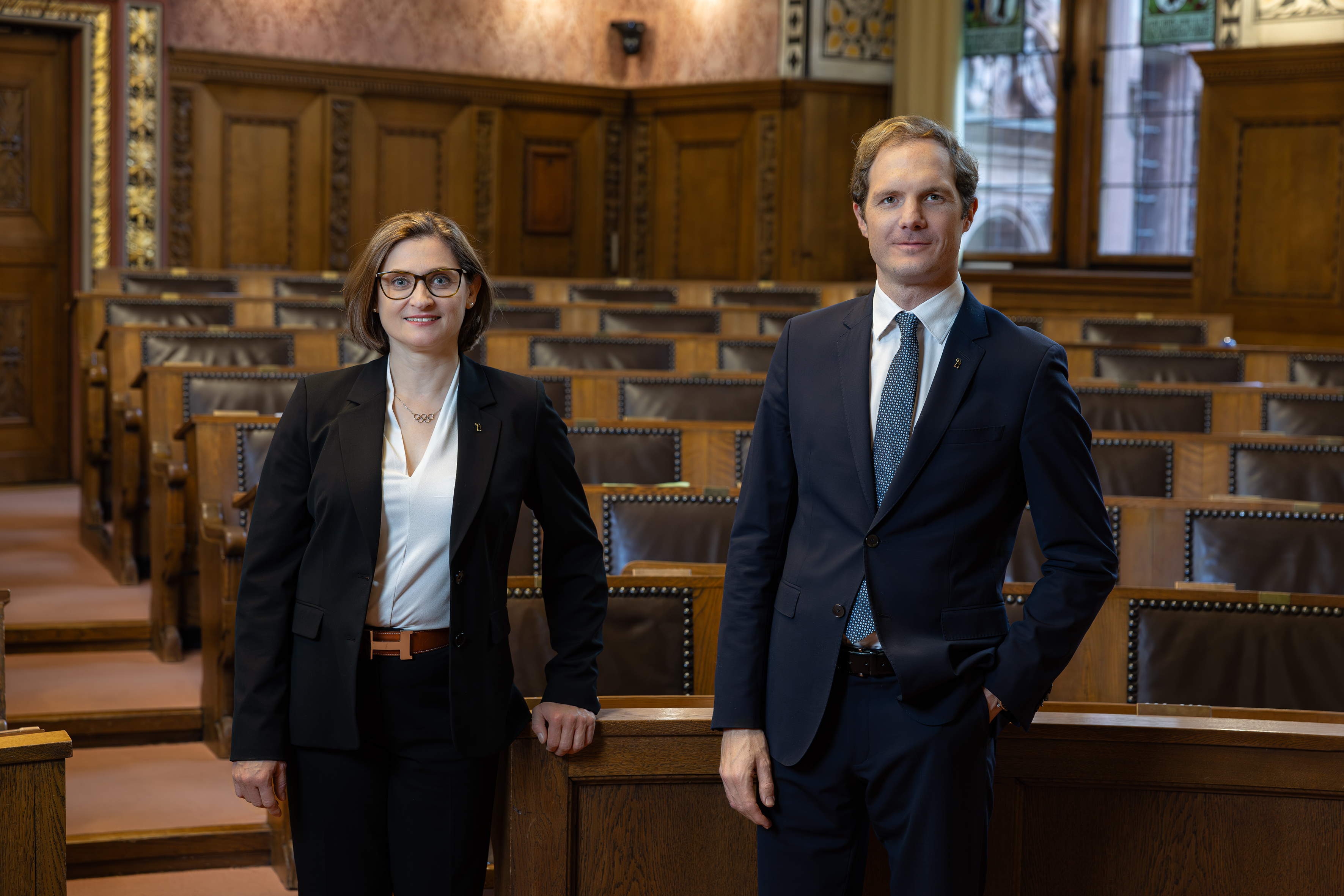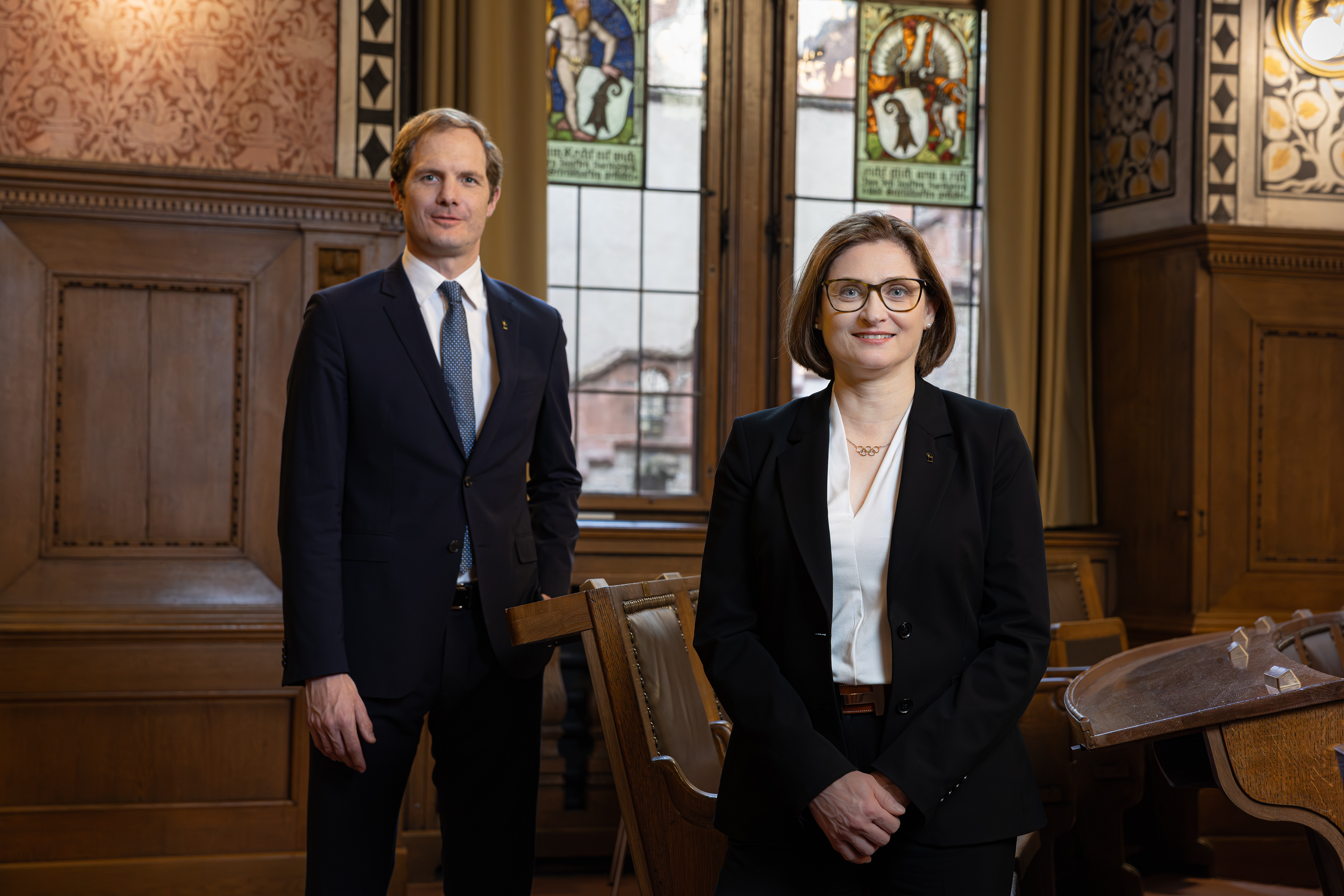Michael Hug und Gianna Hablützel-Bürki auf der Empore (2. Stock) des Rathauses
