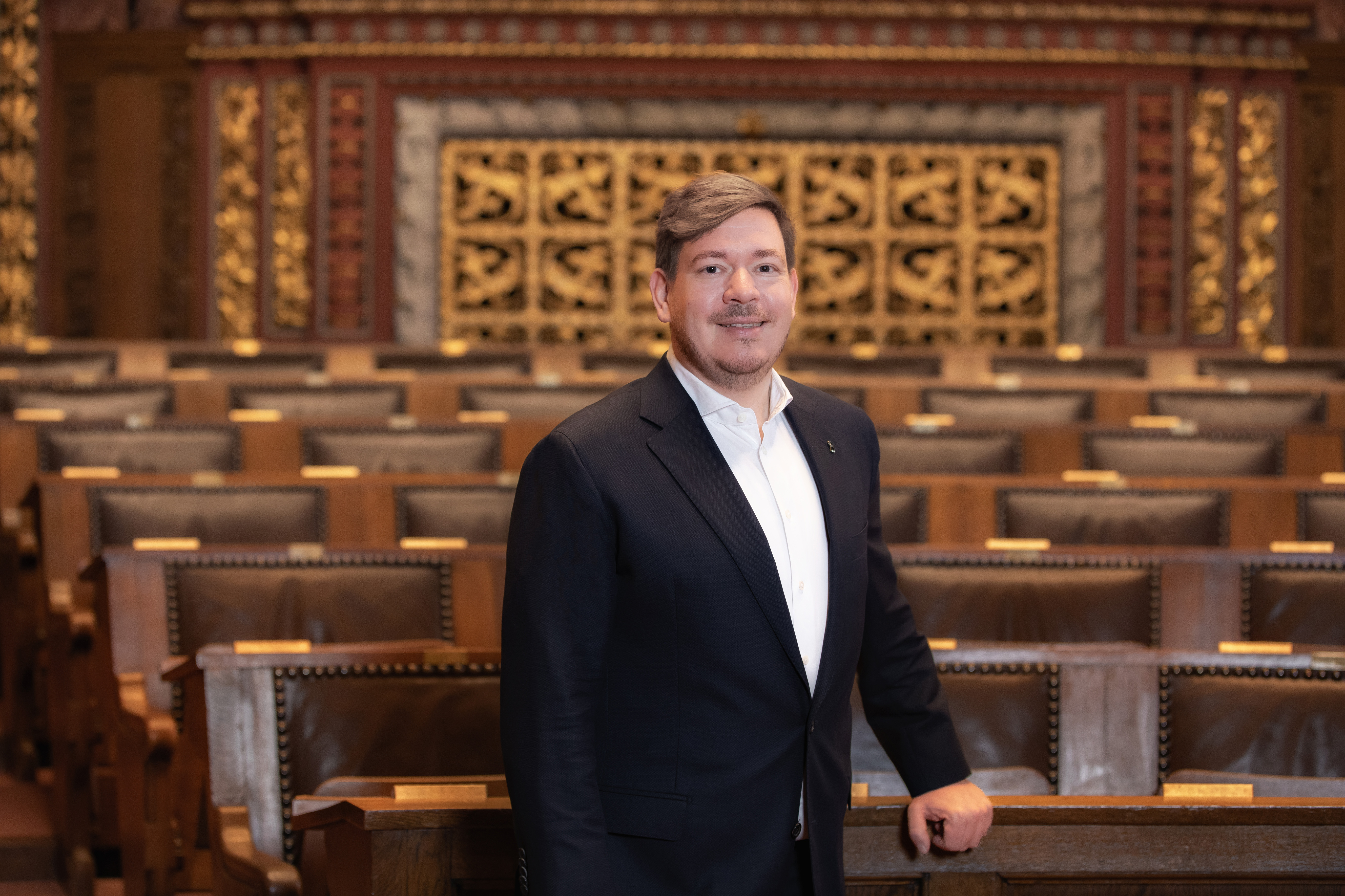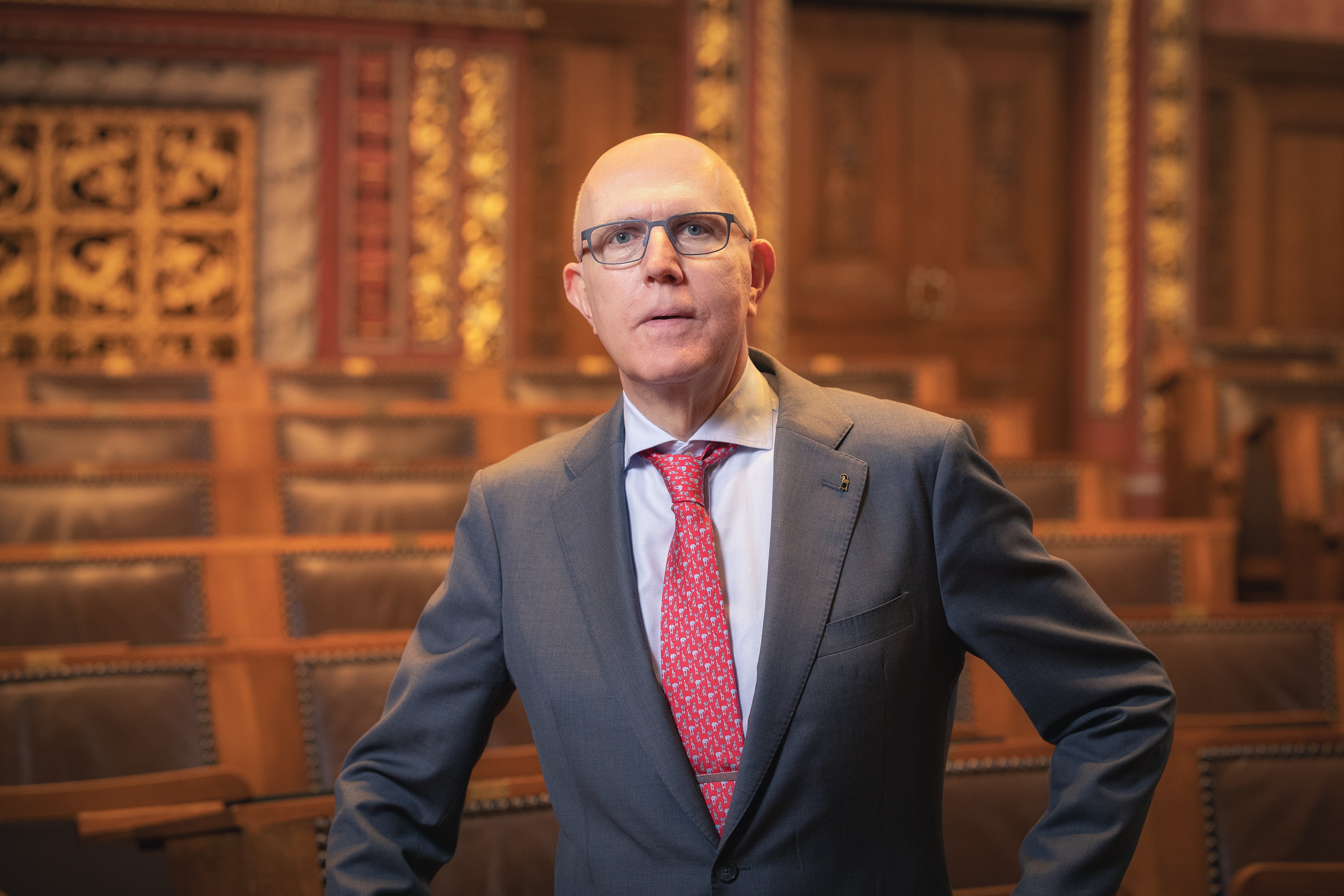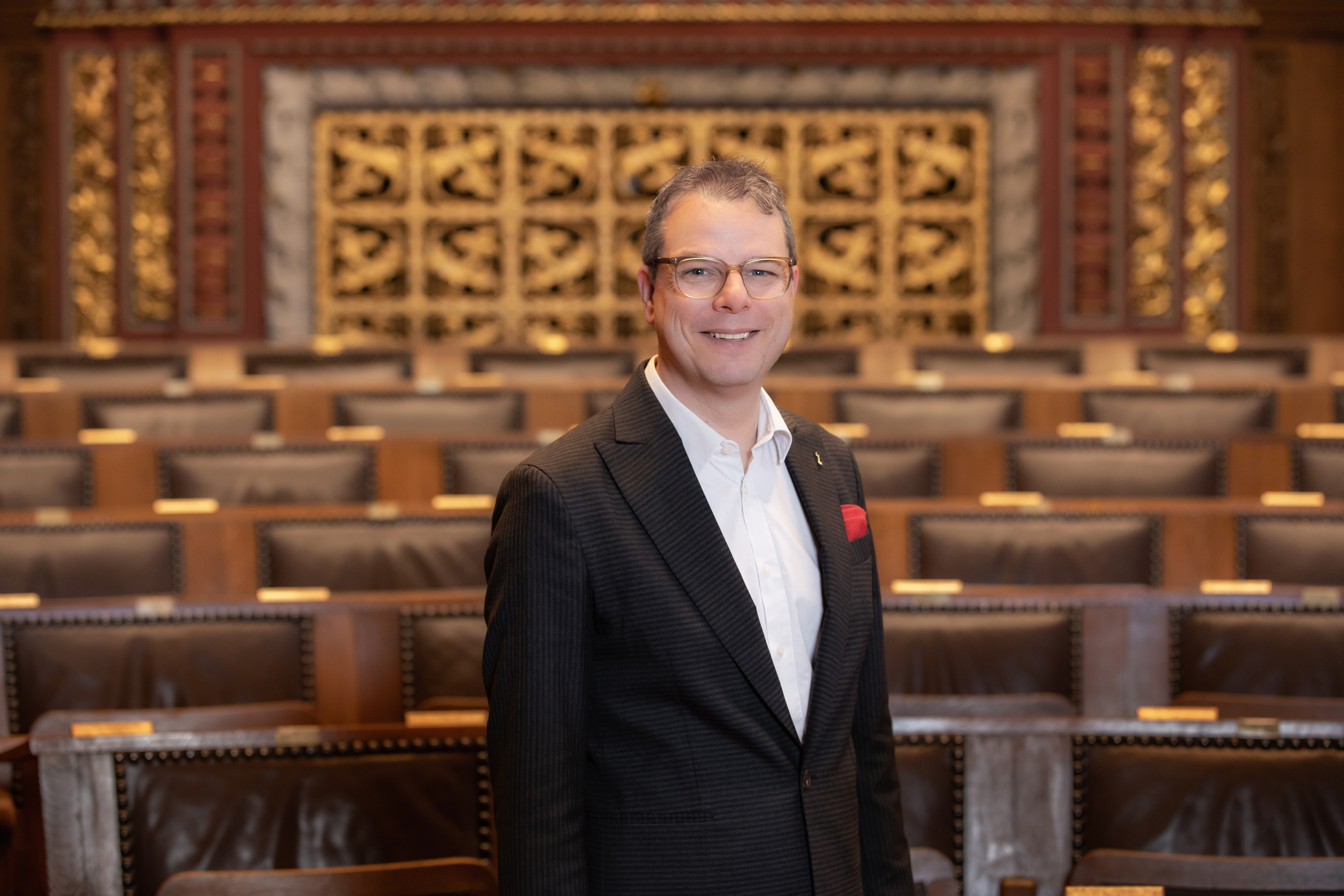 Balz Herter, Grossratspräsident 2025, im leeren Saal