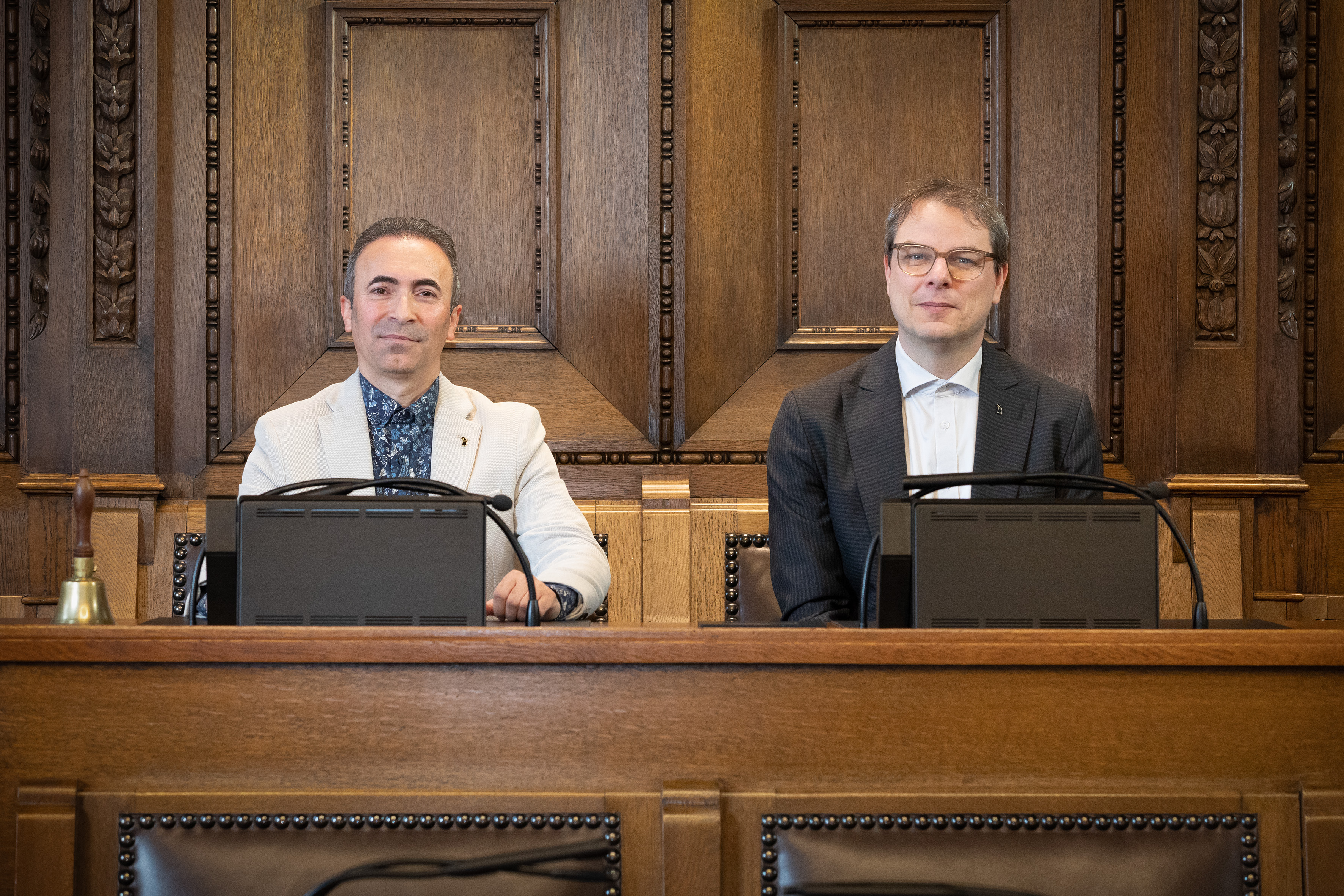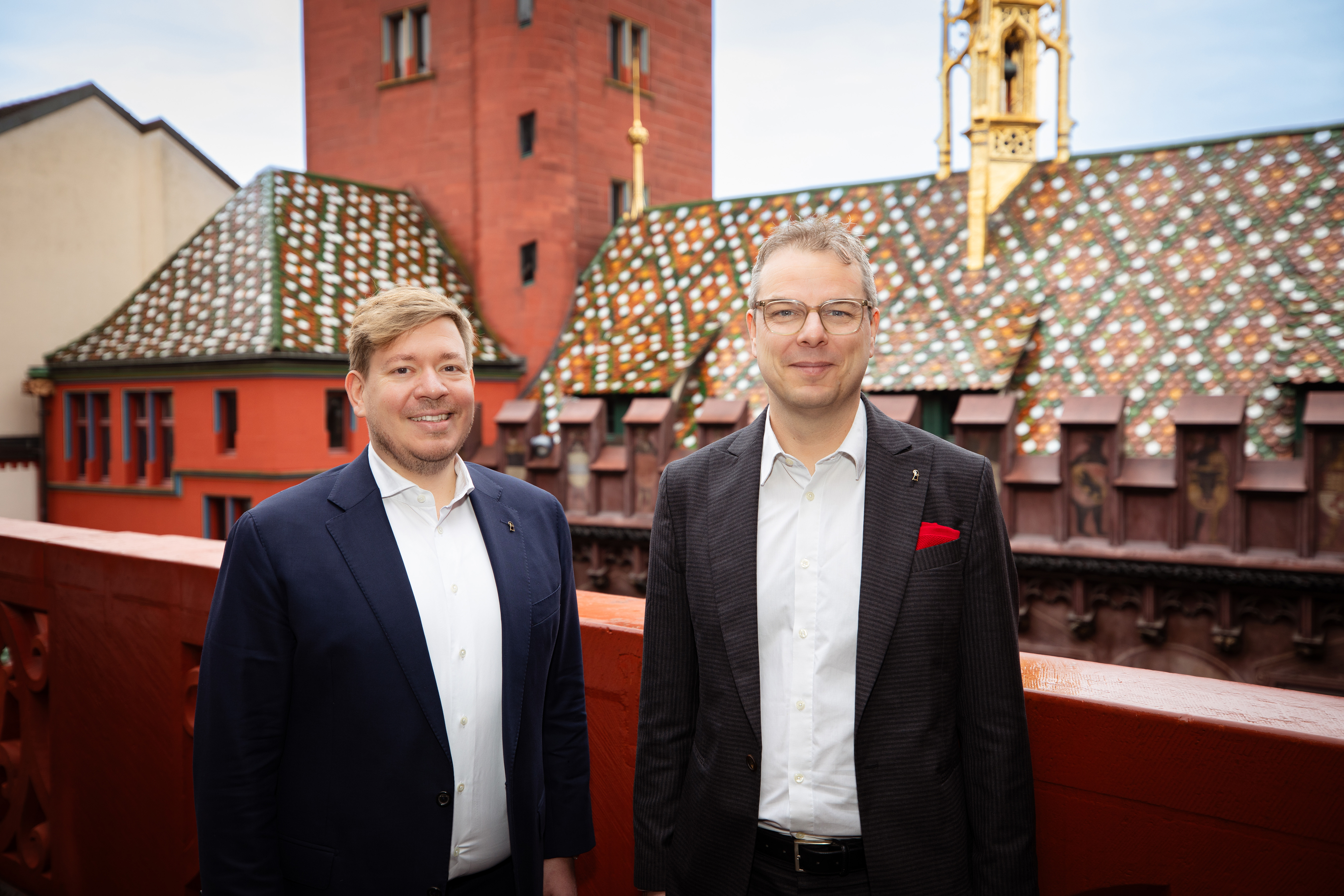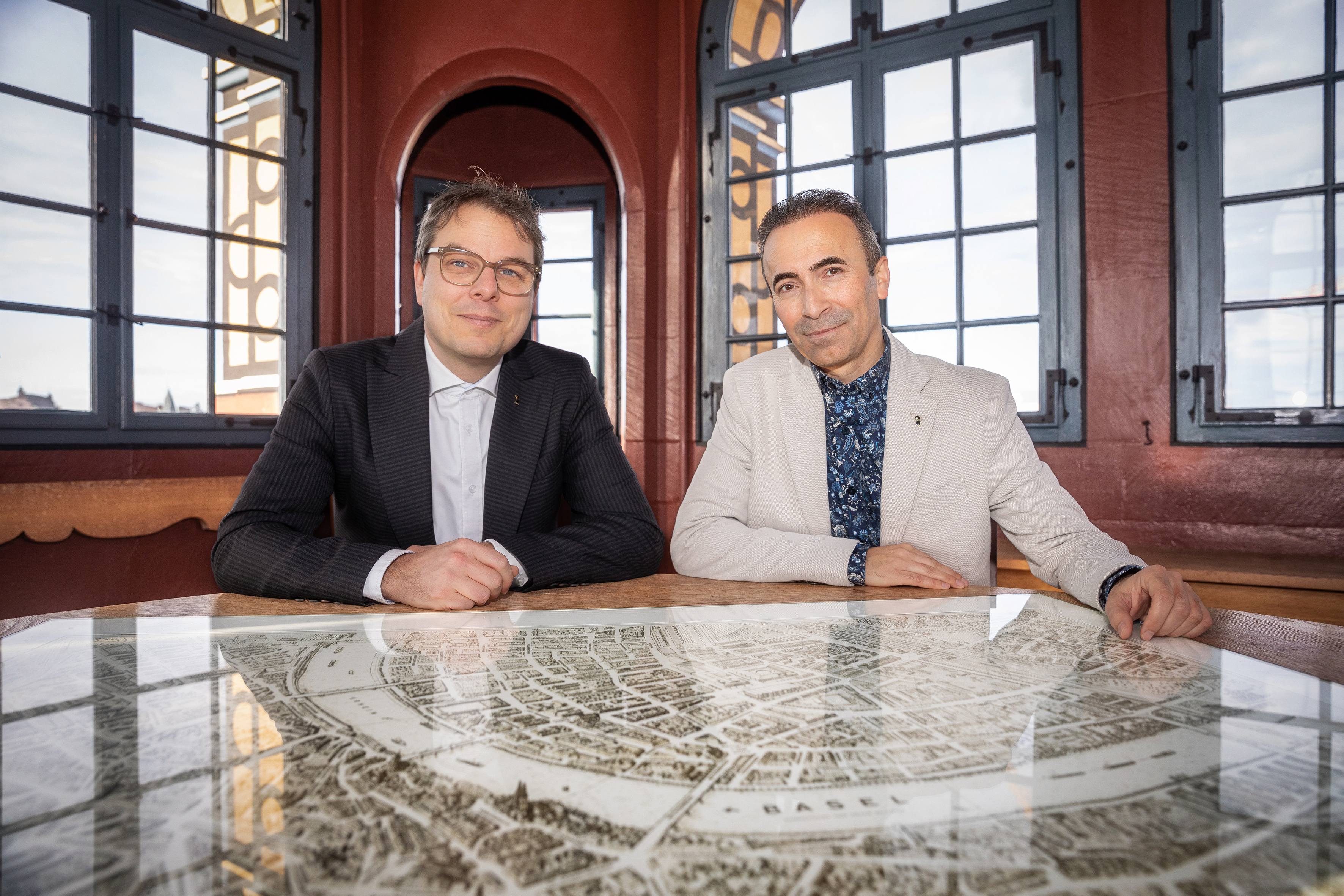 Claudio Miozzari und Bülent Pekerman im Rathausturm, vor einer Stadtkarte