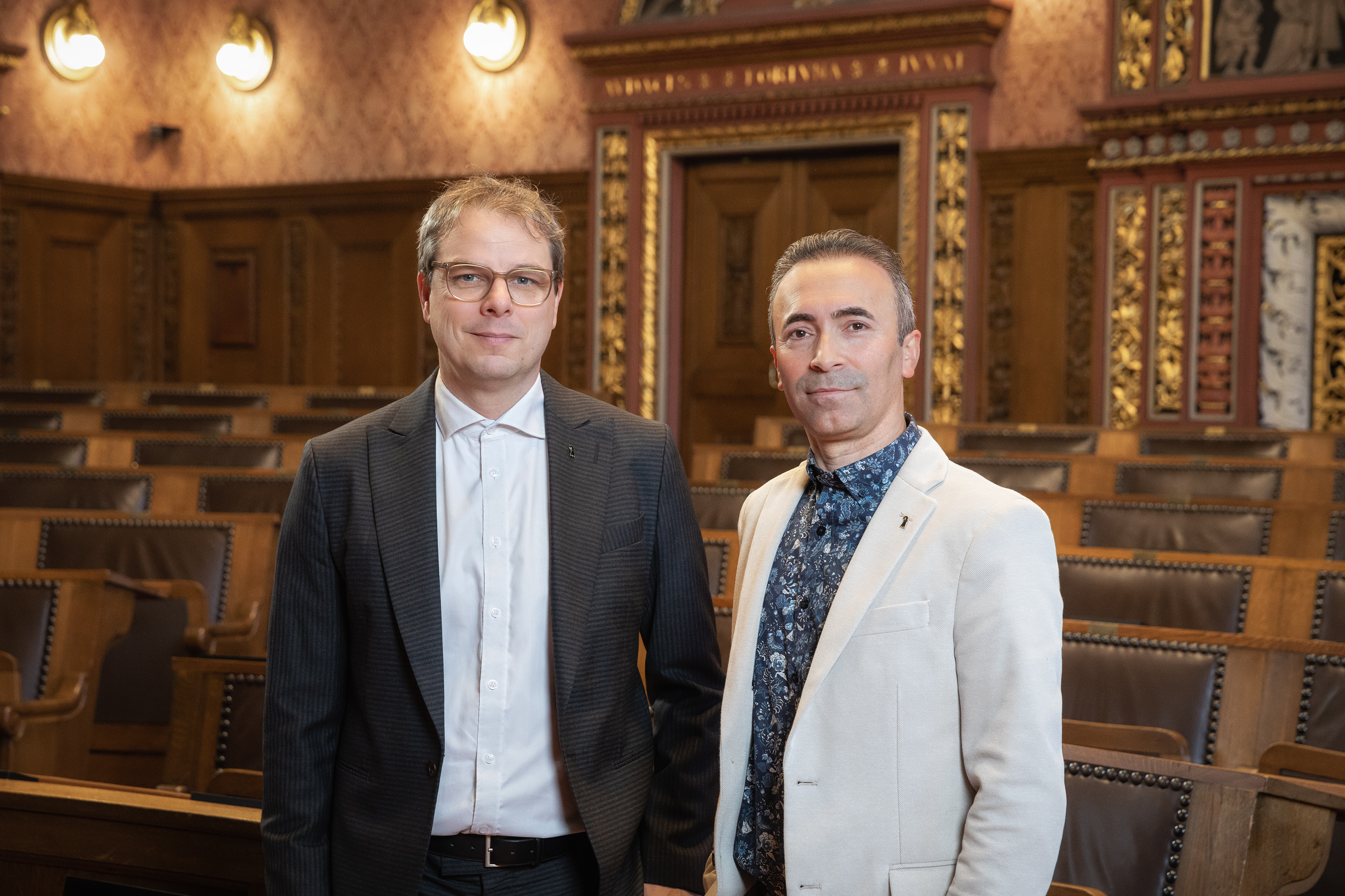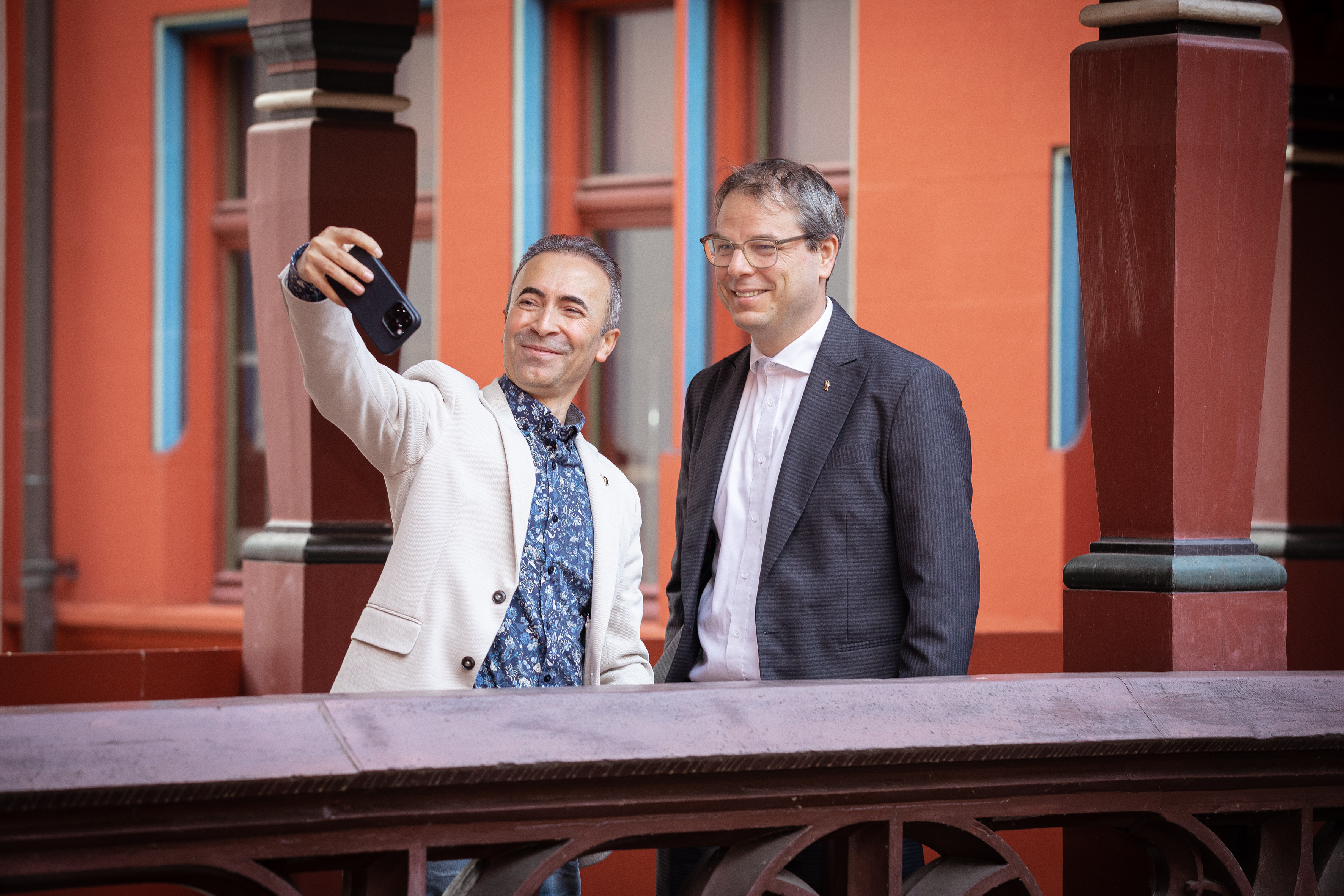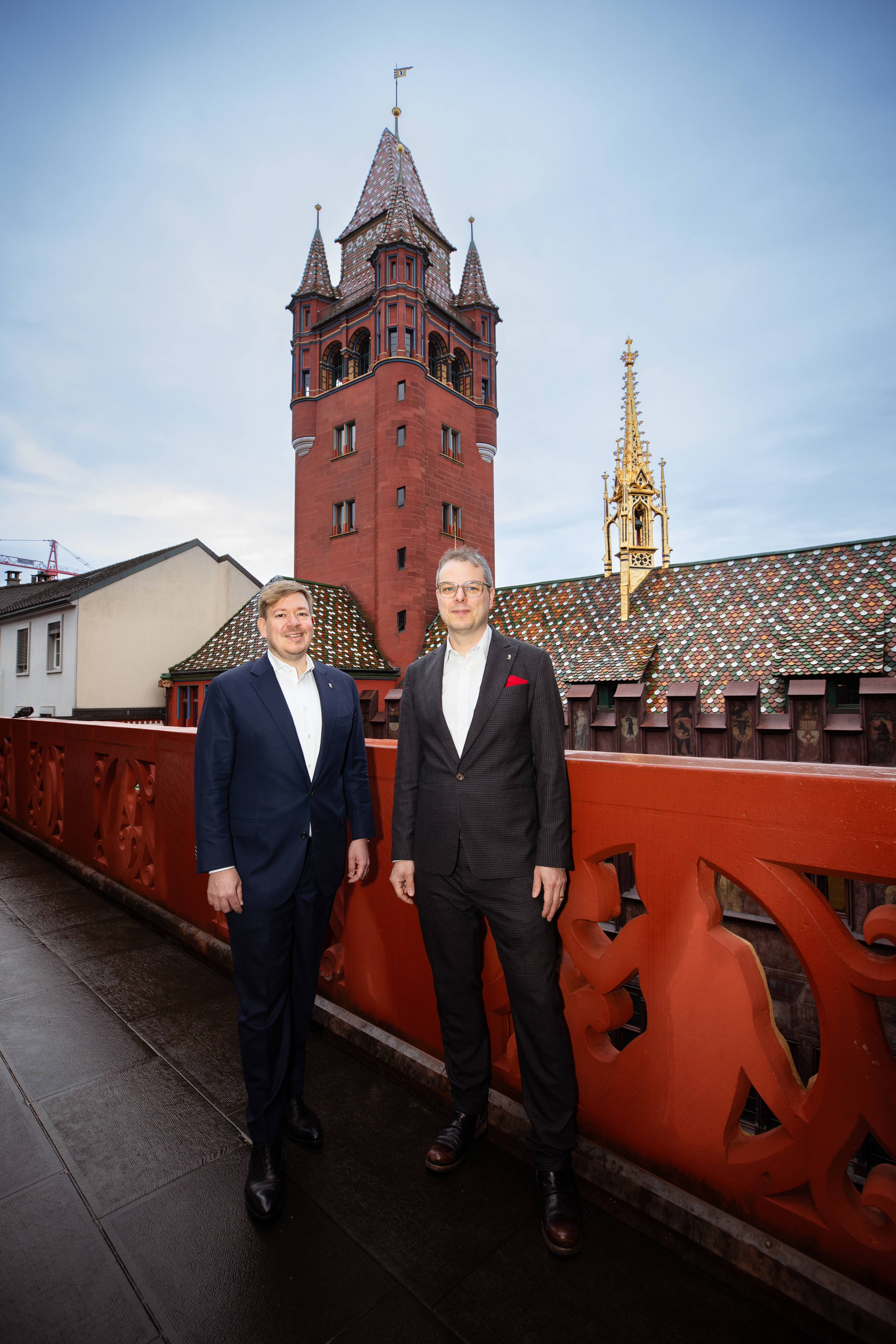 Claudio Miozzari und Bülent Pekerman im Rathausturm, vor einer Stadtkarte