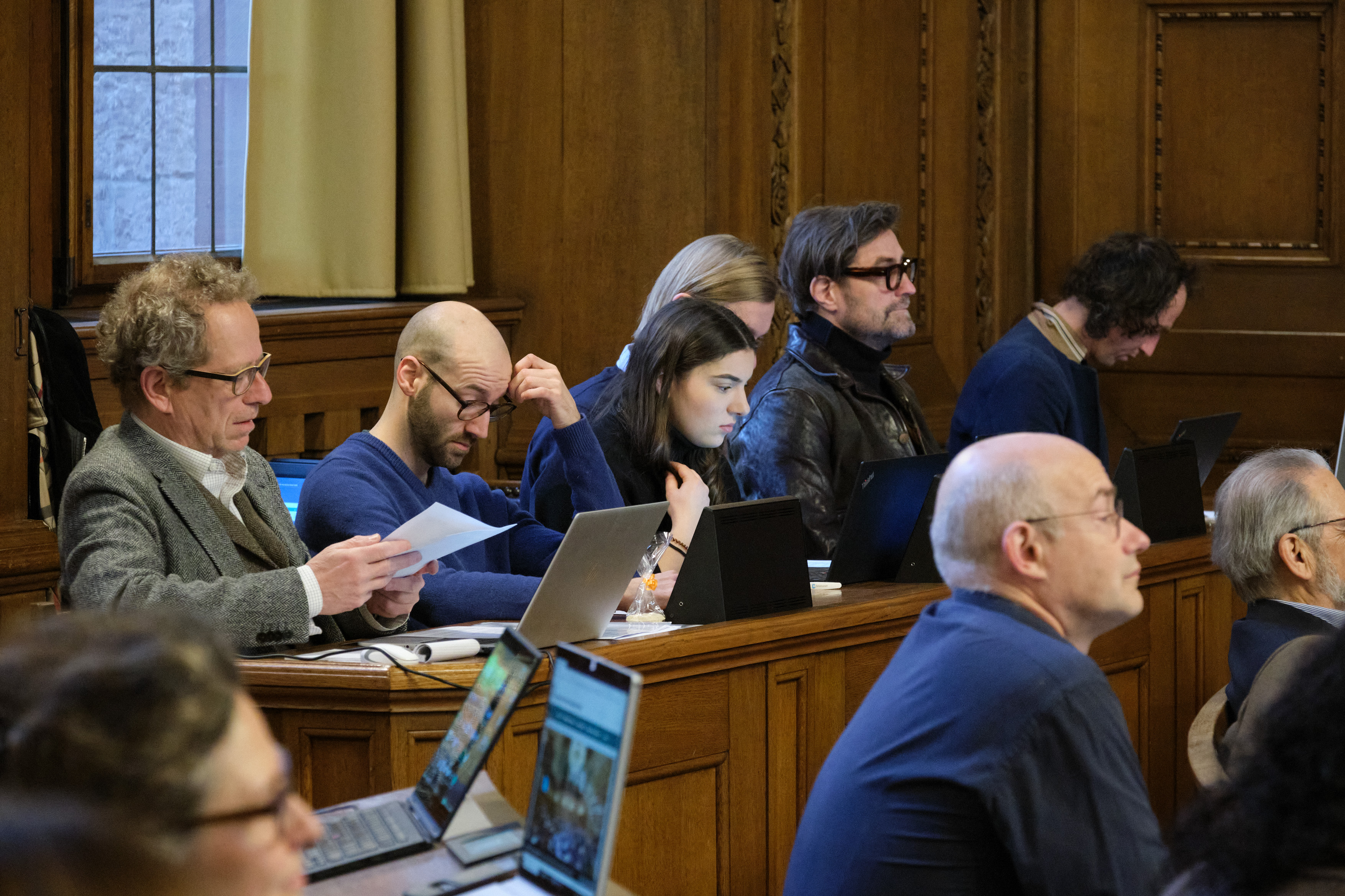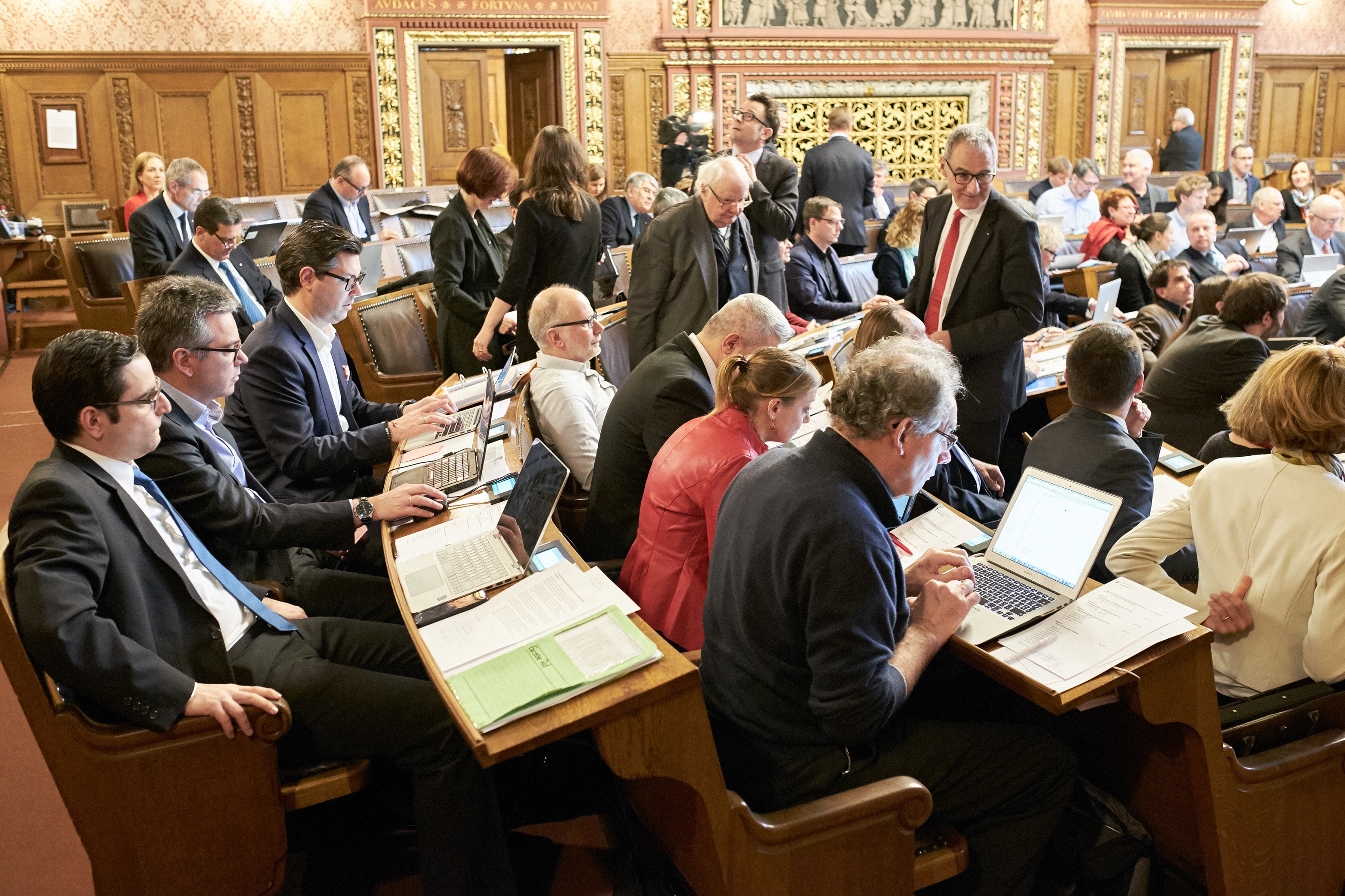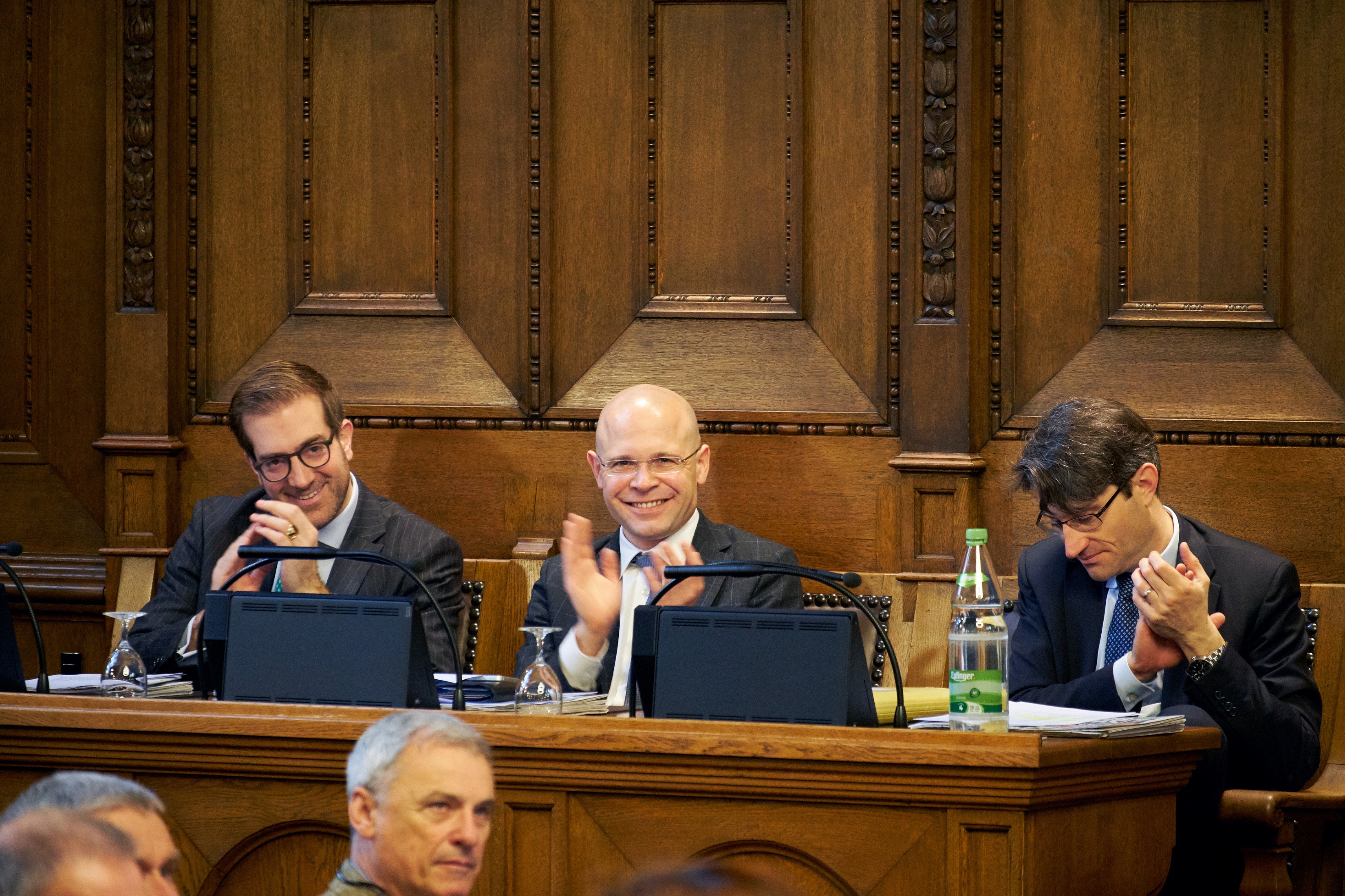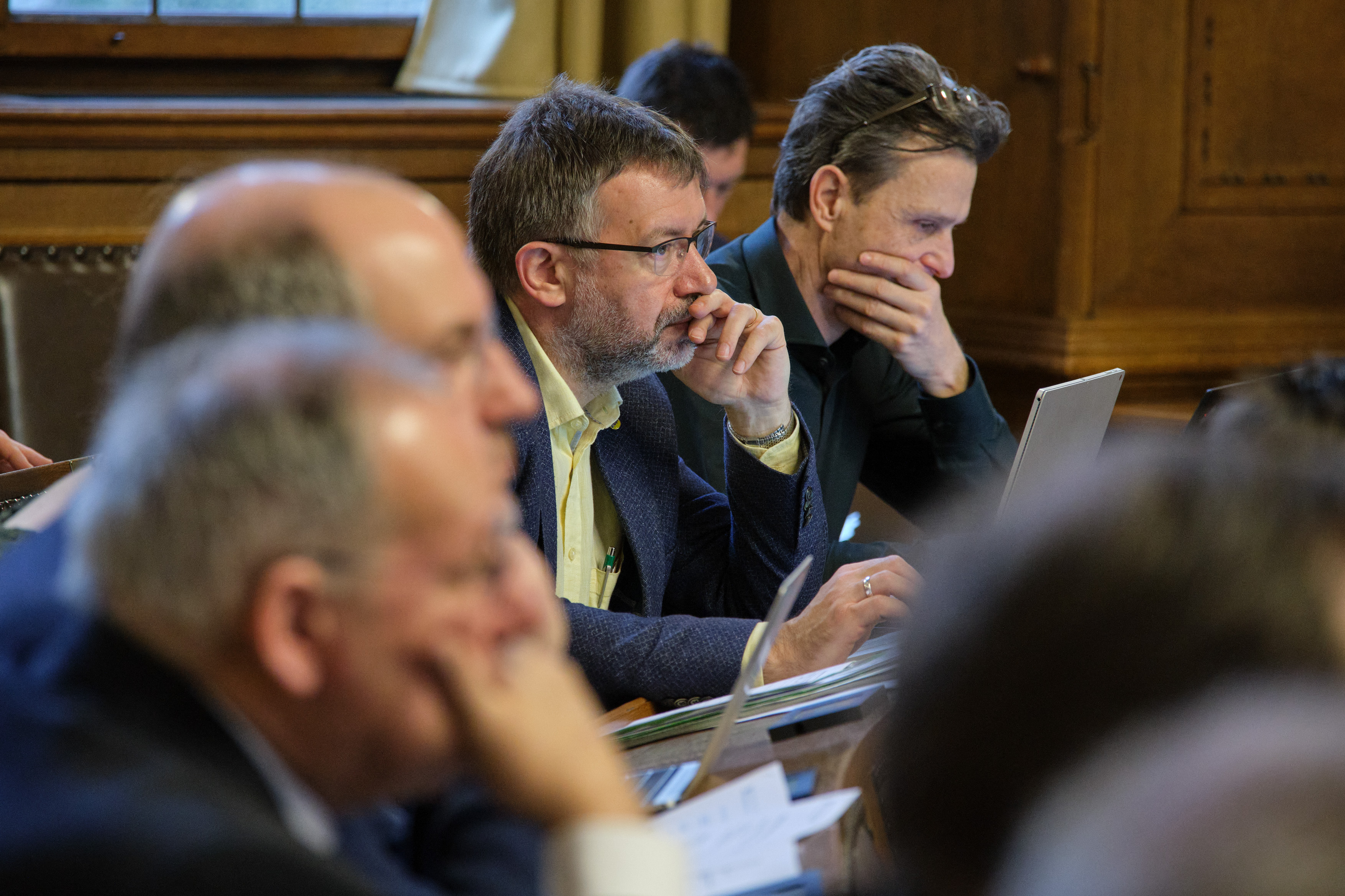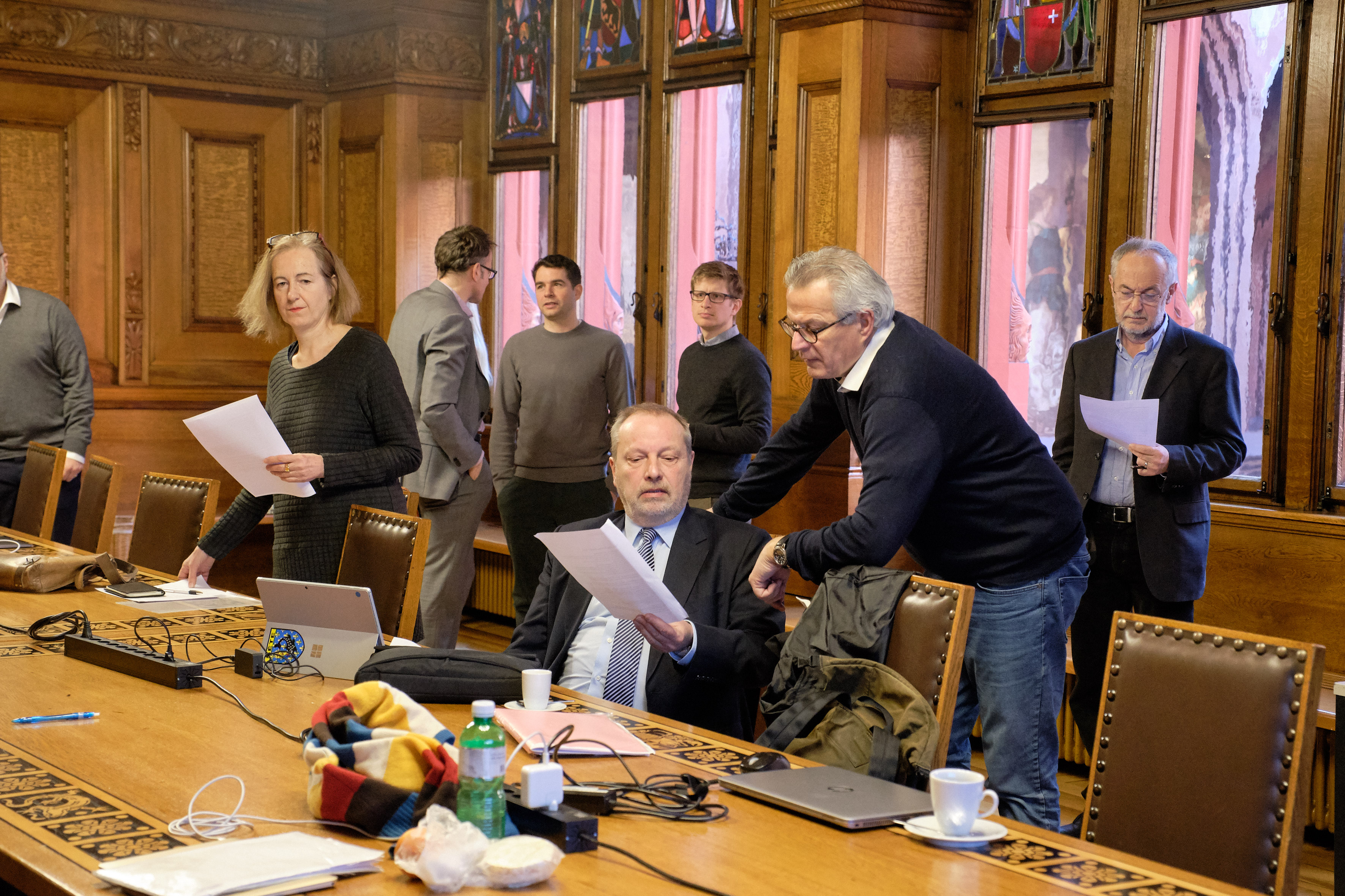 Stimmenzähler und Ratssekretariat um Thomas Dähler