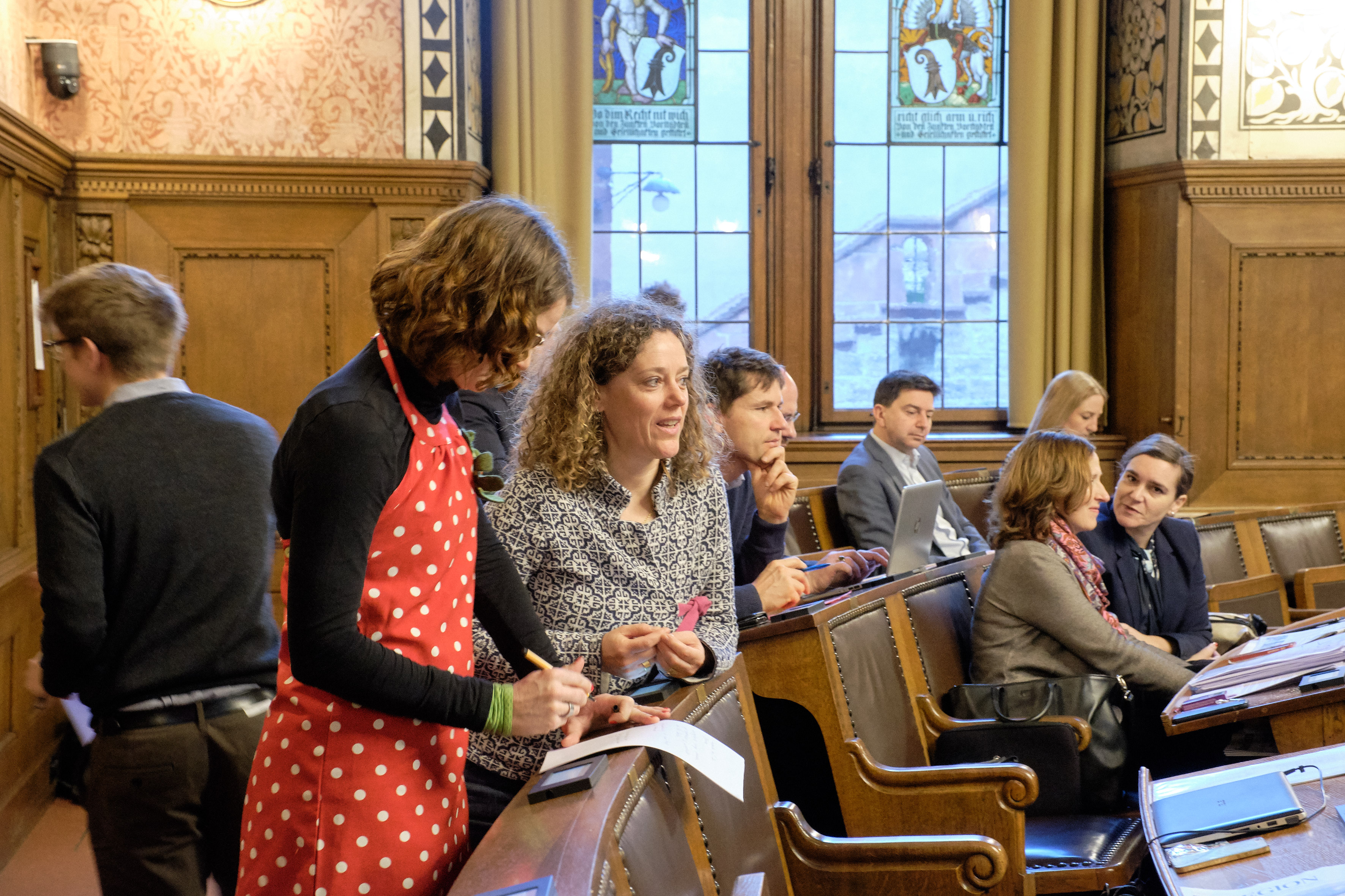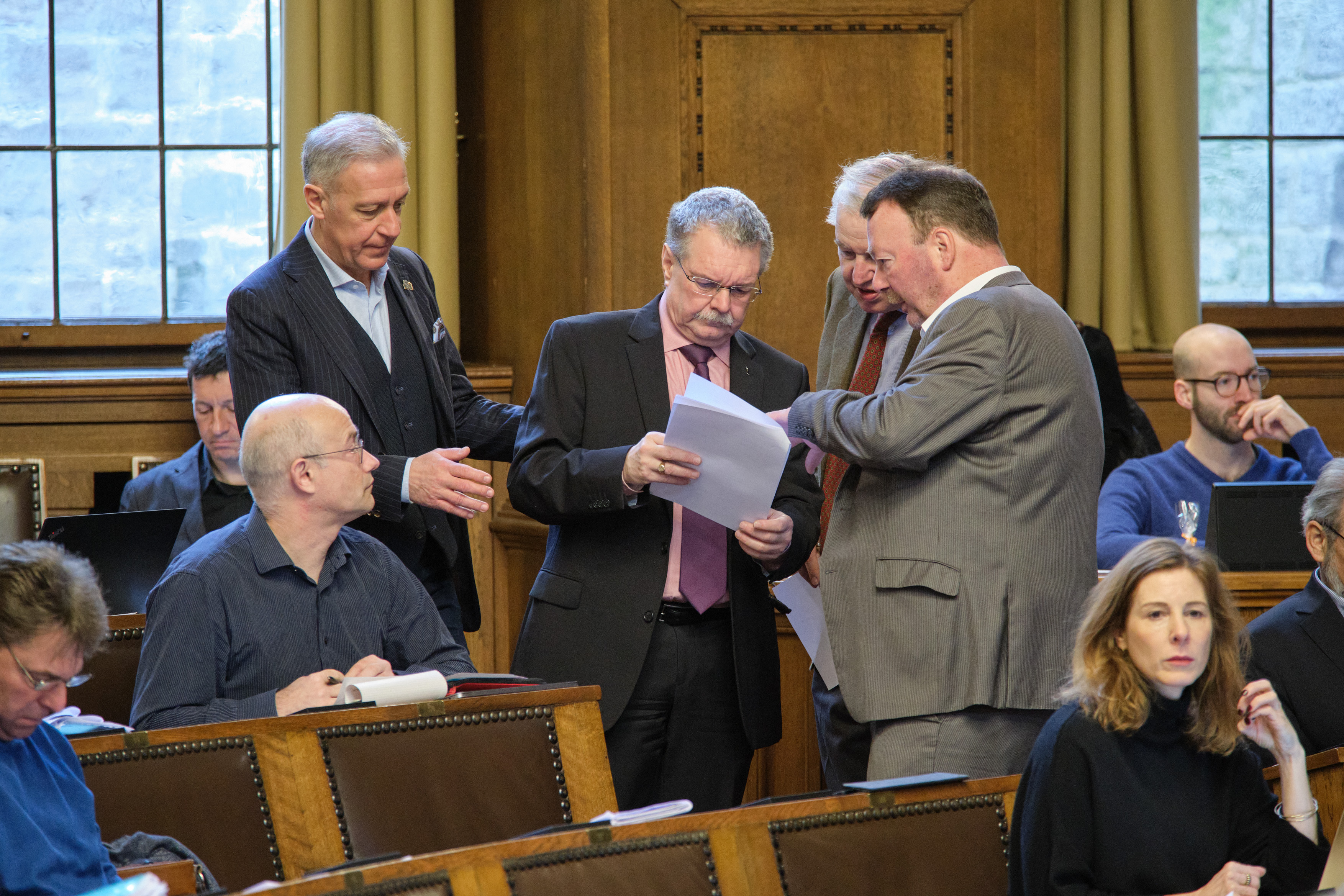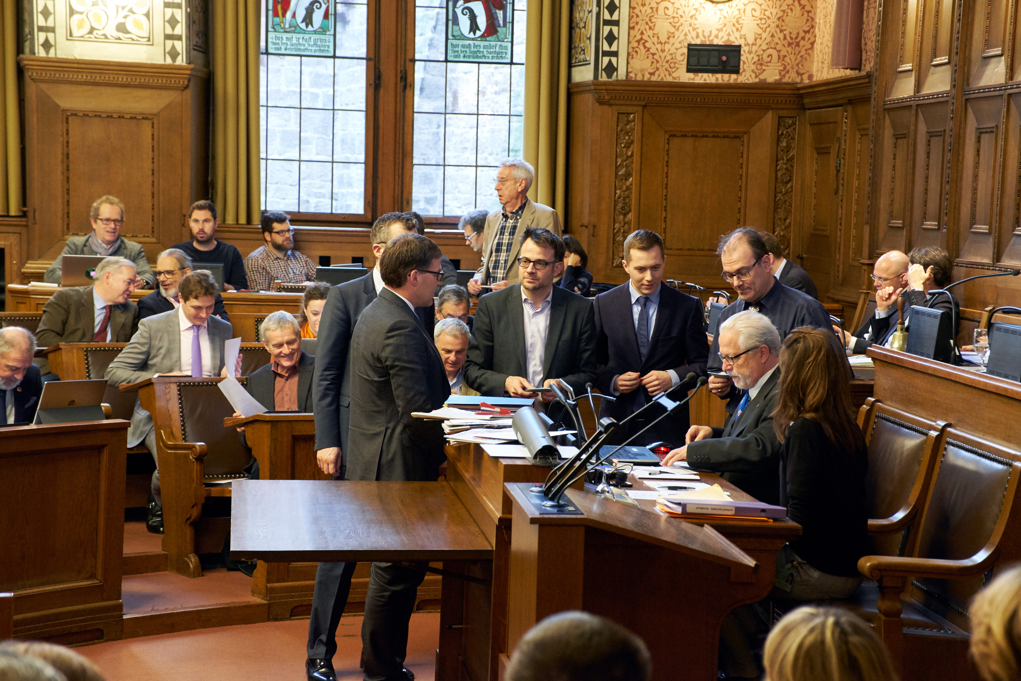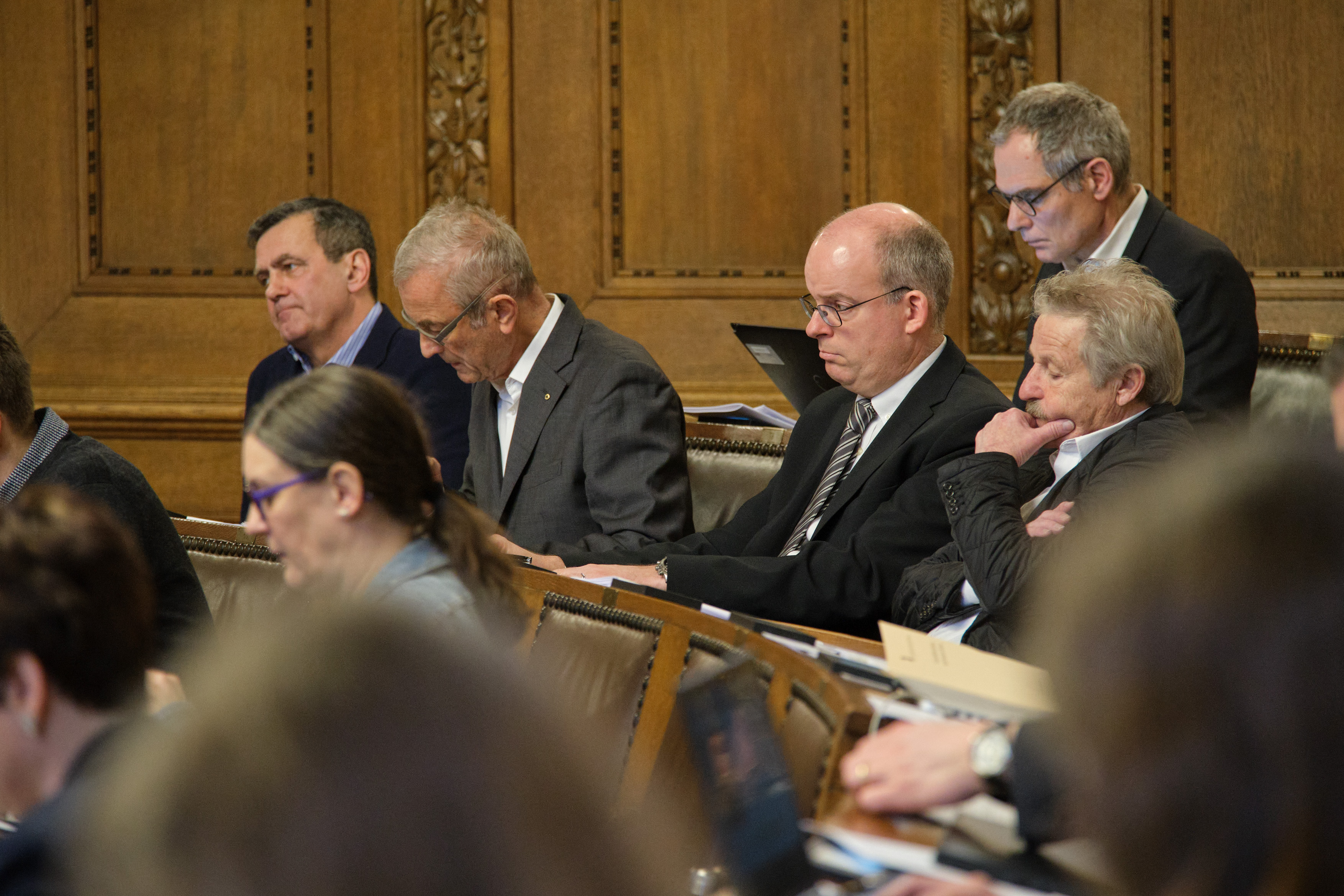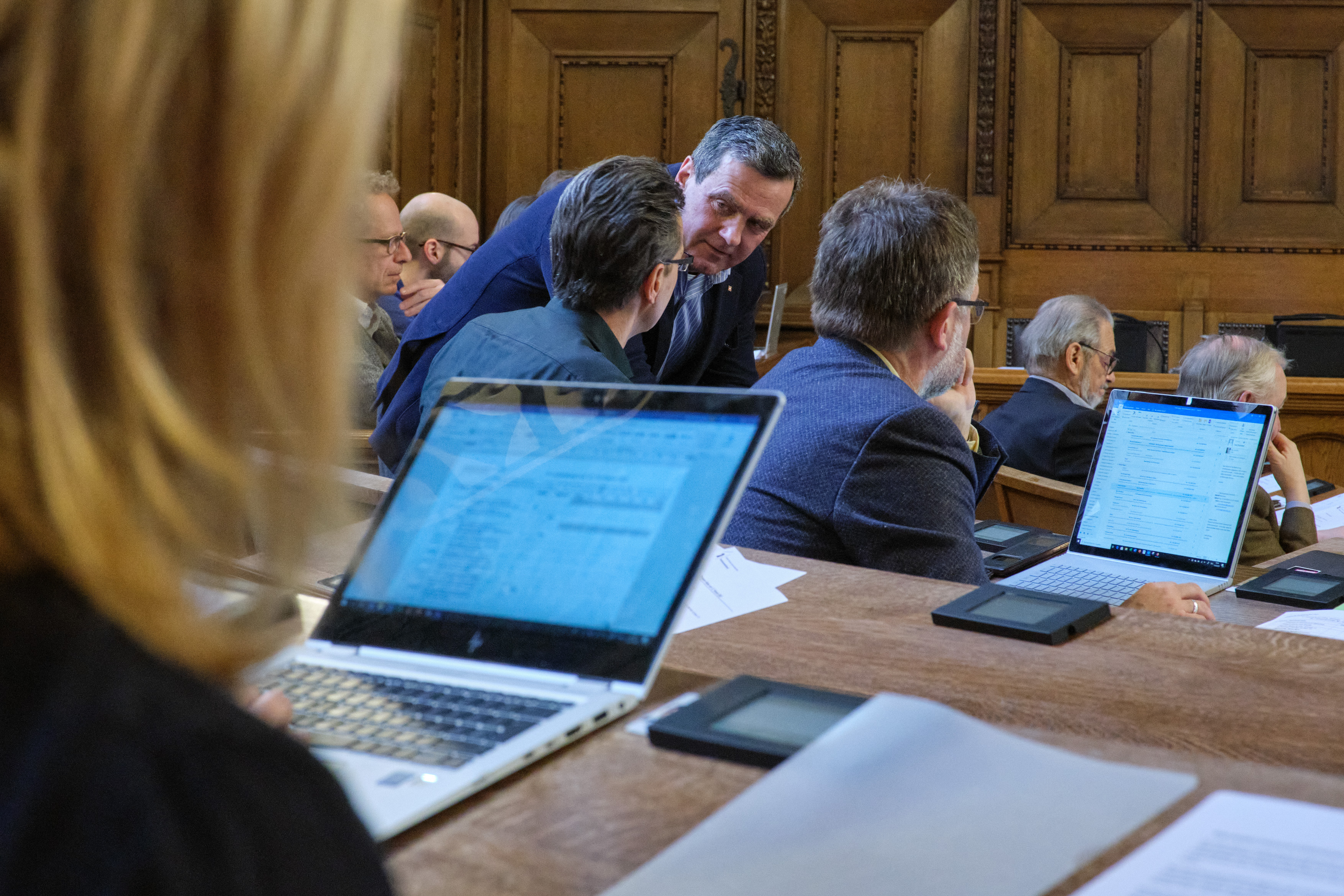Stimmenzähler und Ratssekretariat um Thomas Dähler