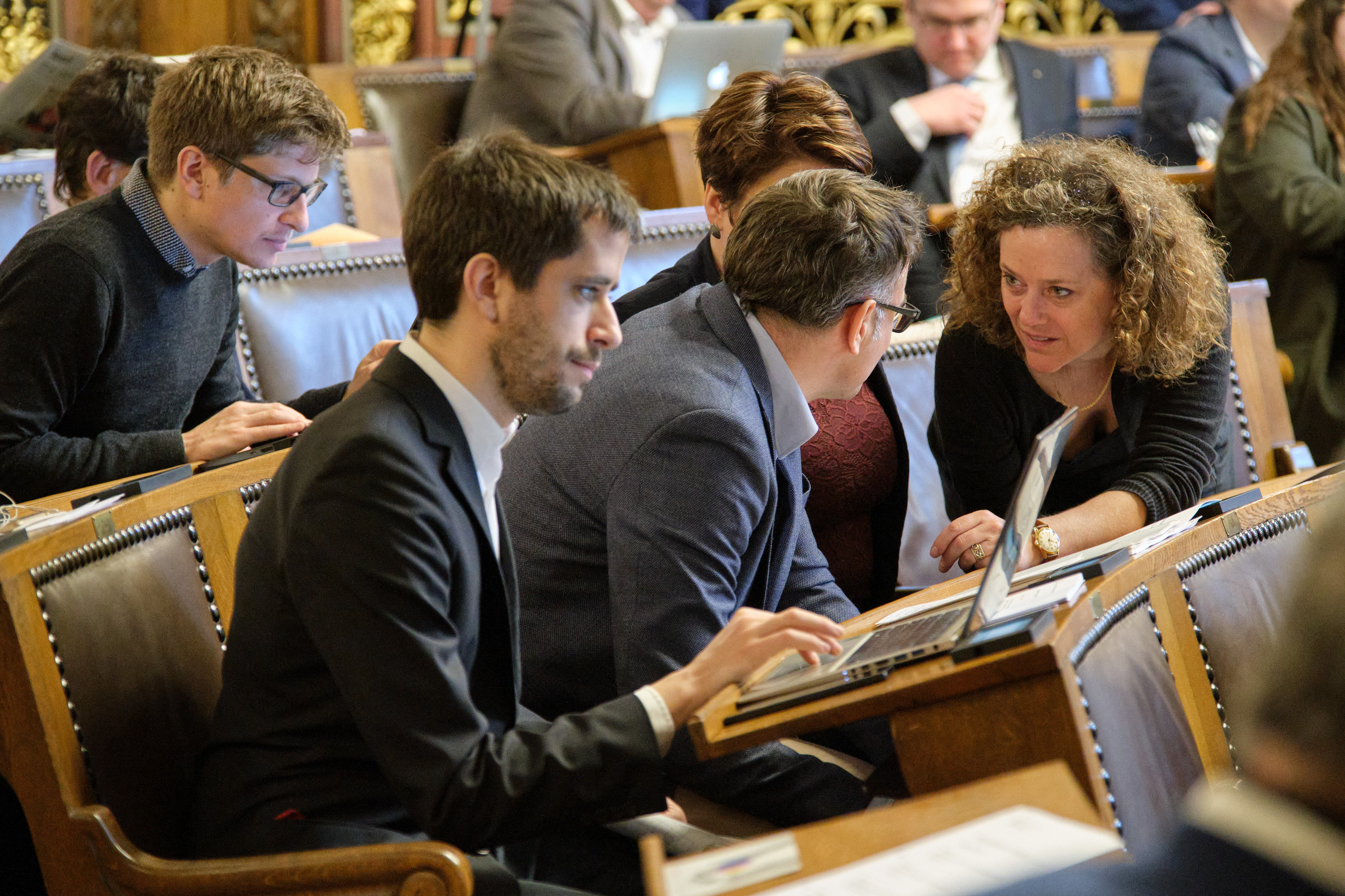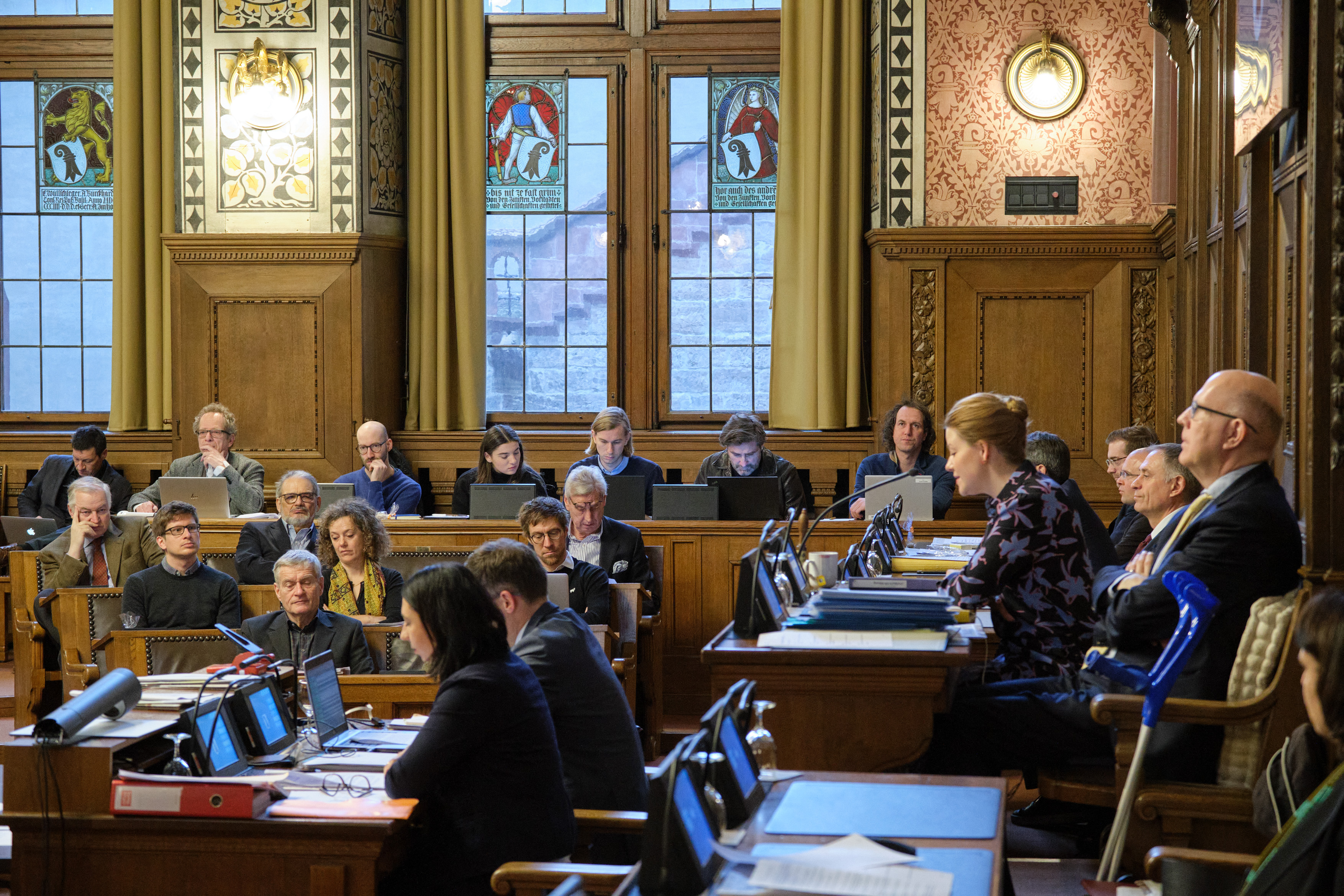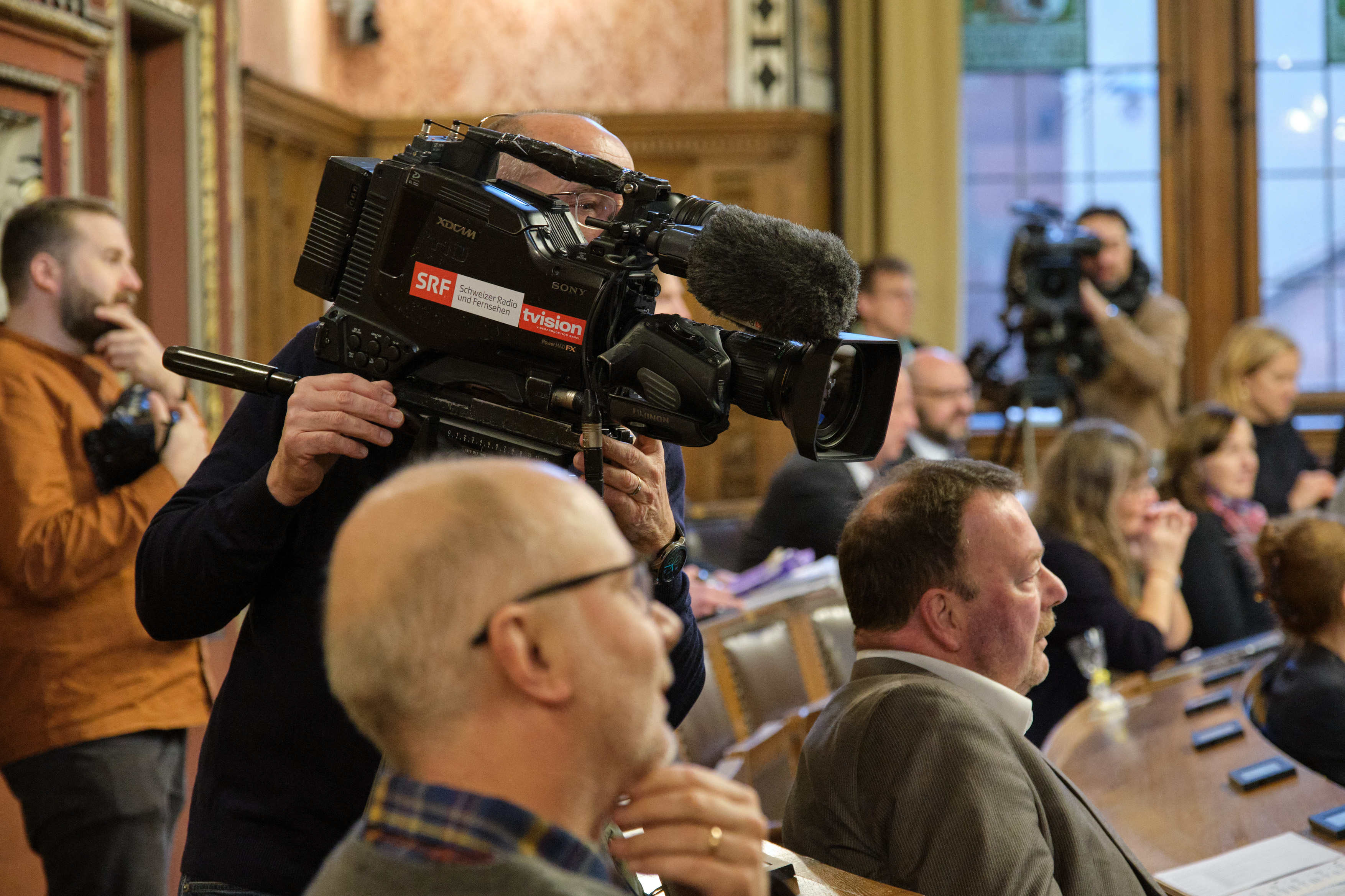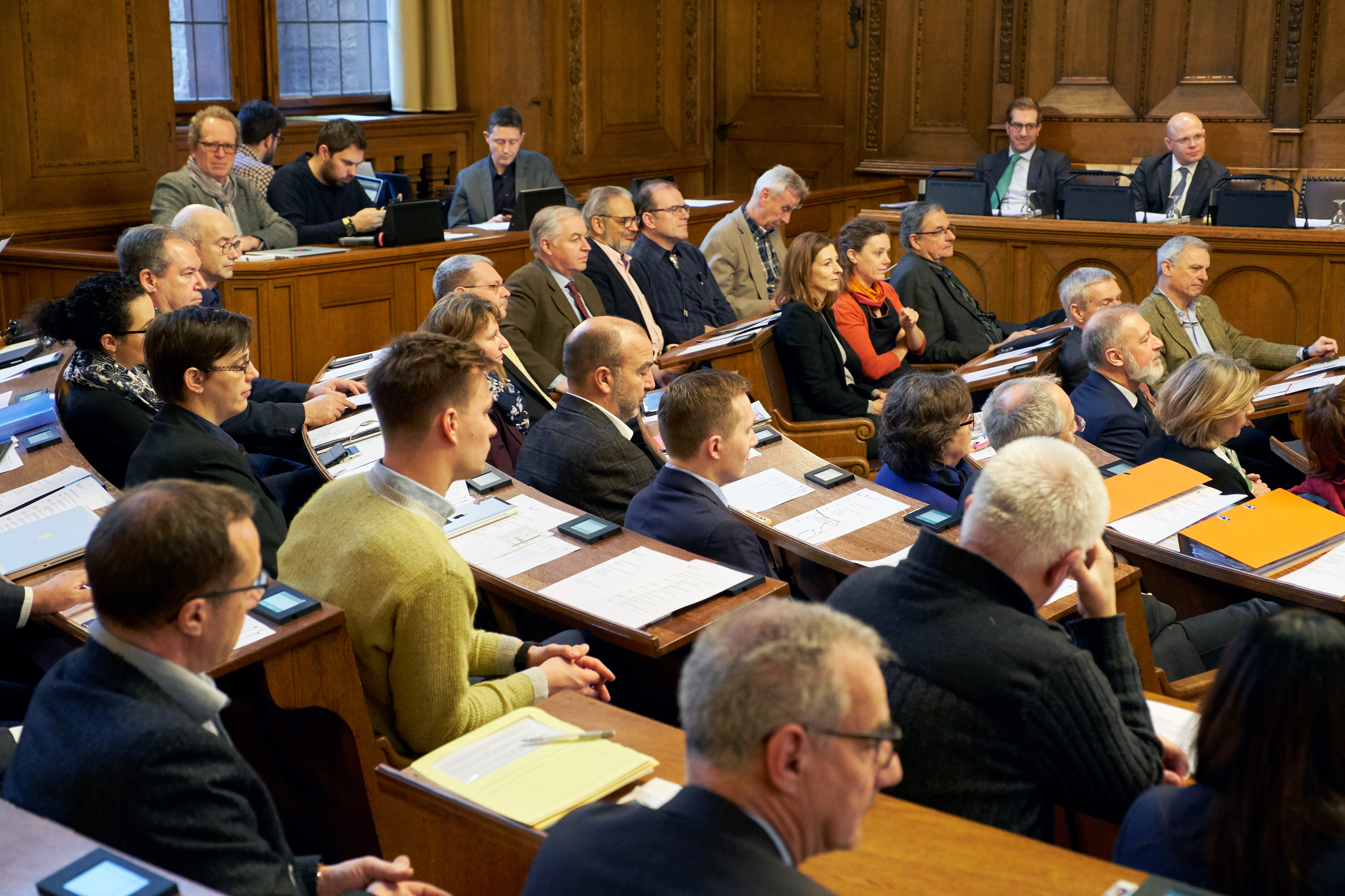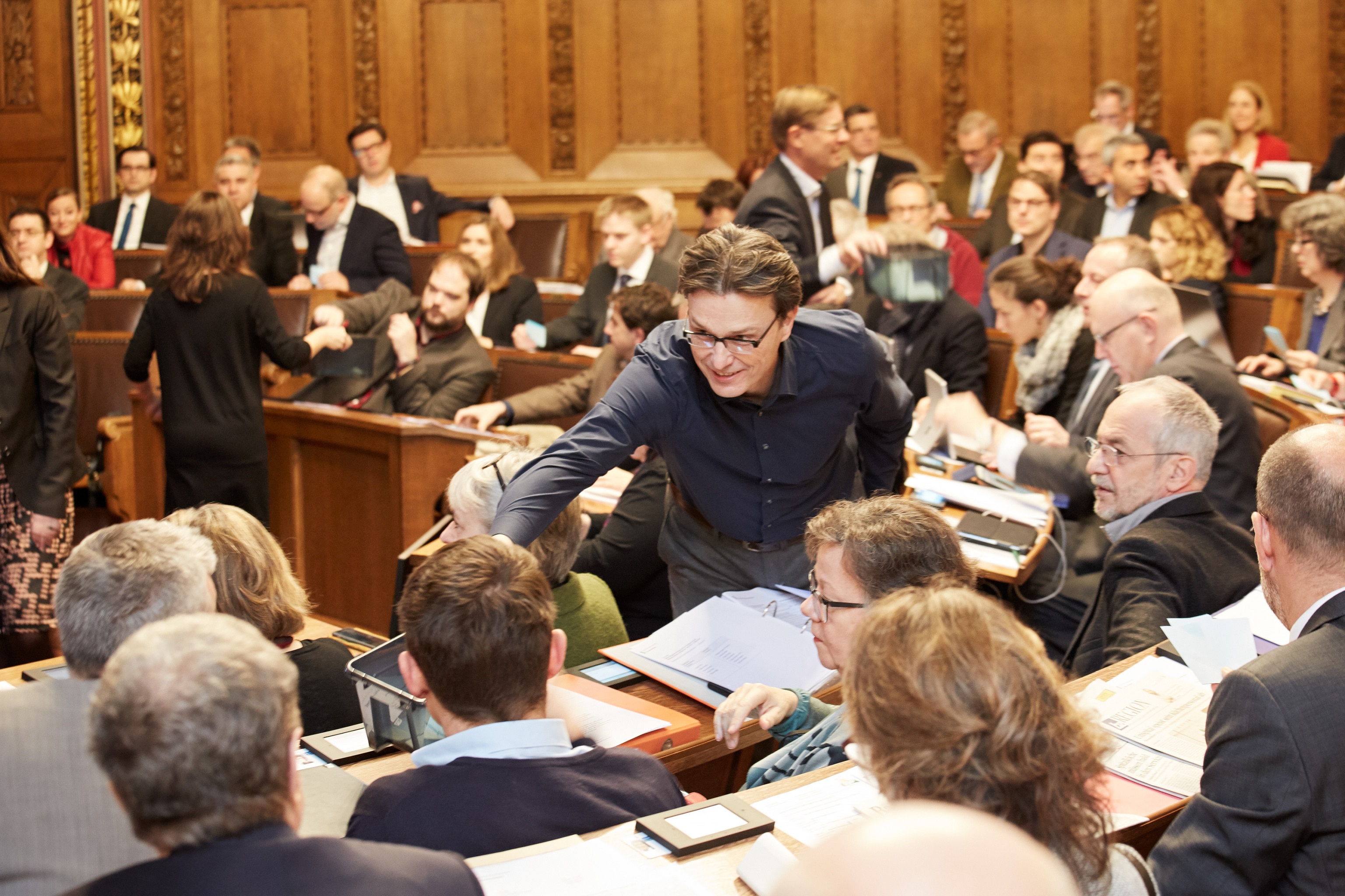Stimmenzähler und Ratssekretariat um Thomas Dähler
