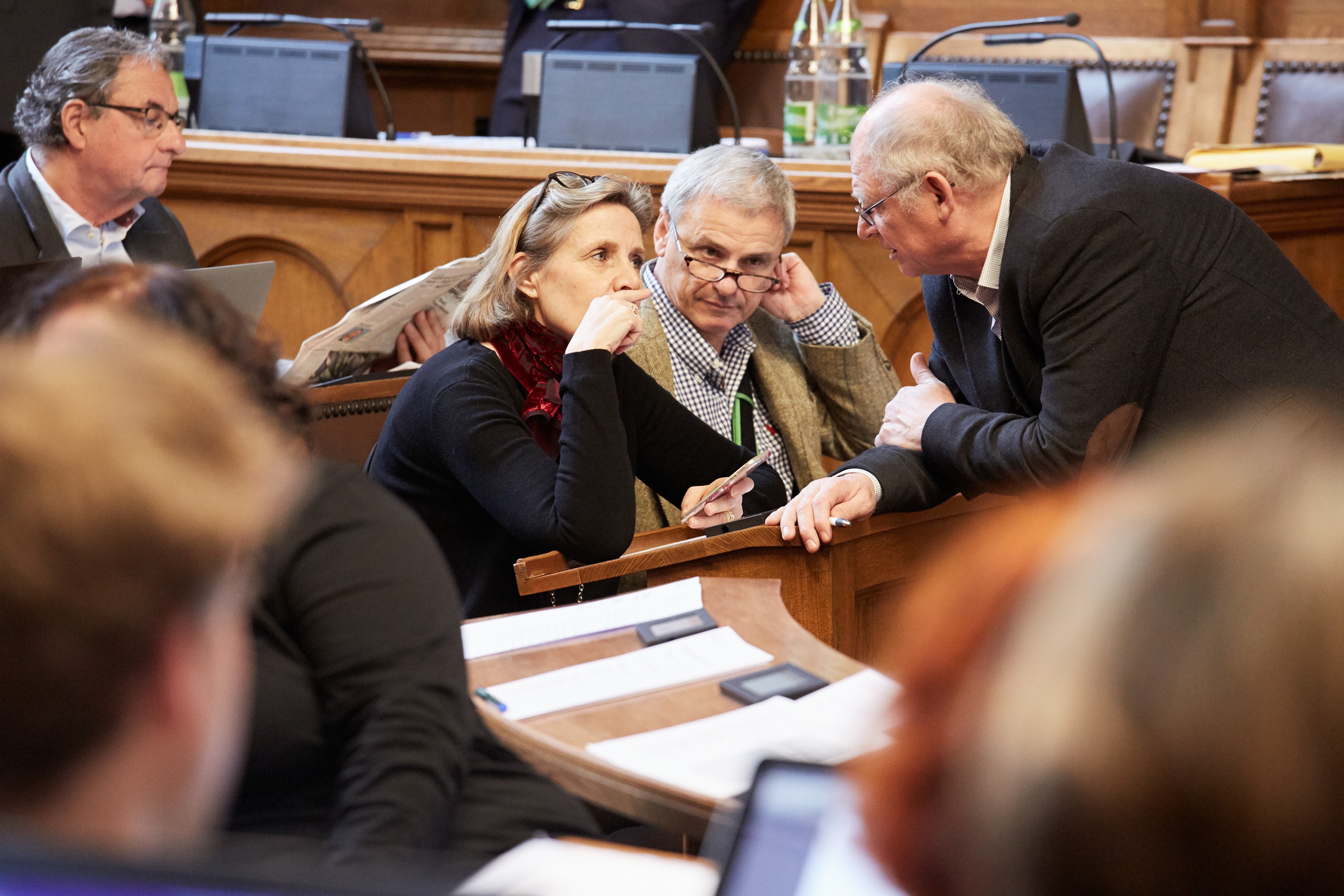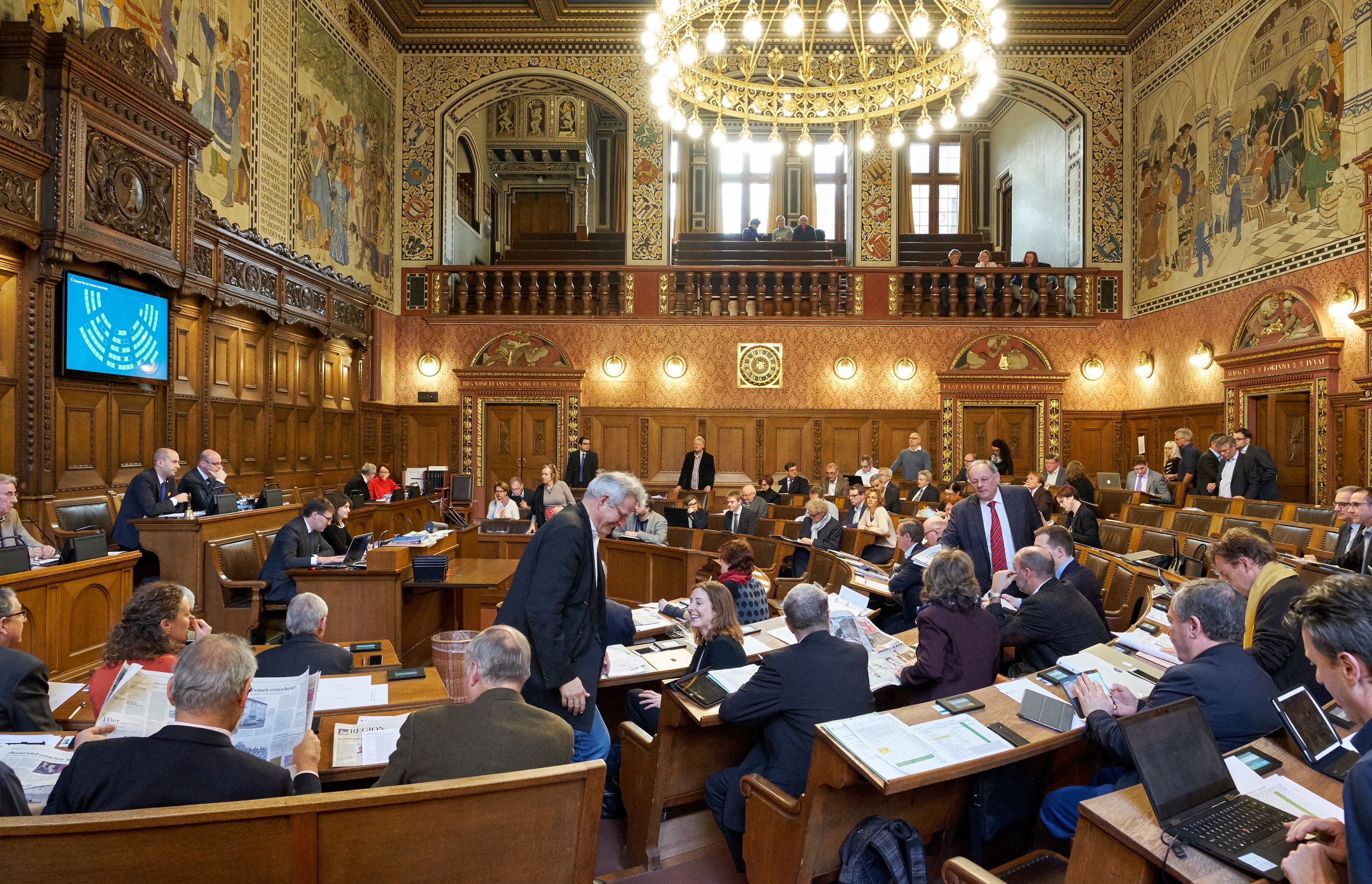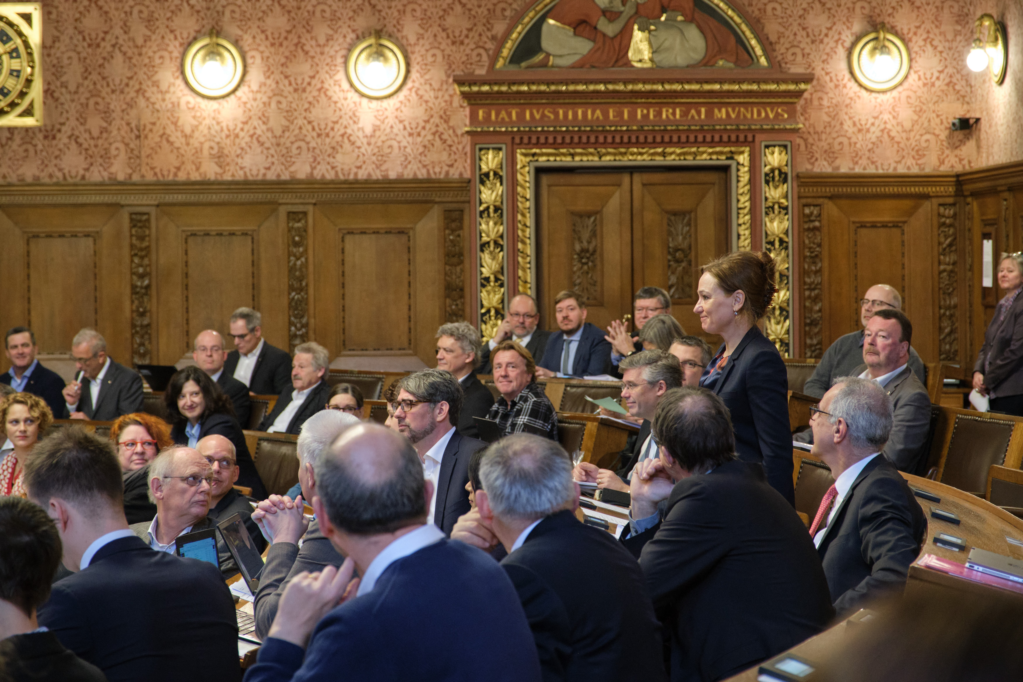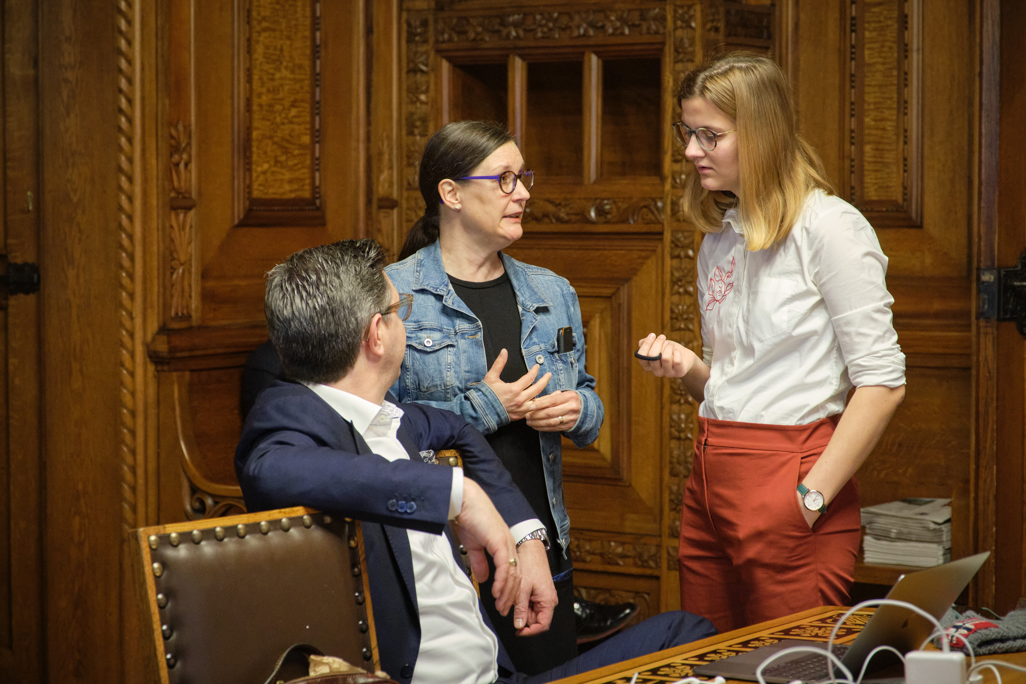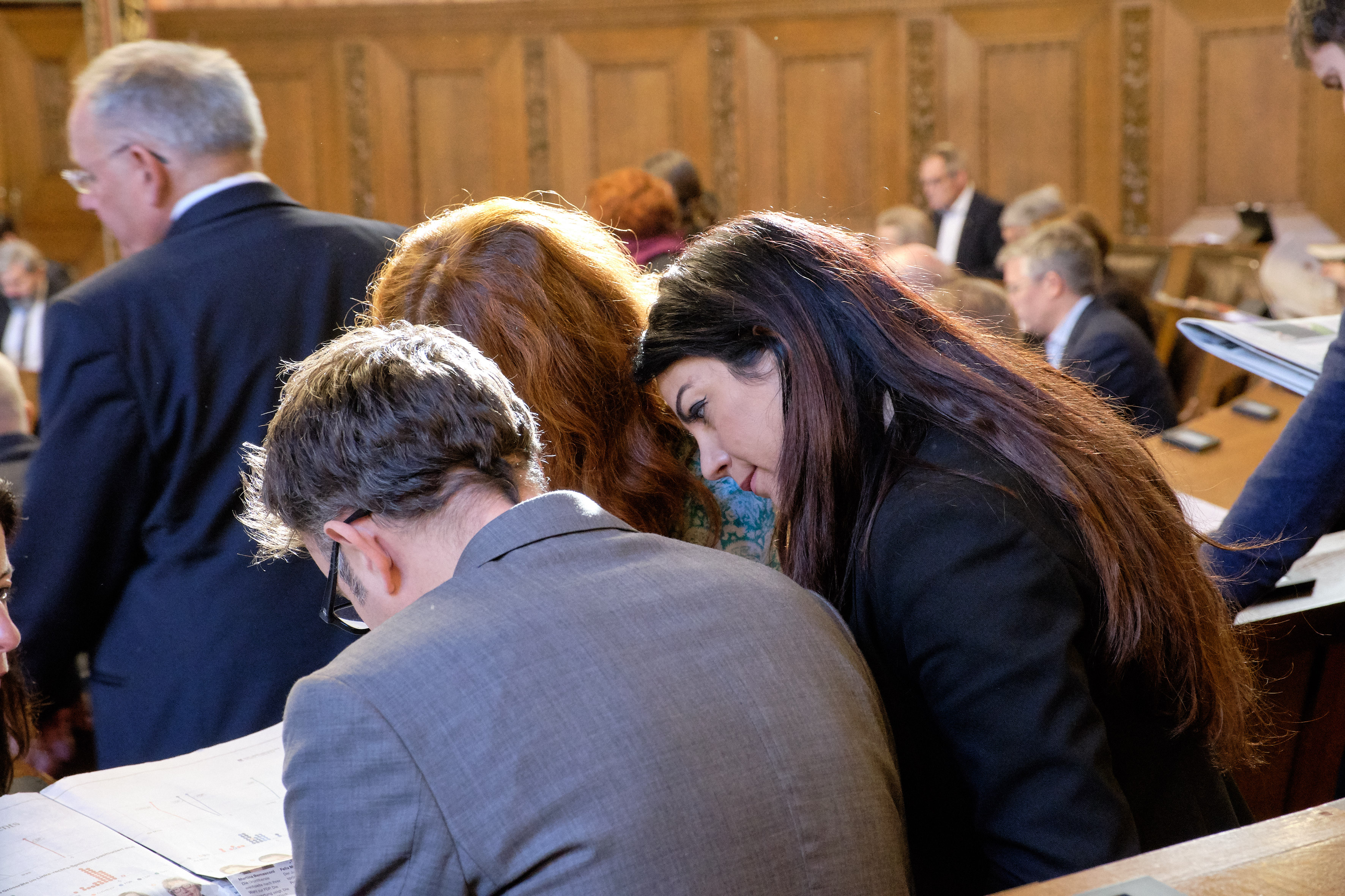 Stimmenzähler und Ratssekretariat um Thomas Dähler