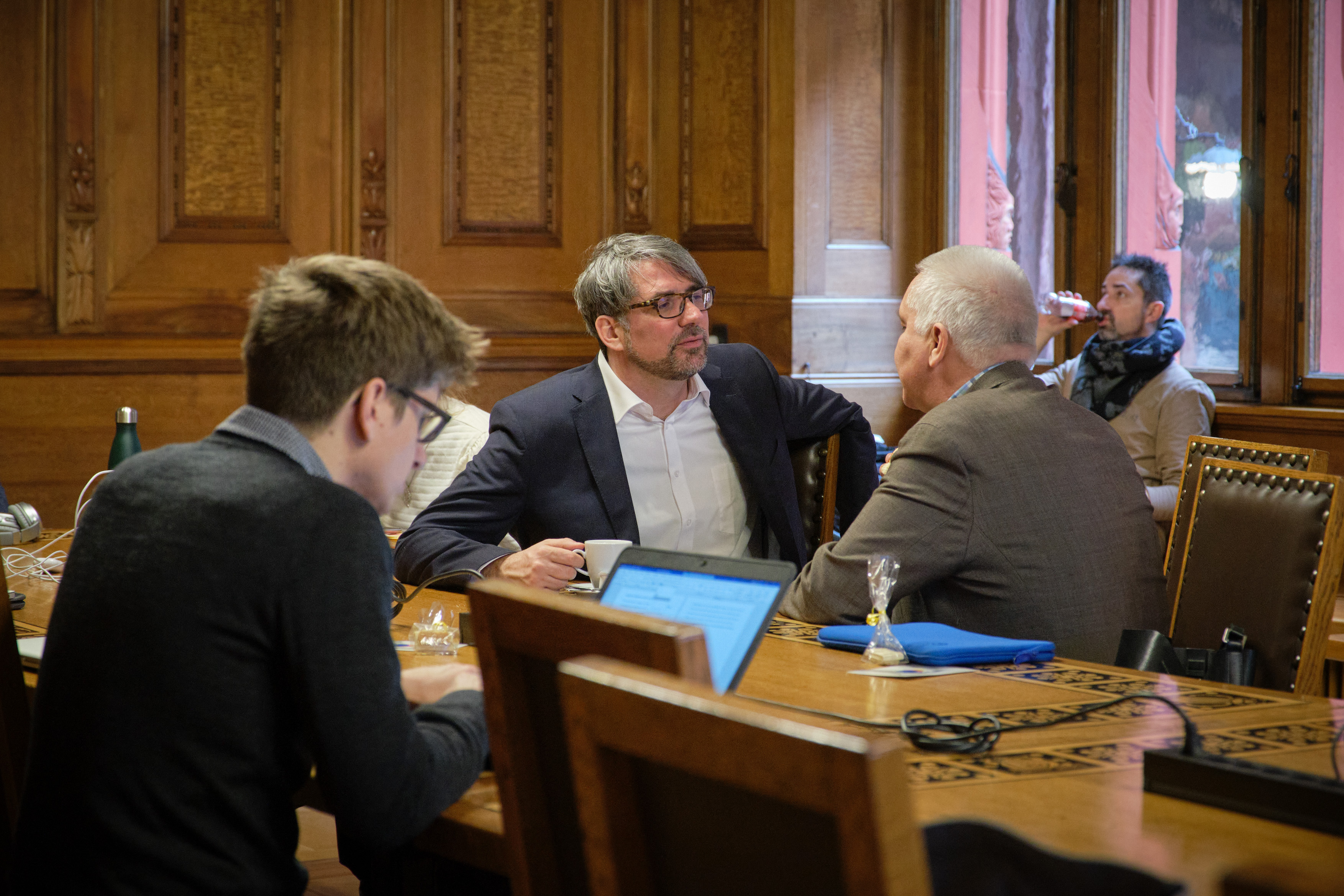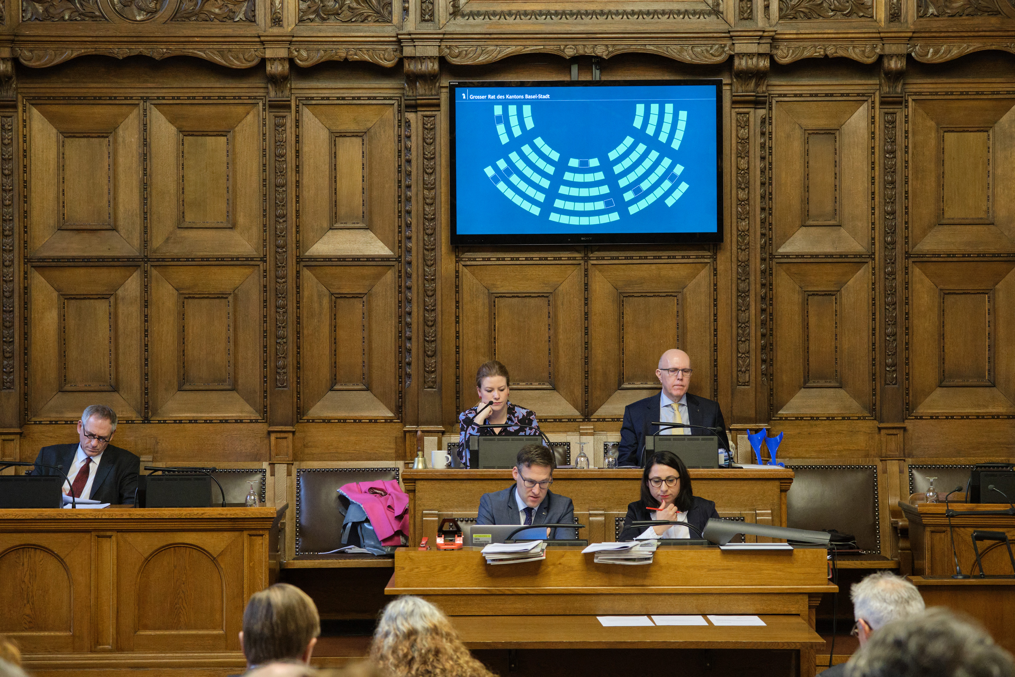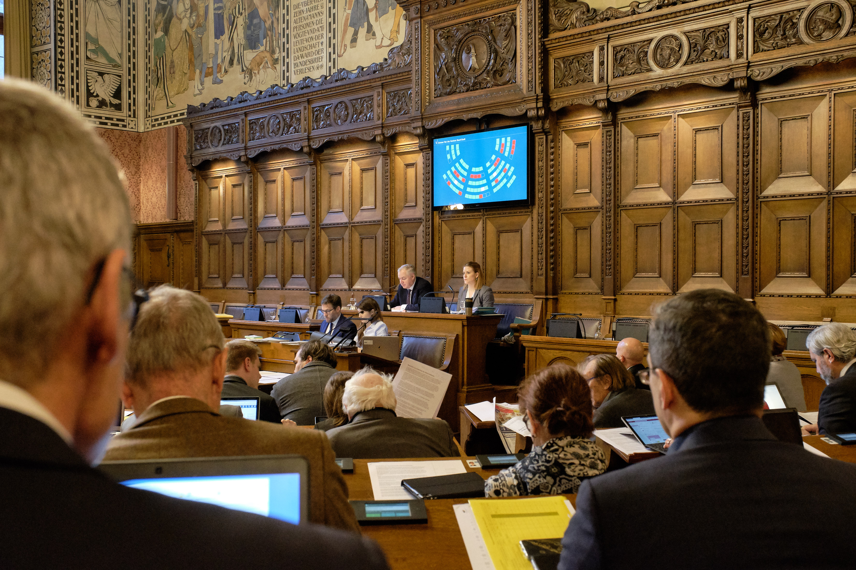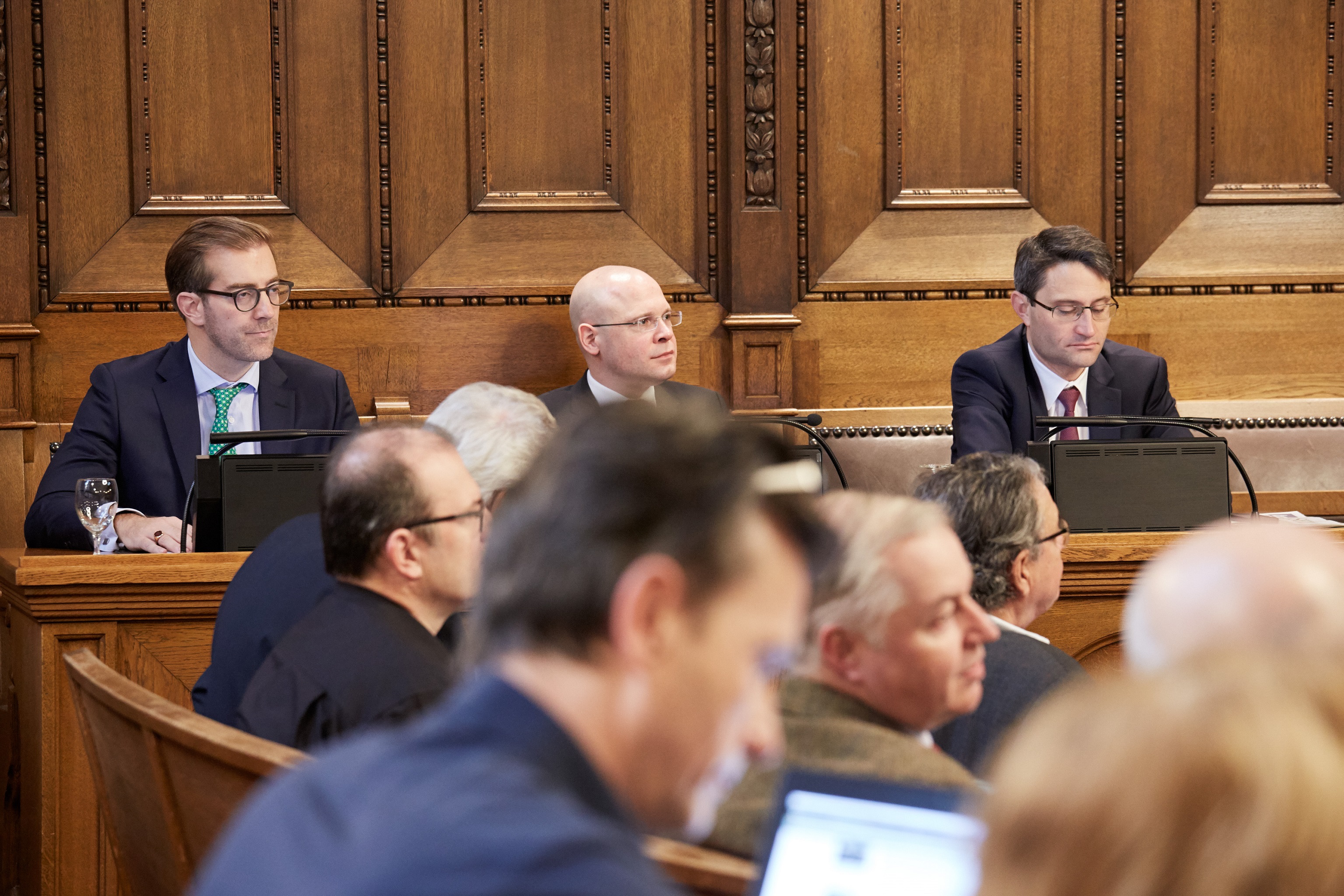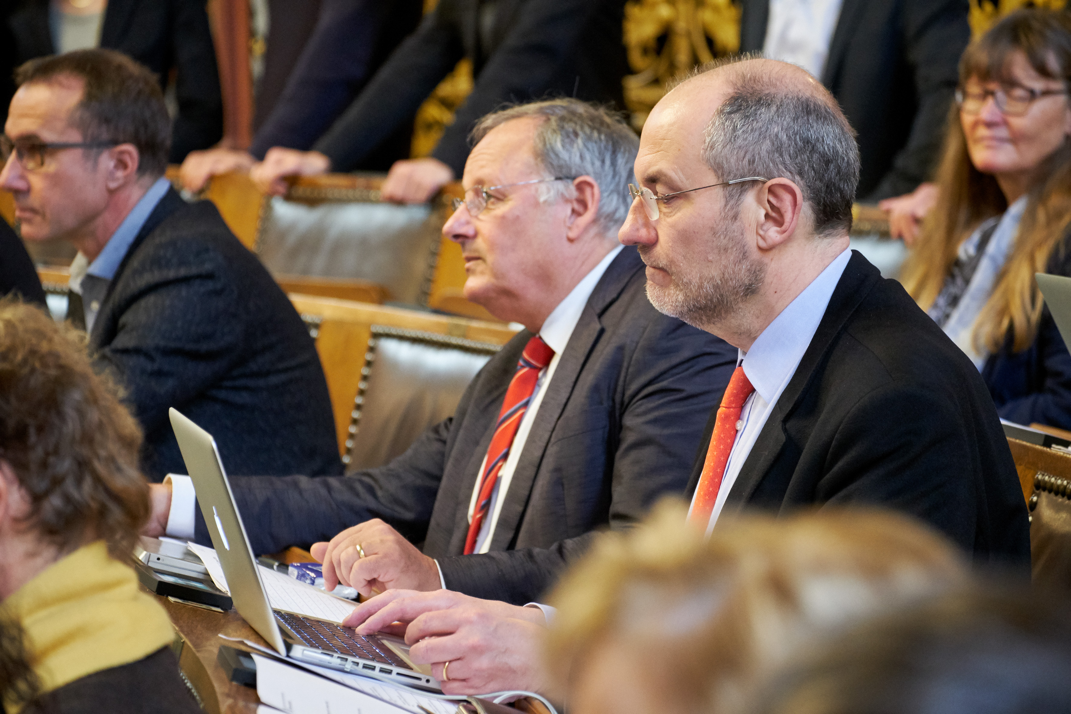 Stimmenzähler und Ratssekretariat um Thomas Dähler
