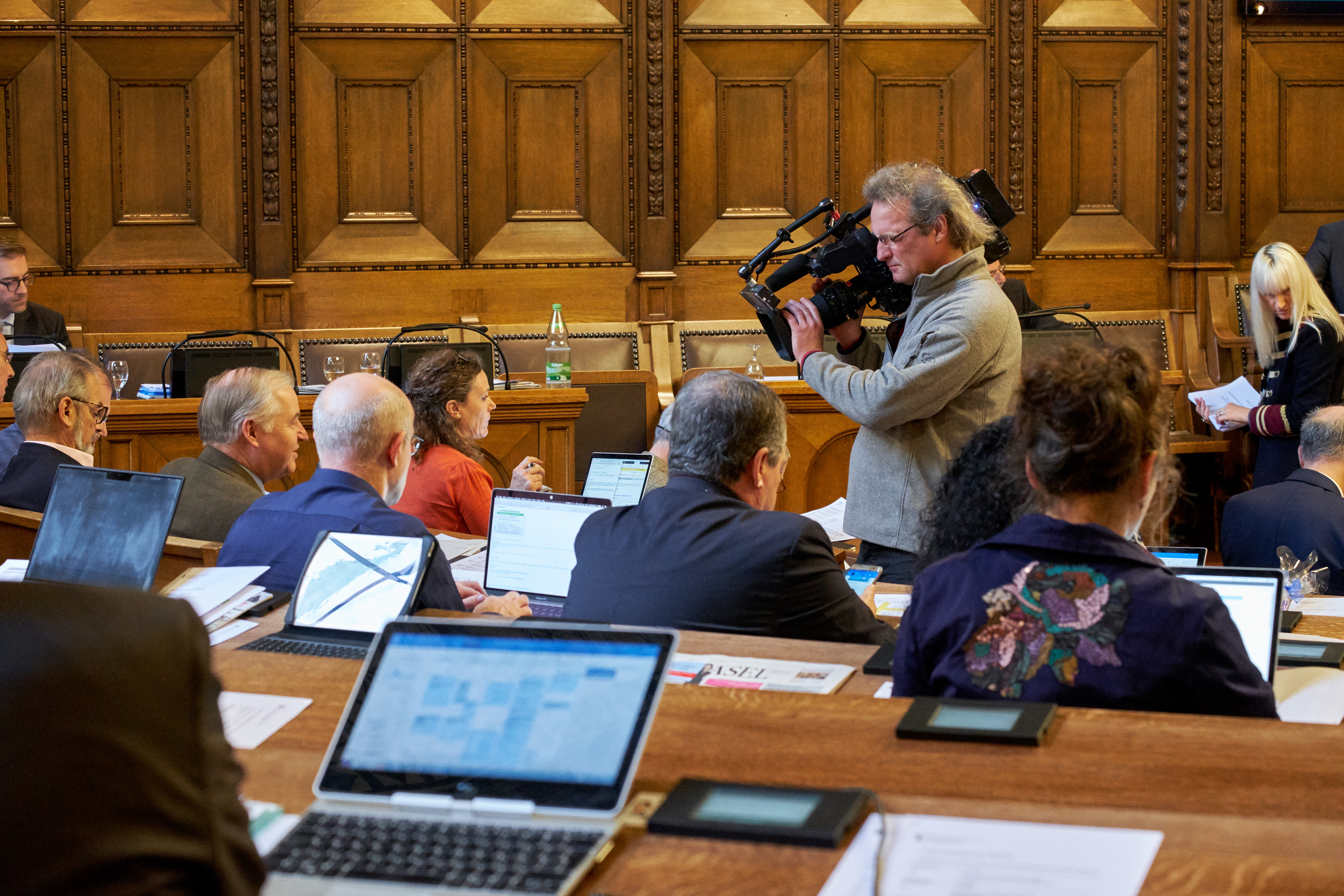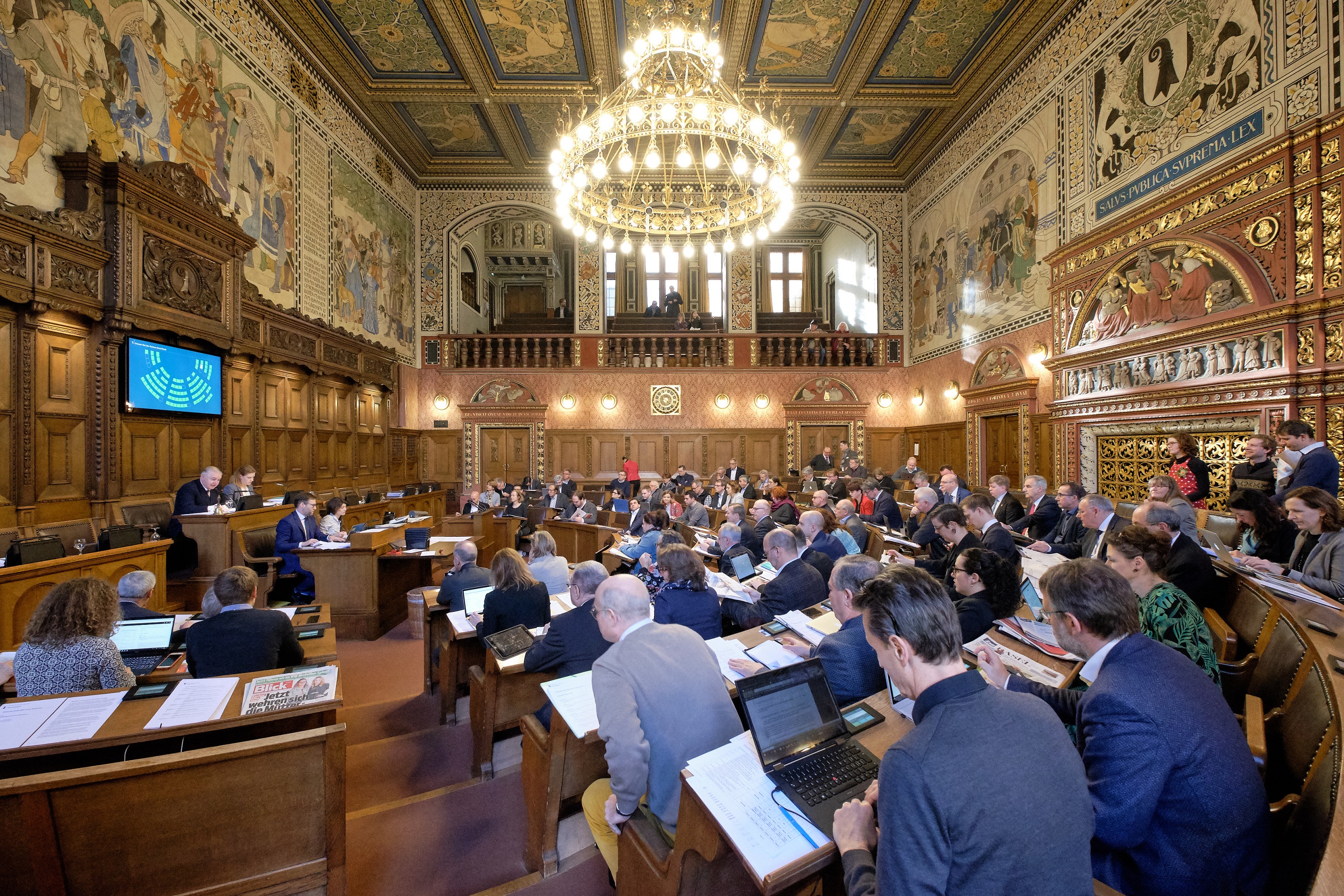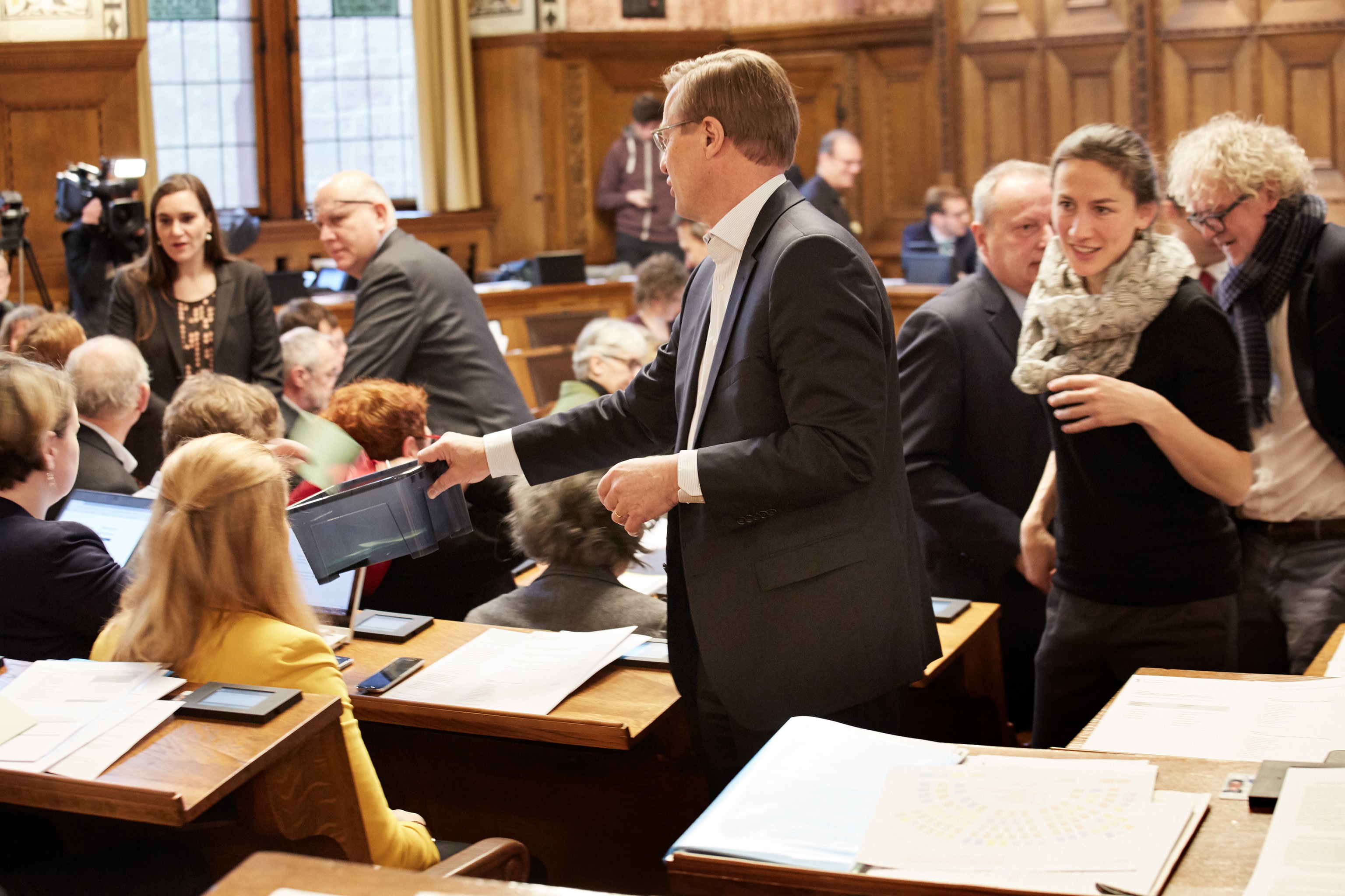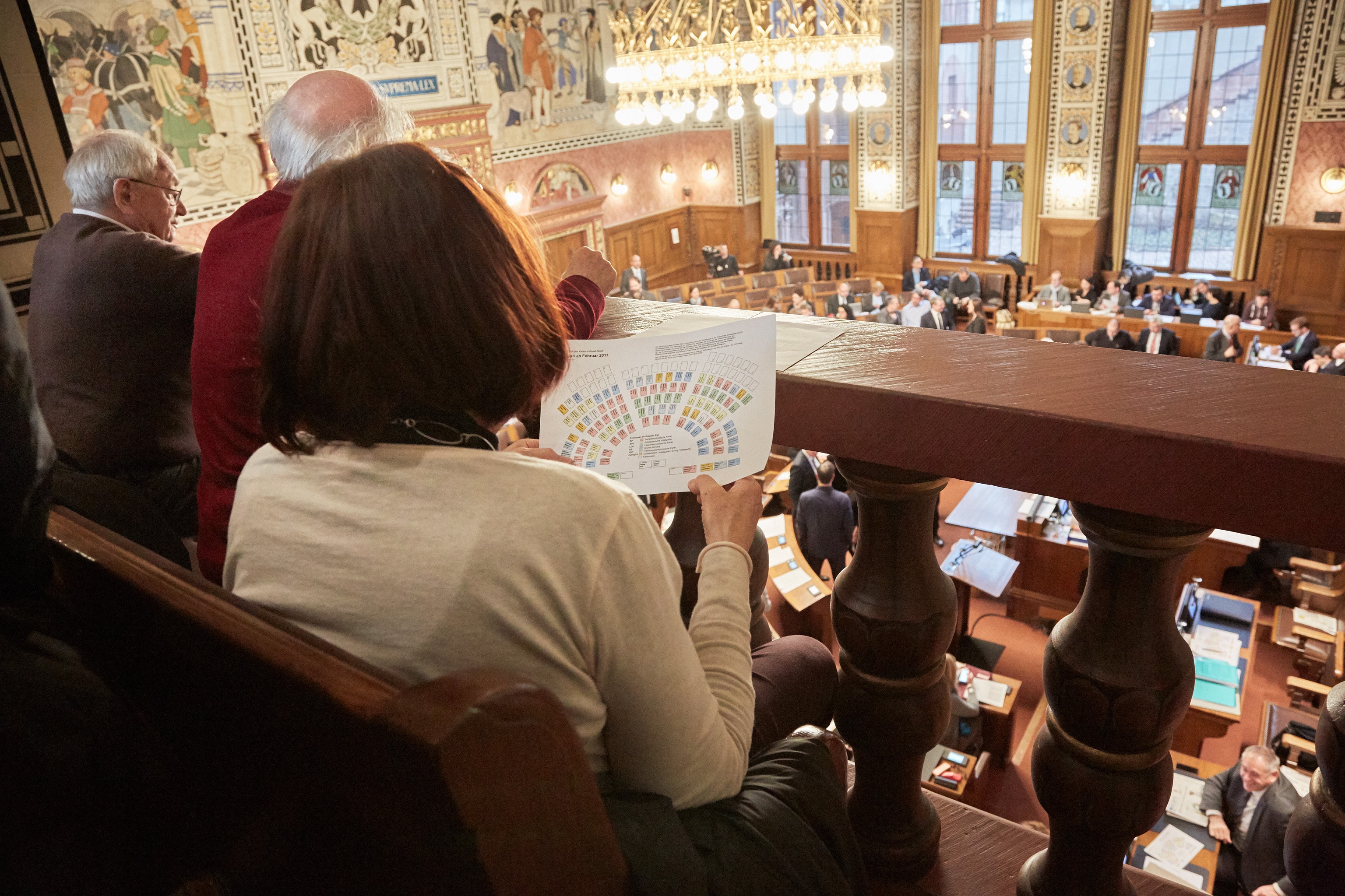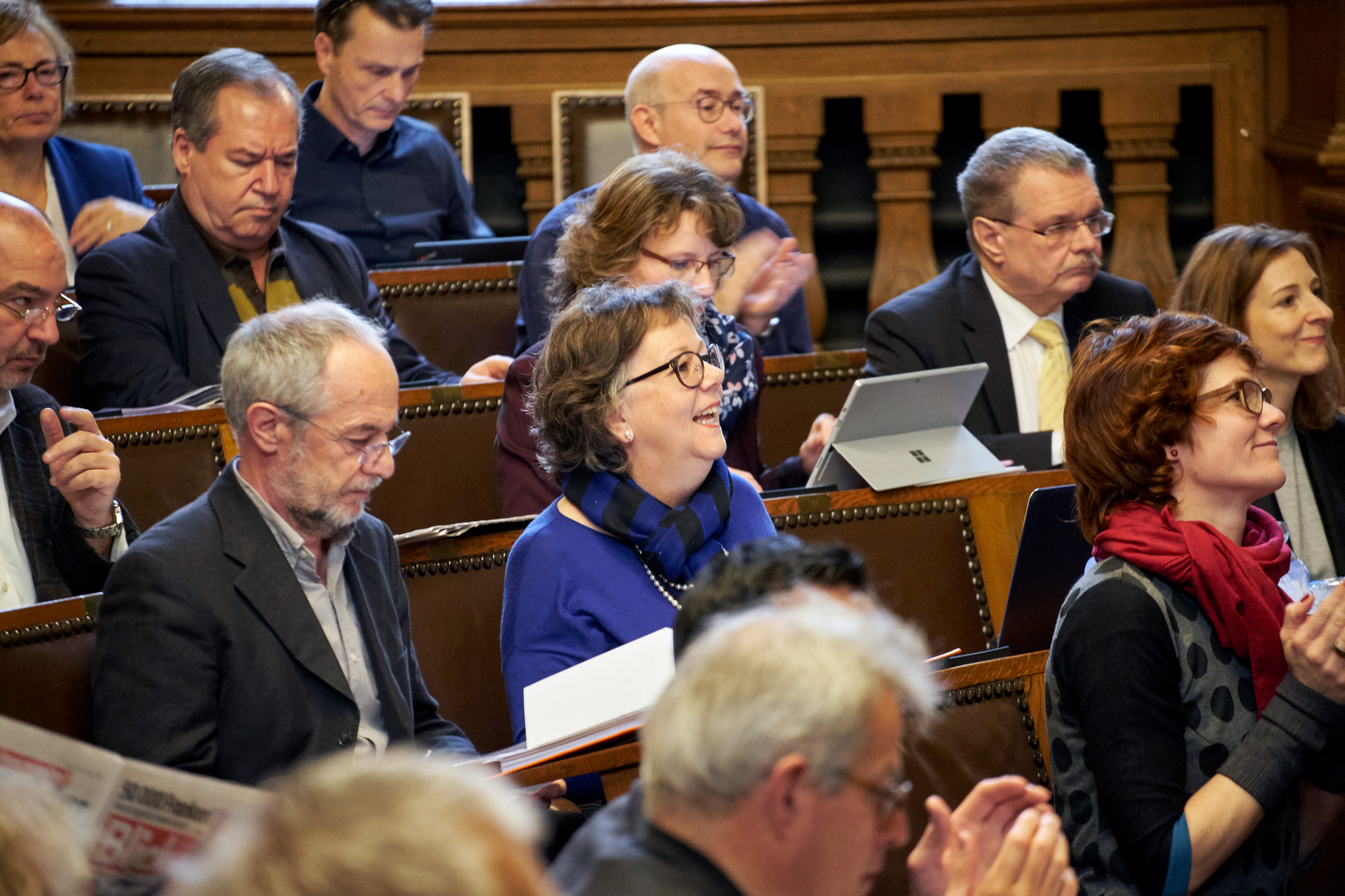 Stimmenzähler und Ratssekretariat um Thomas Dähler
