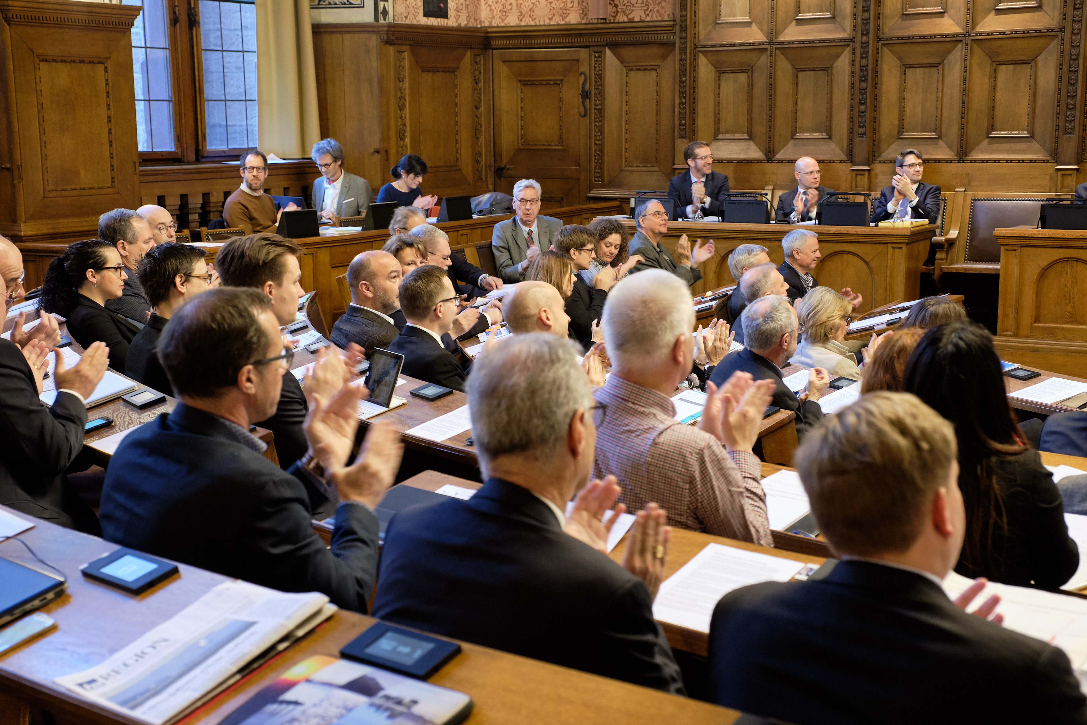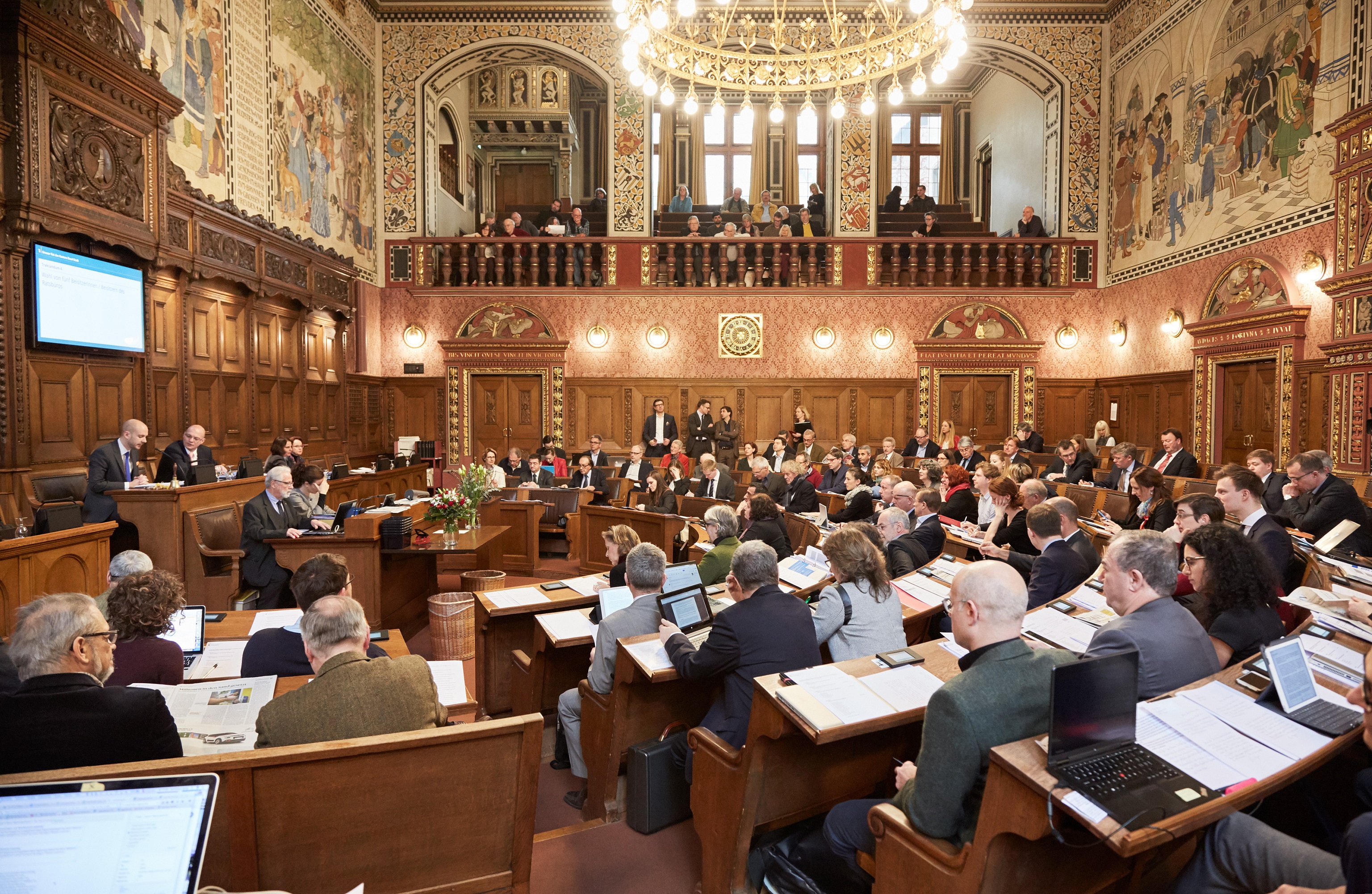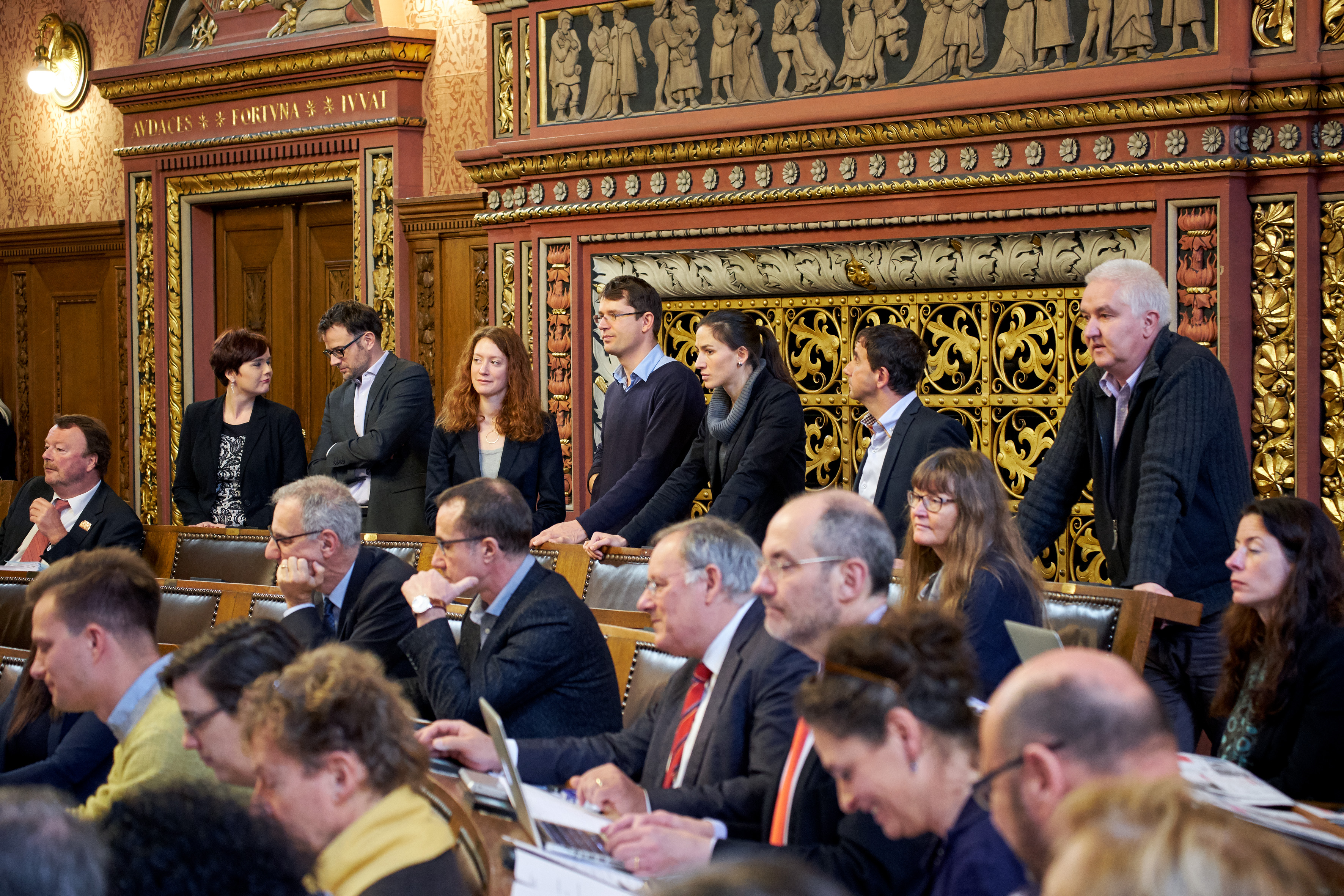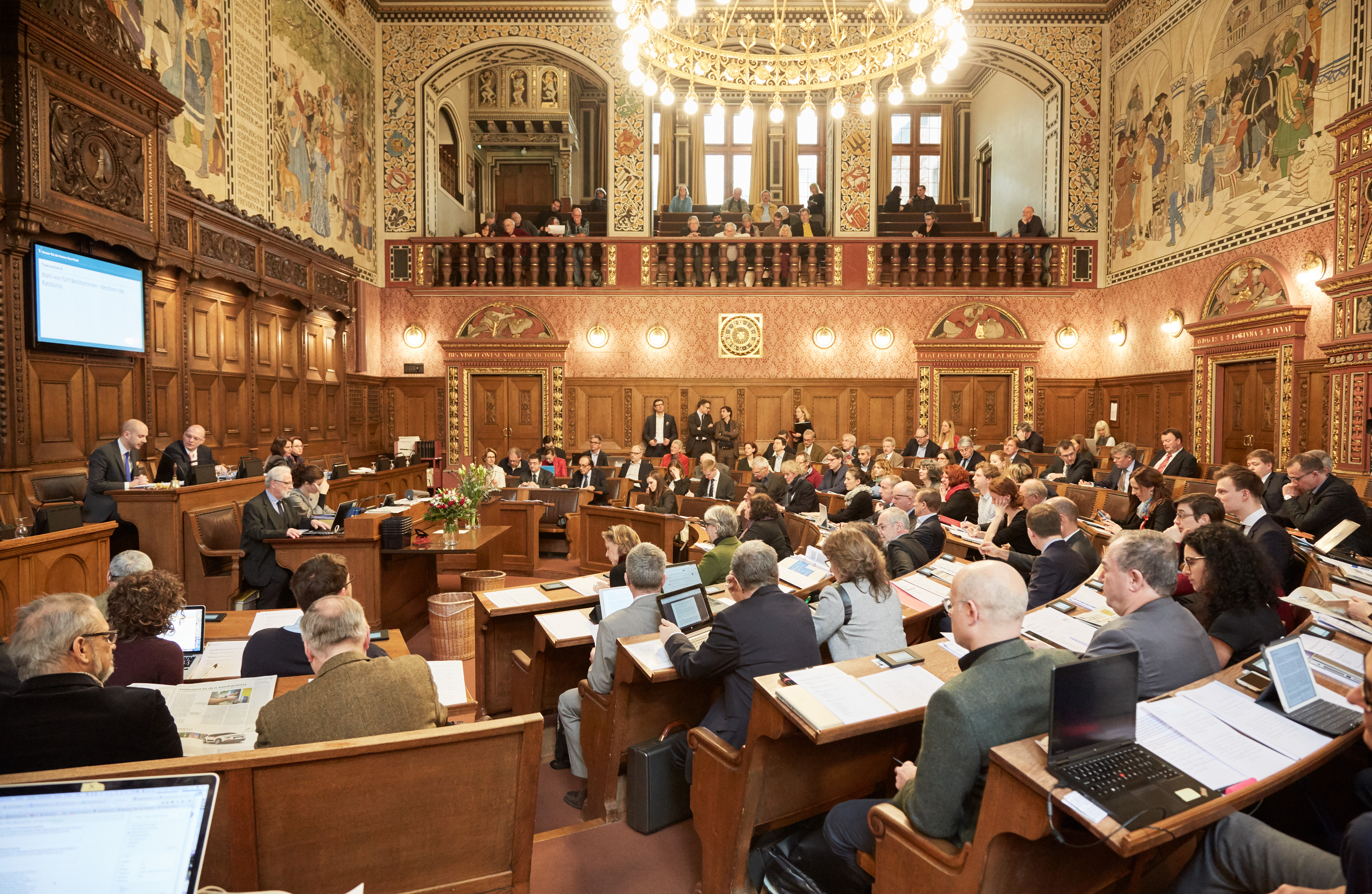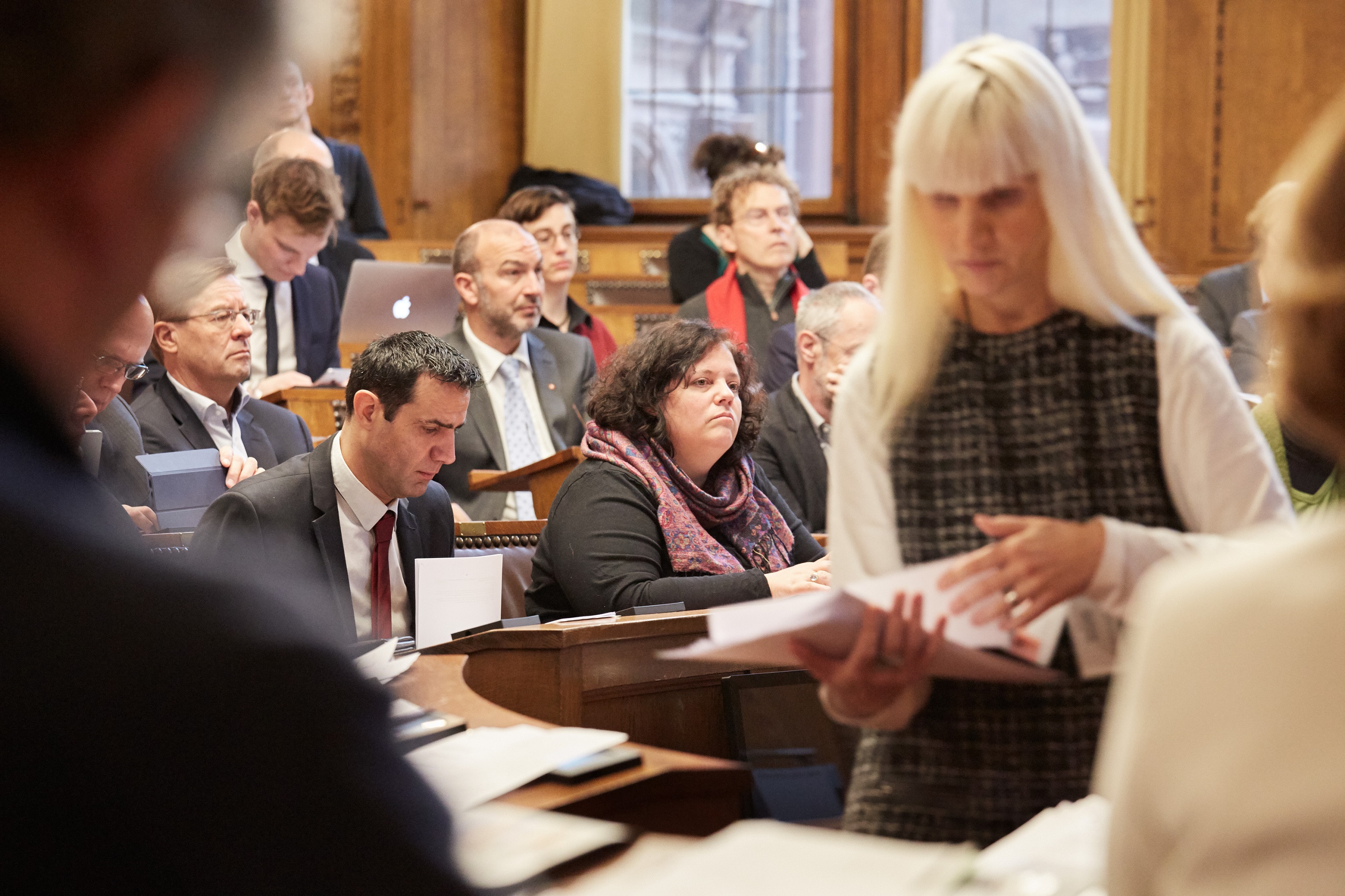 Stimmenzähler und Ratssekretariat um Thomas Dähler