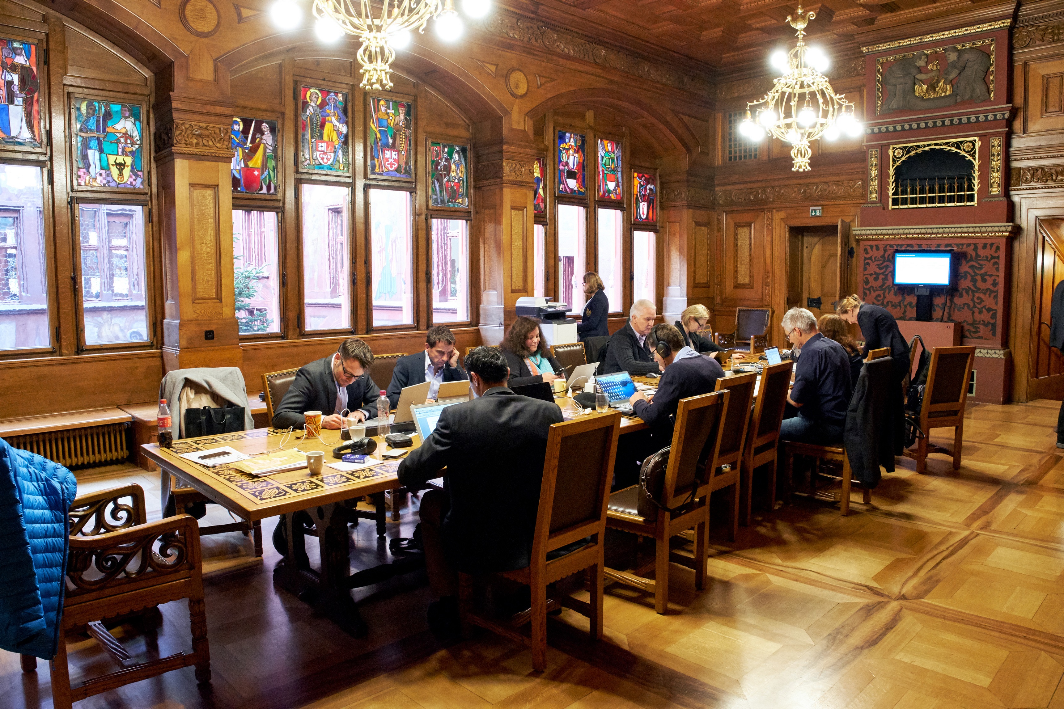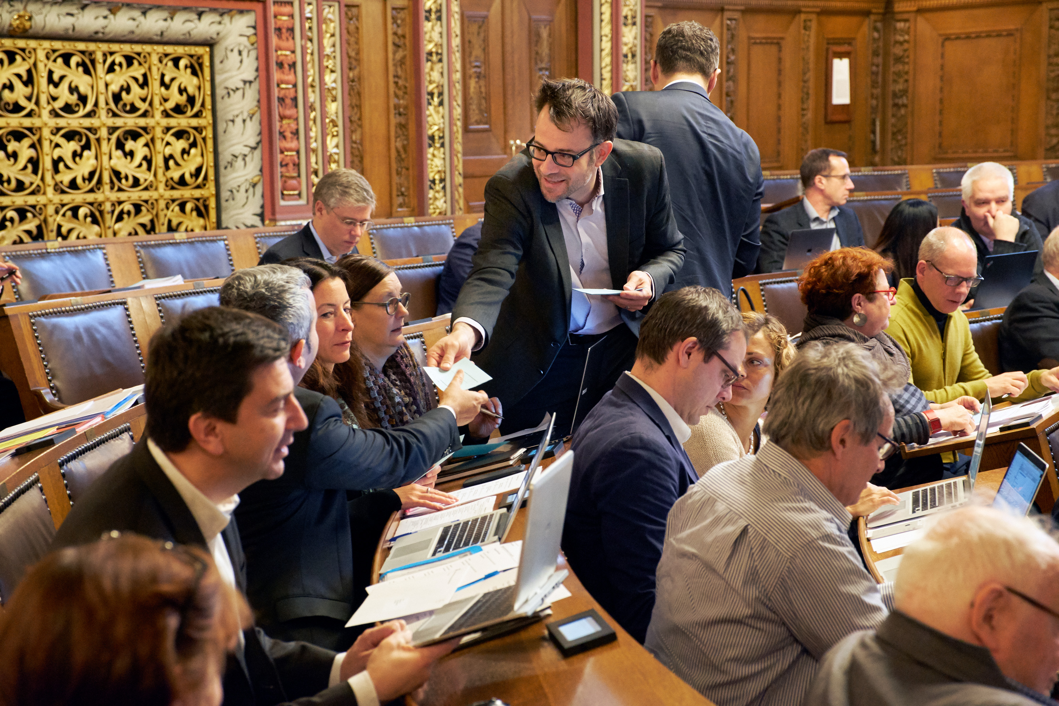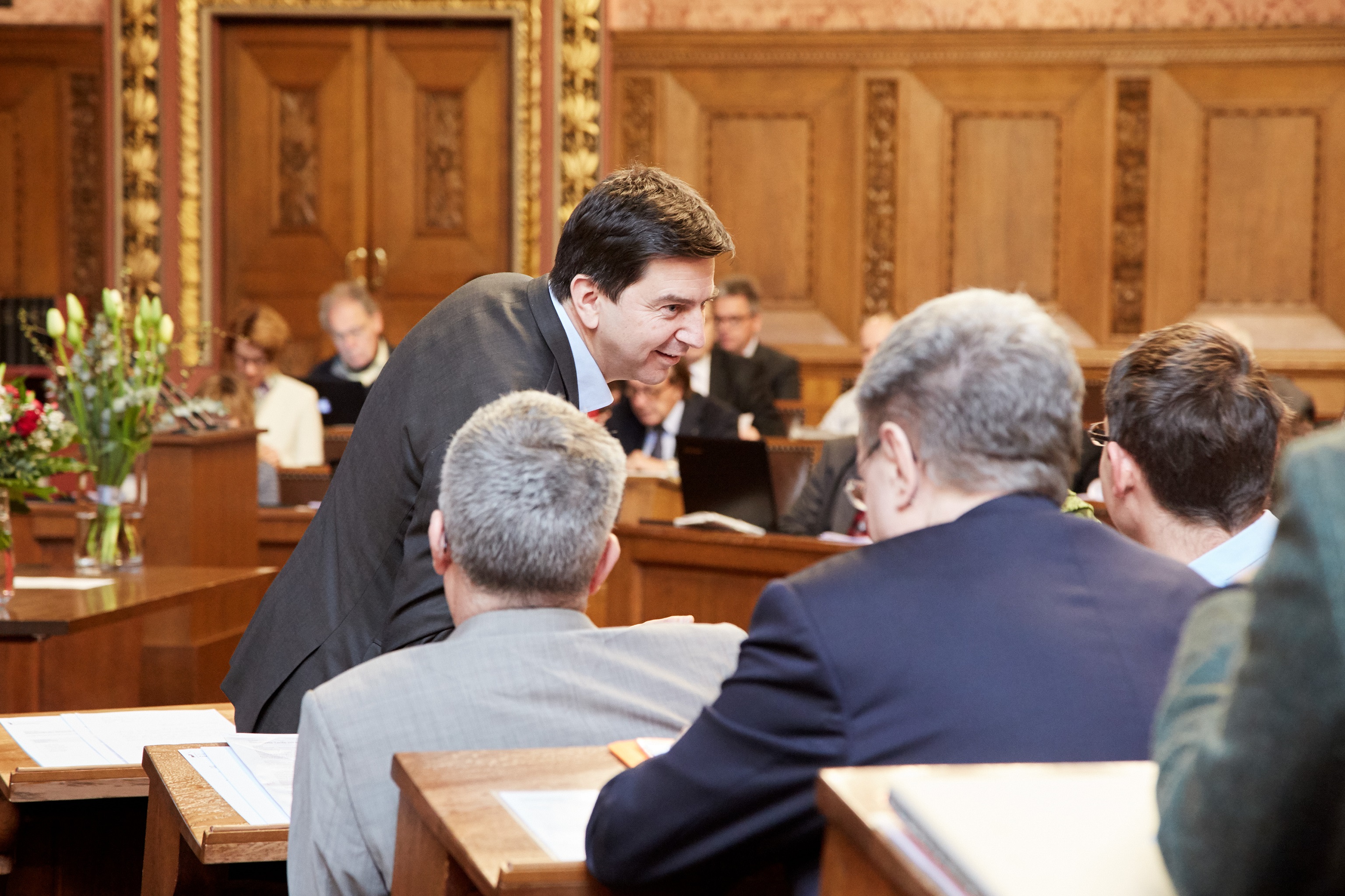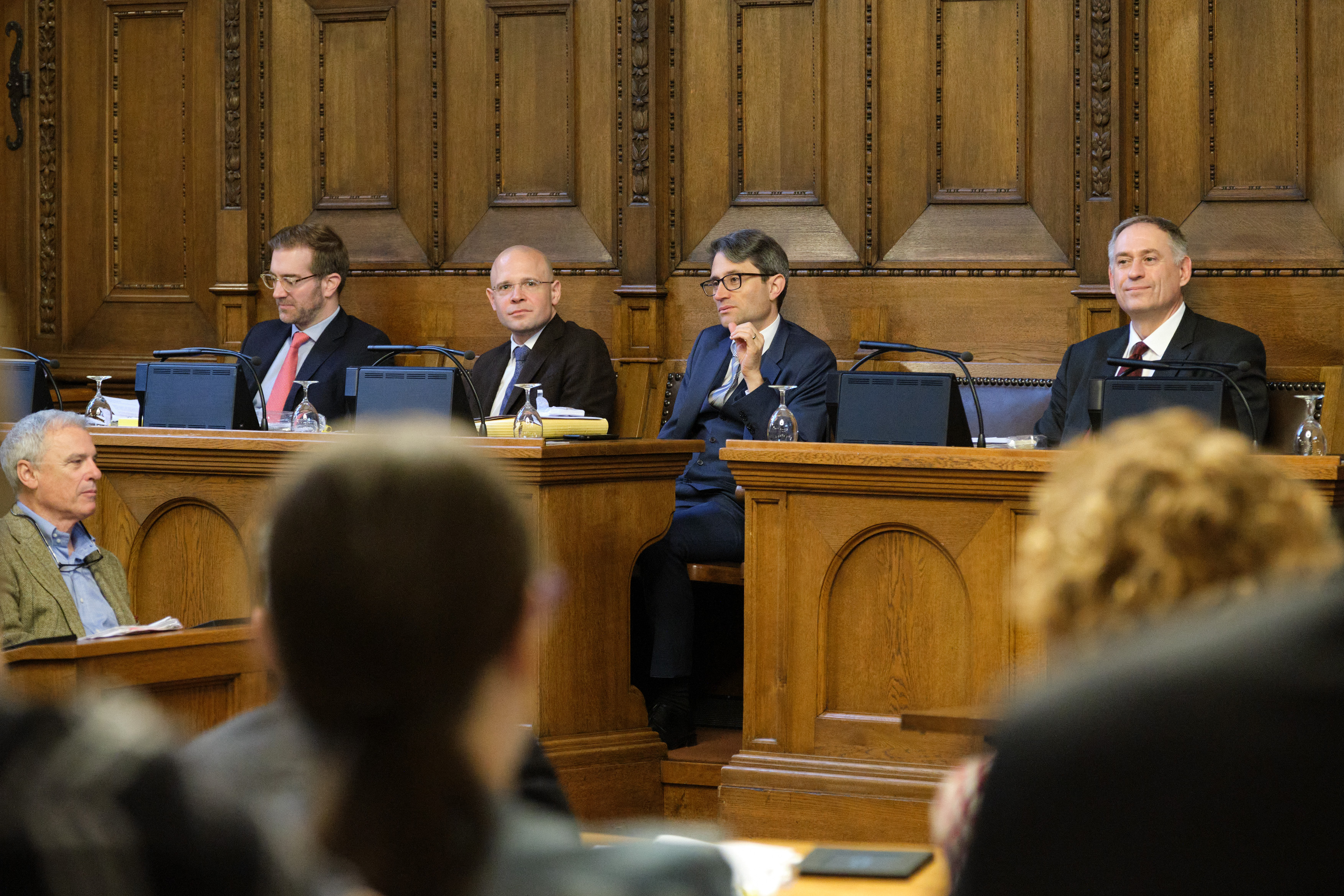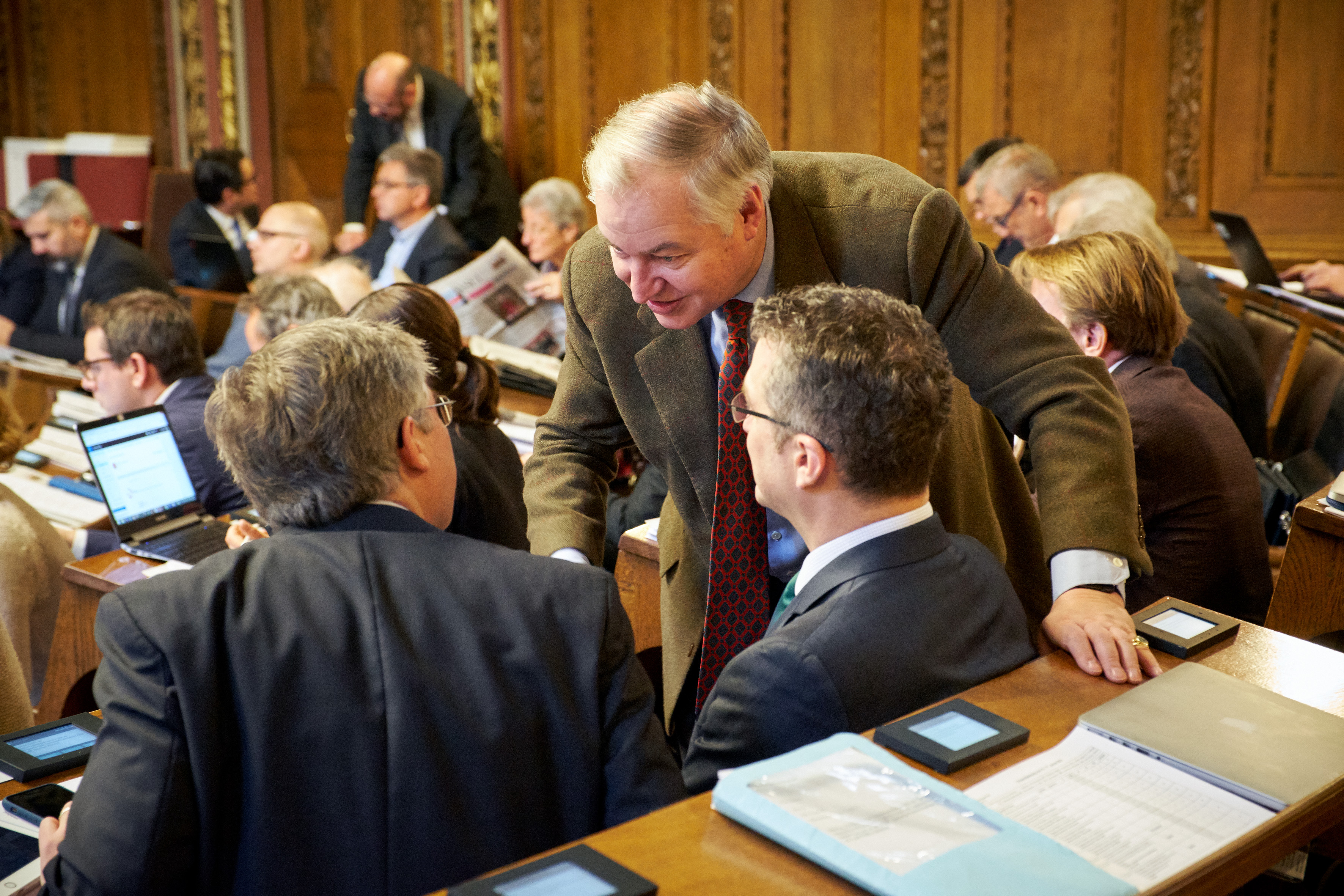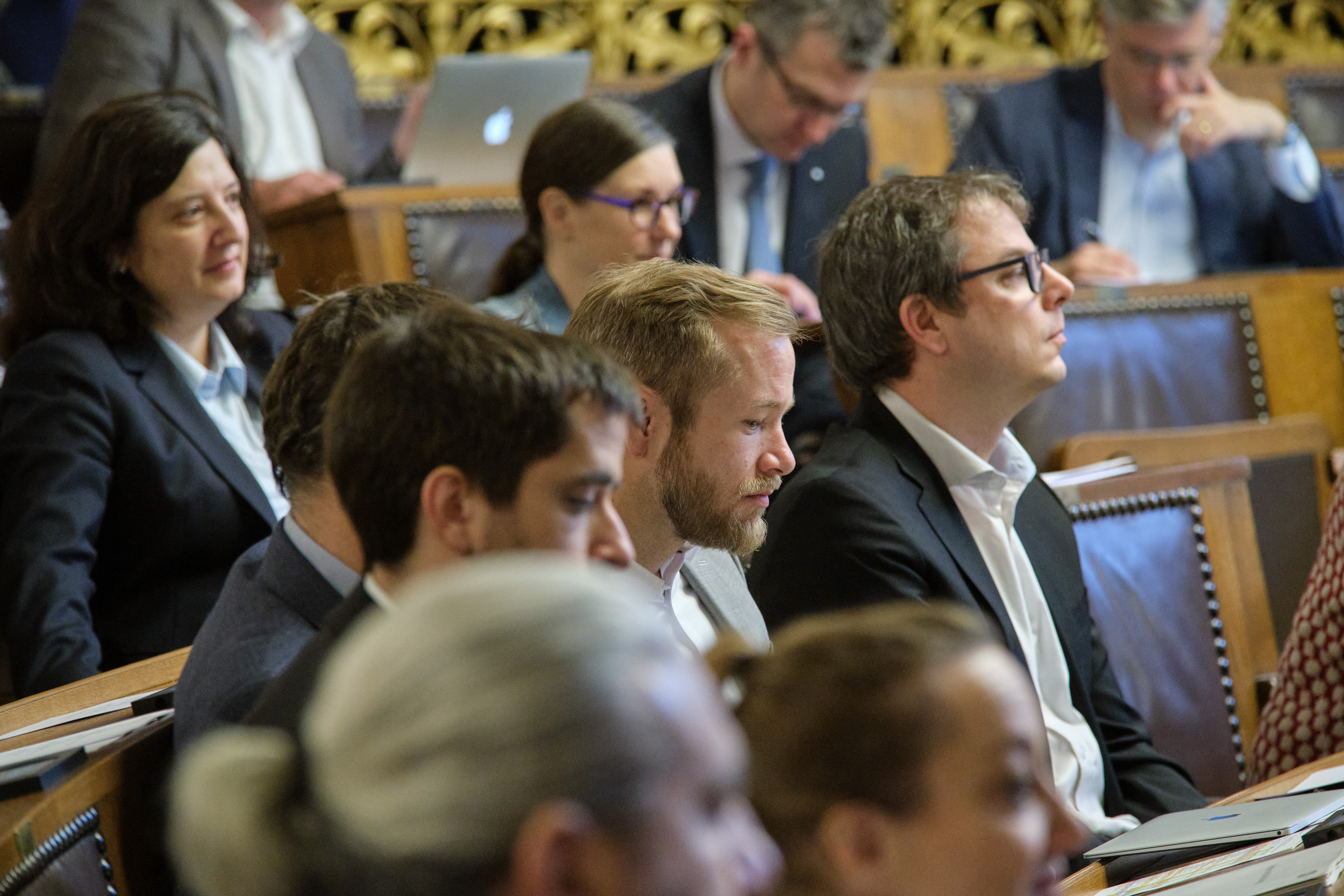 Stimmenzähler und Ratssekretariat um Thomas Dähler