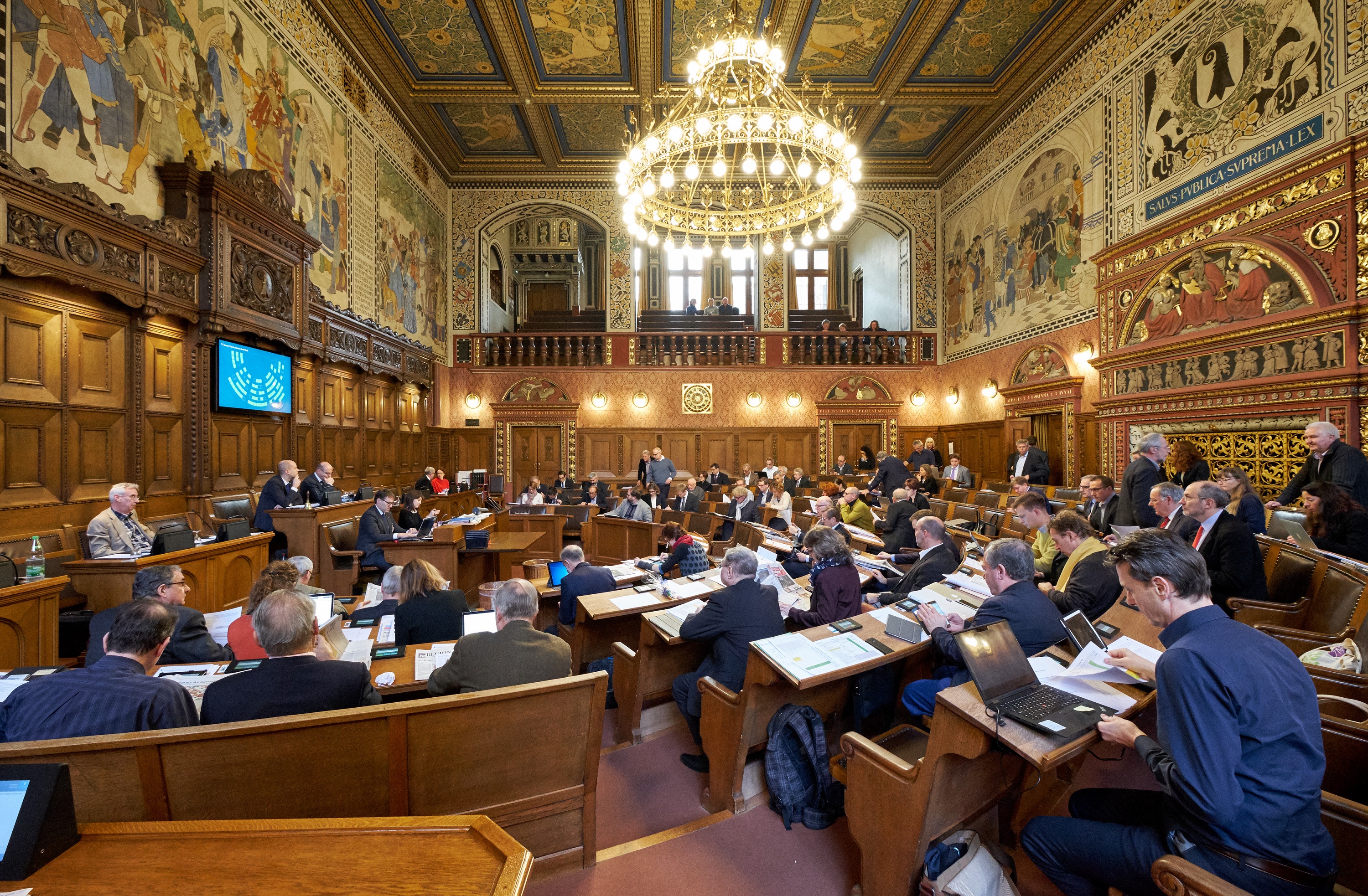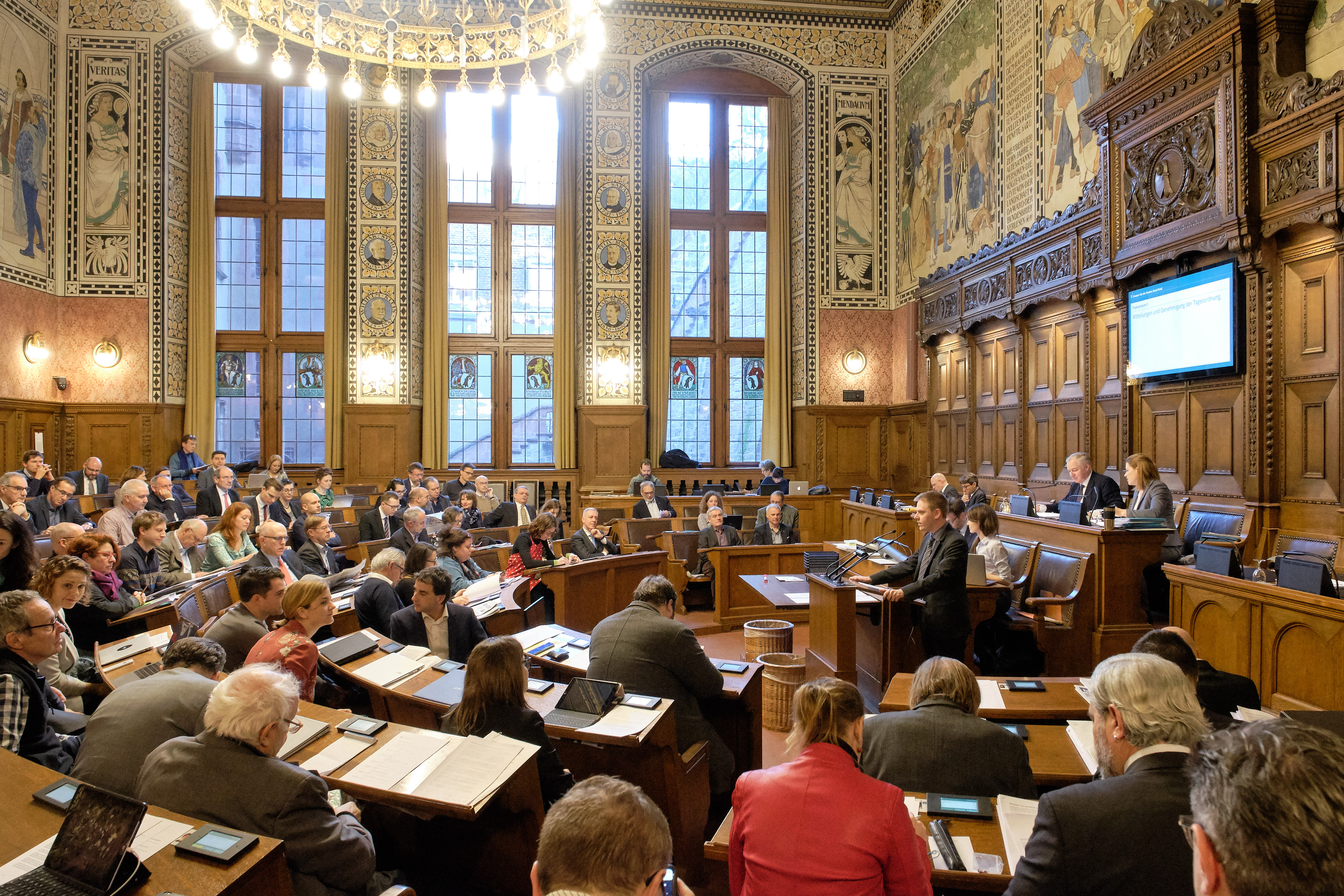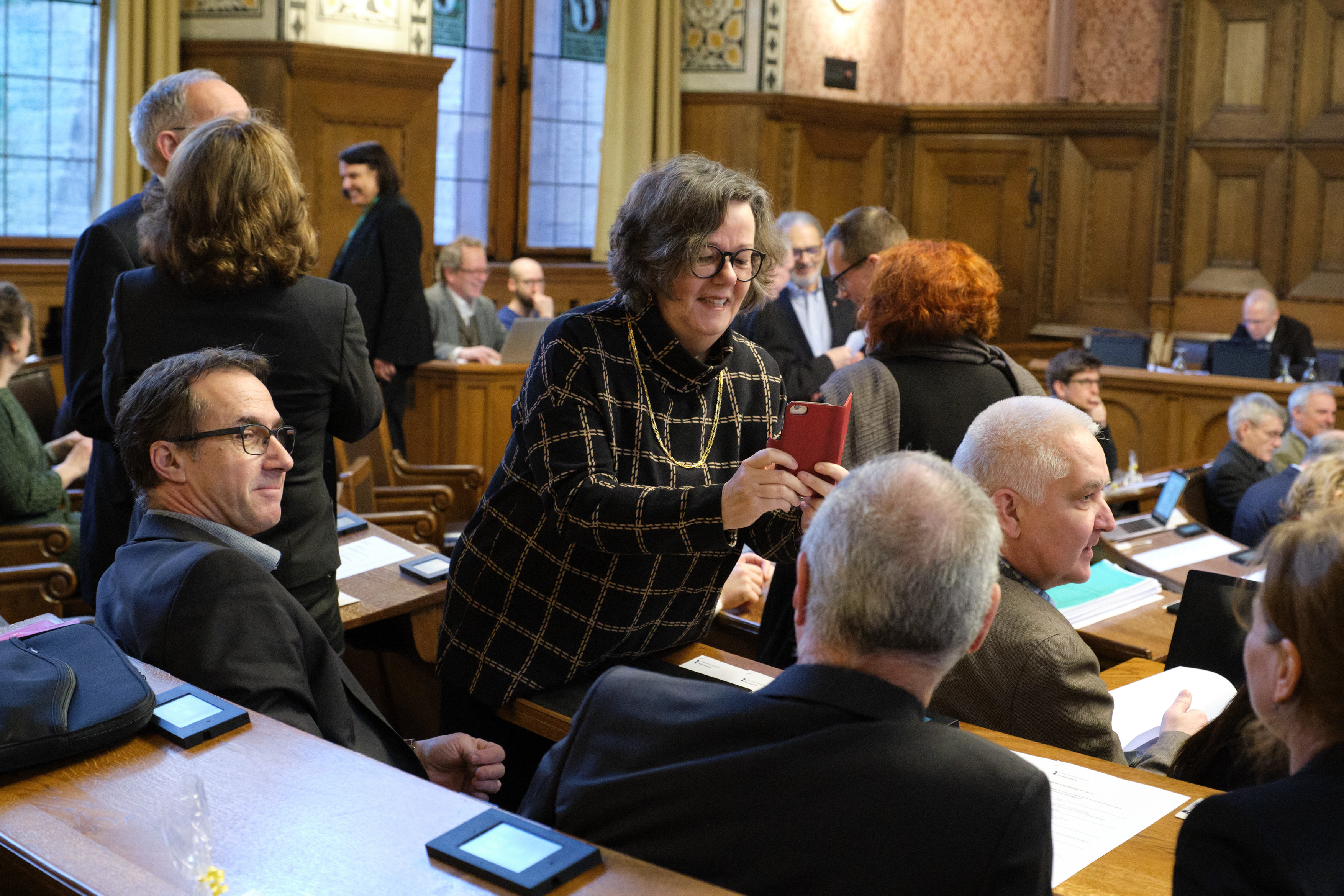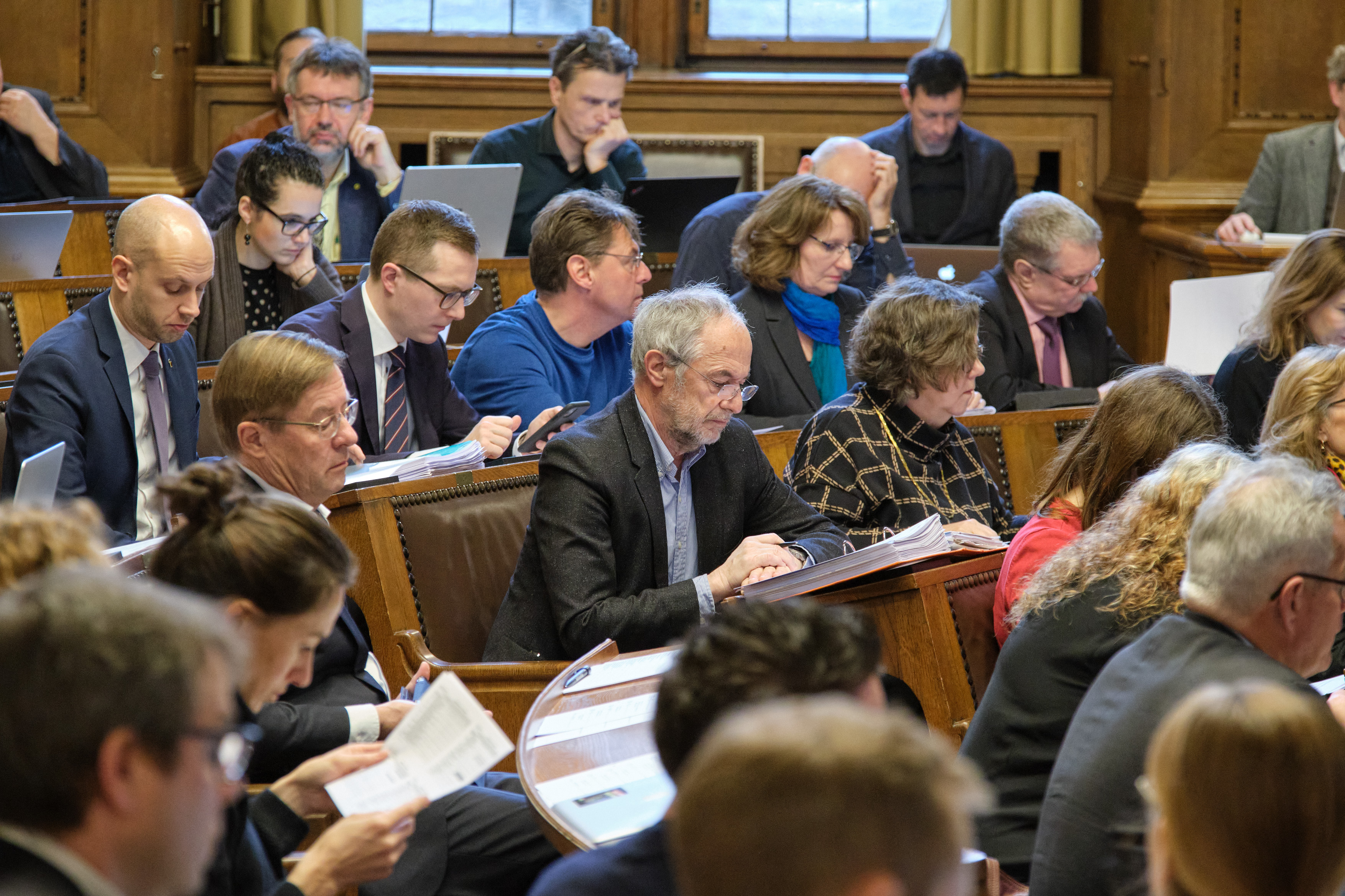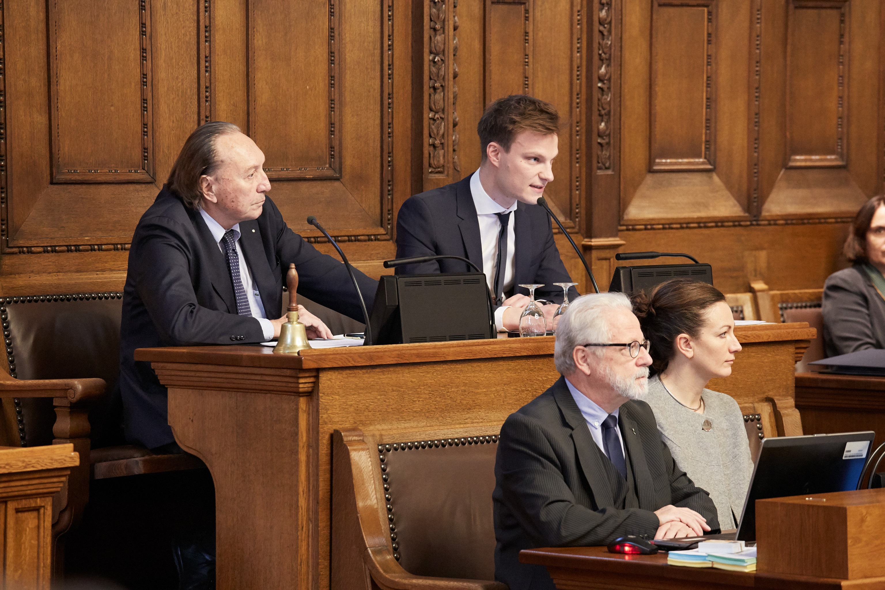Stimmenzähler und Ratssekretariat um Thomas Dähler