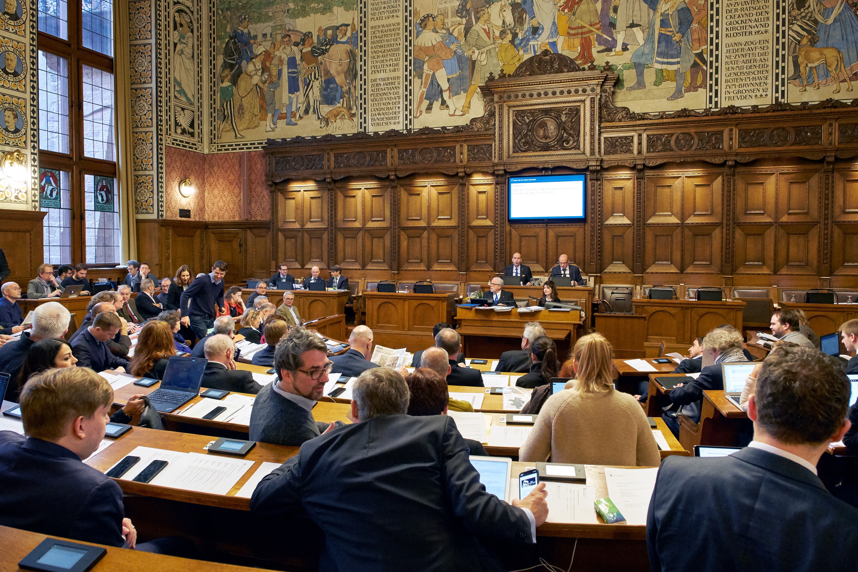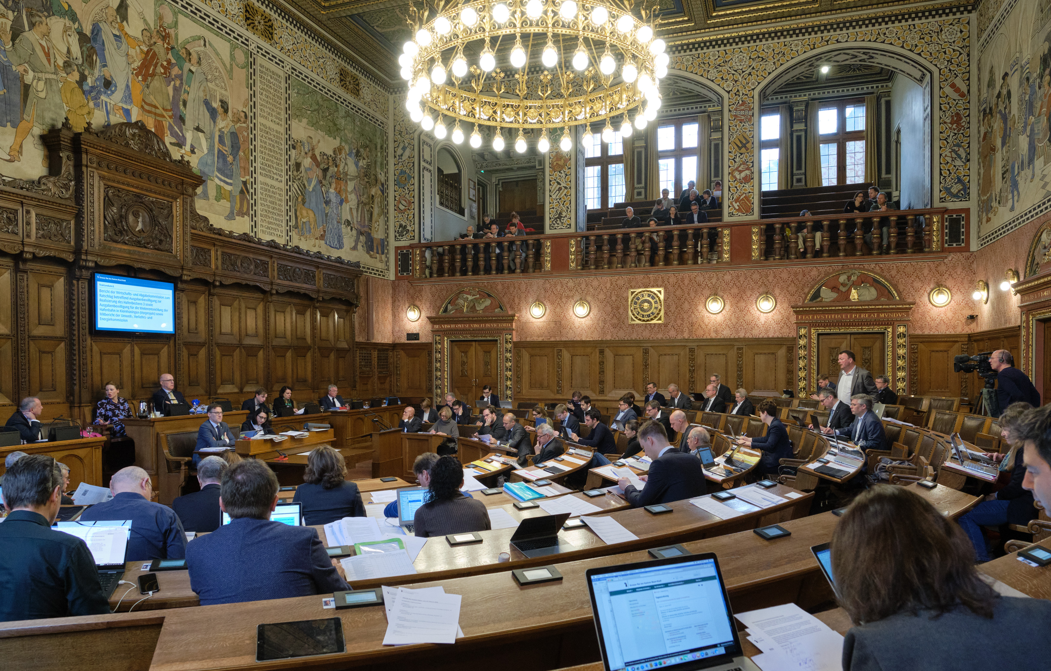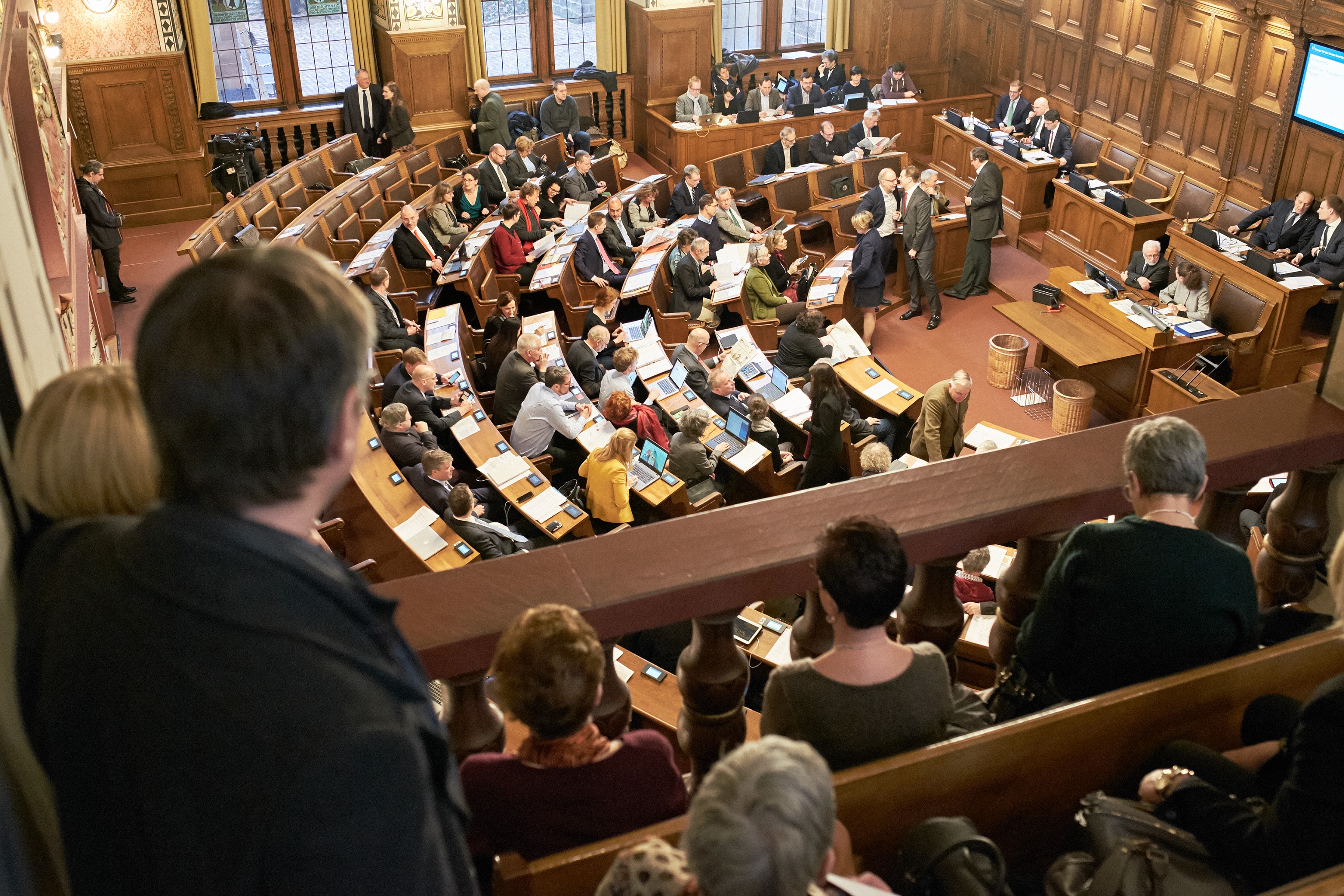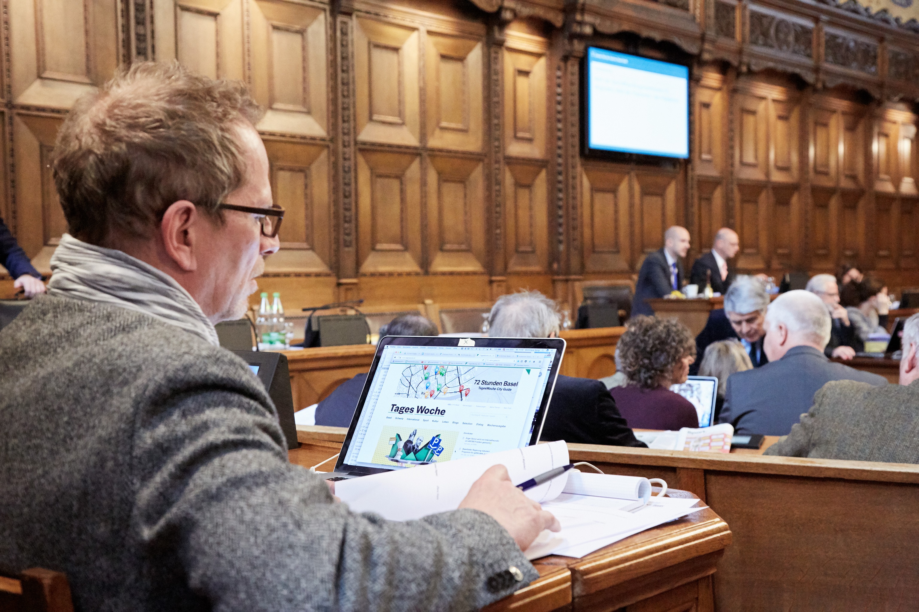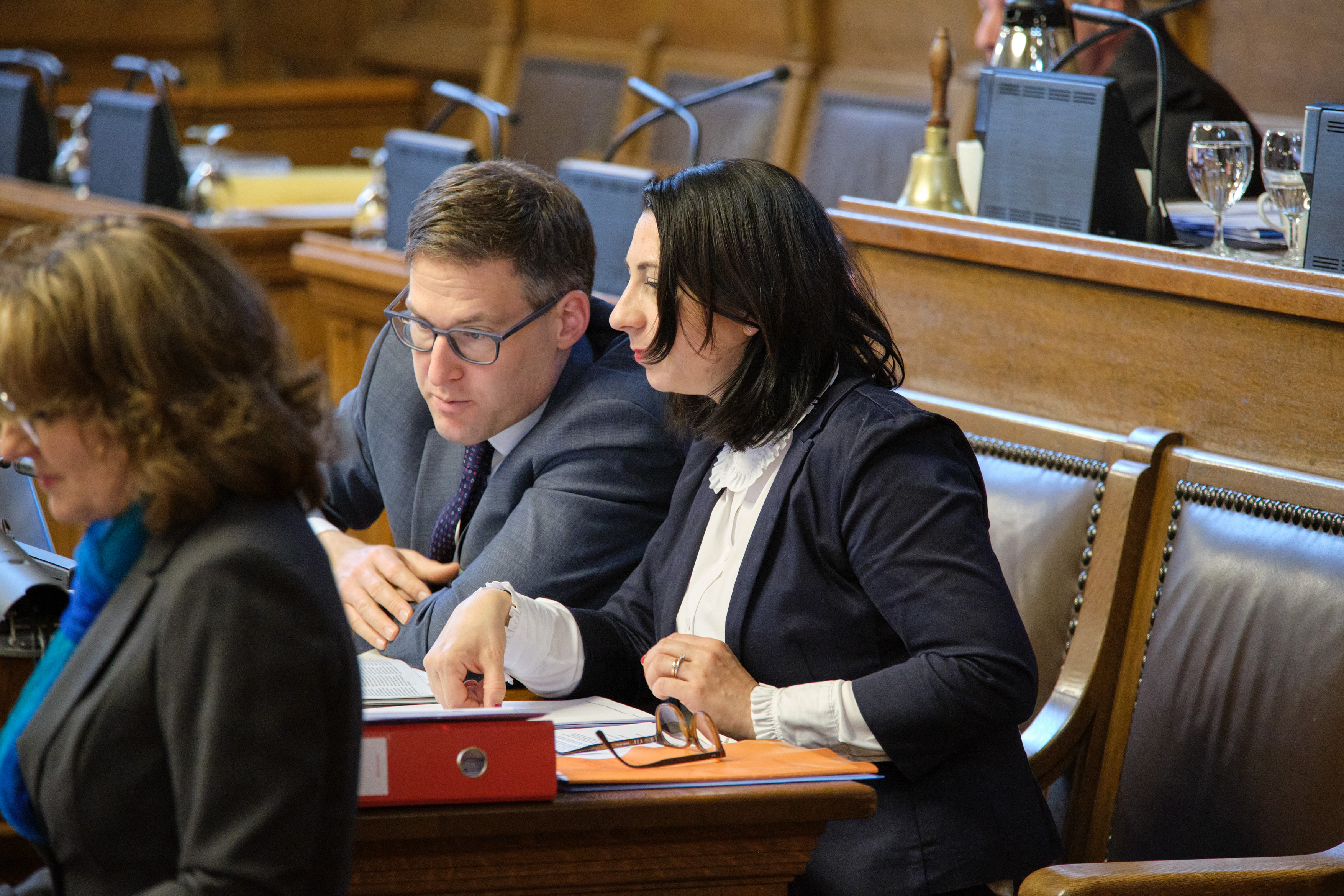 Stimmenzähler und Ratssekretariat um Thomas Dähler