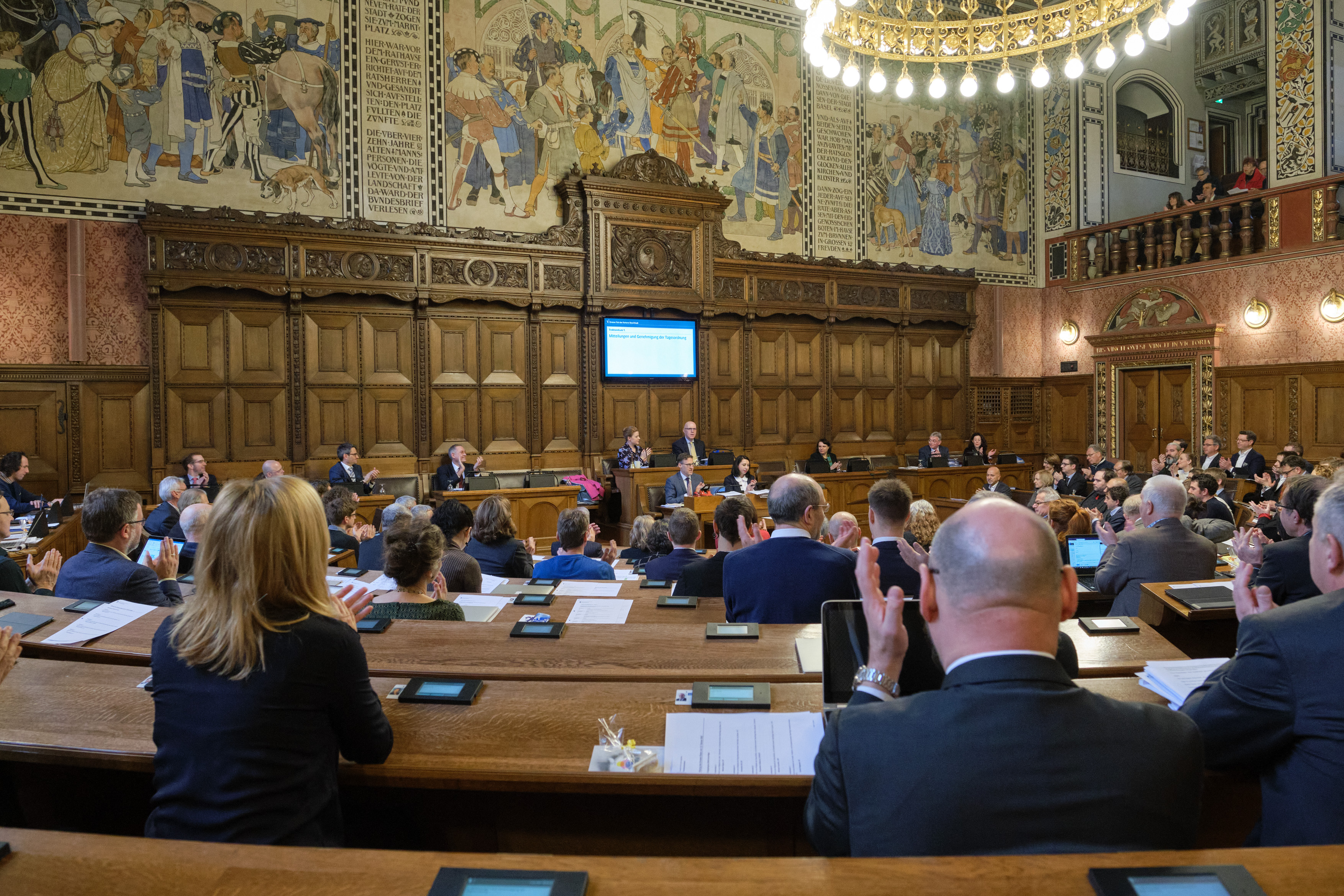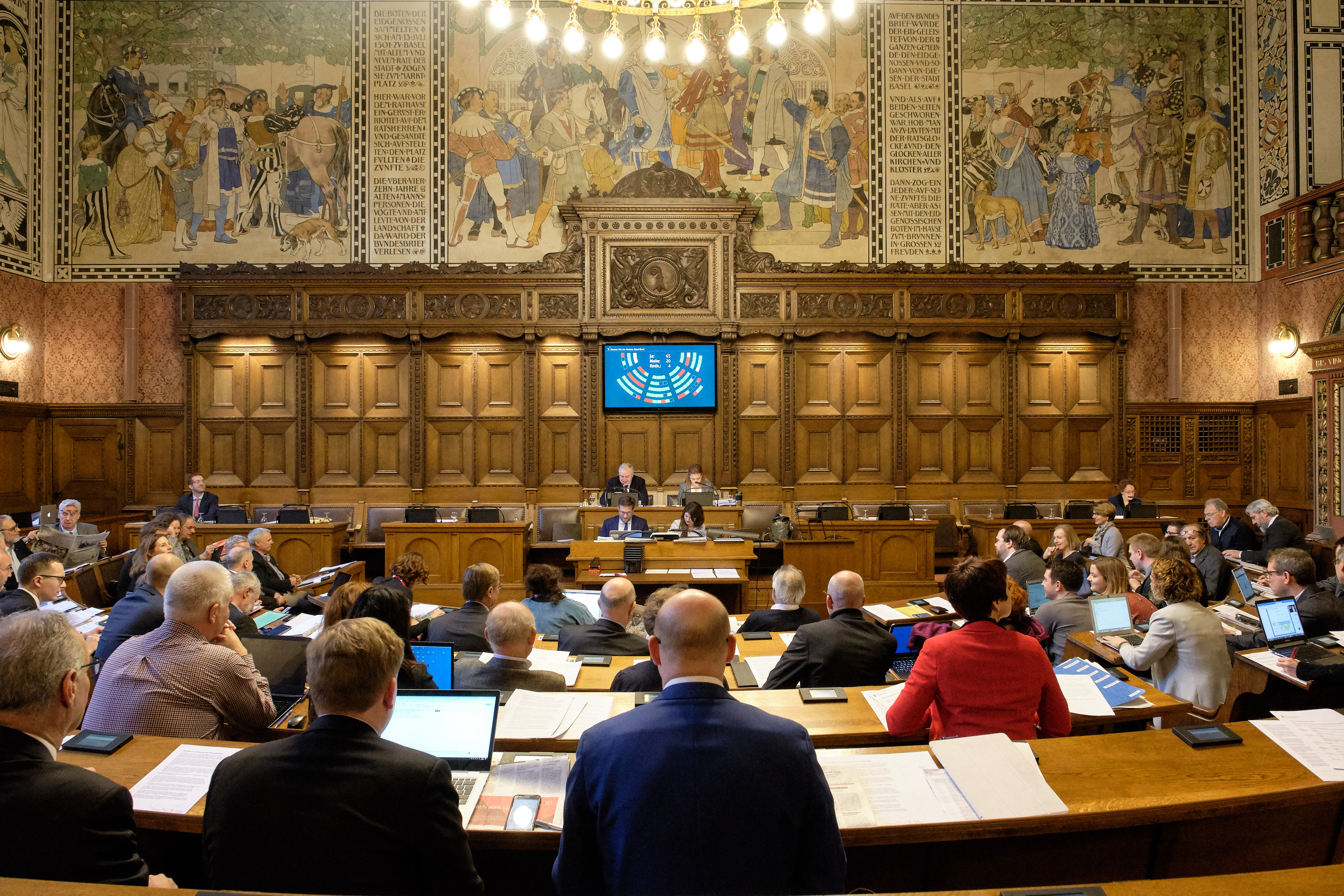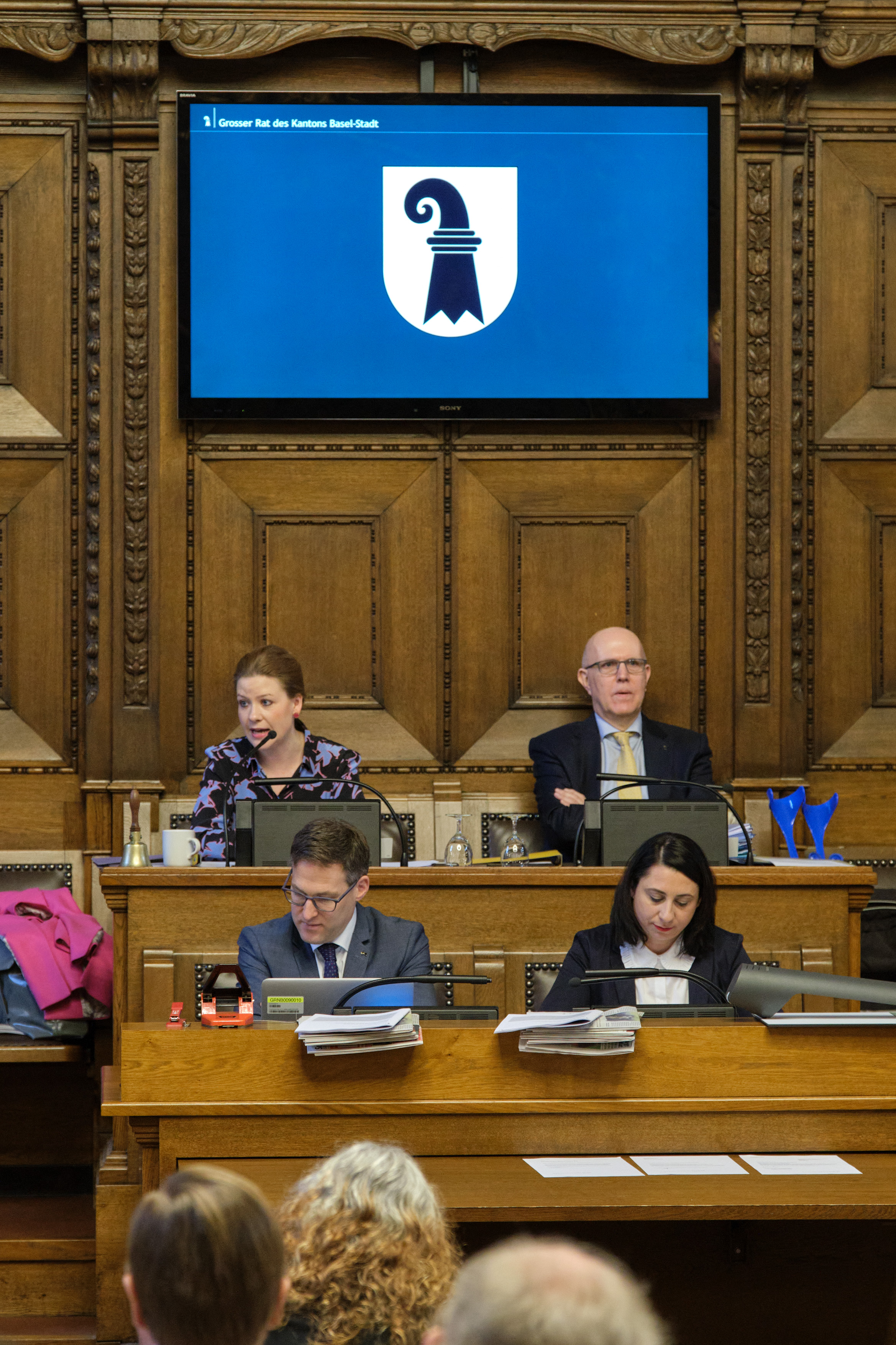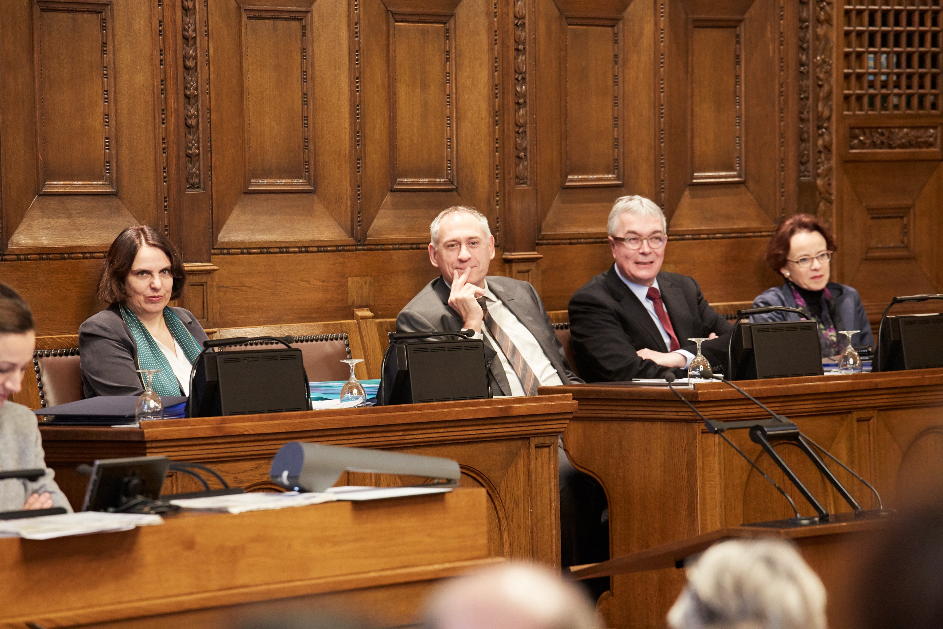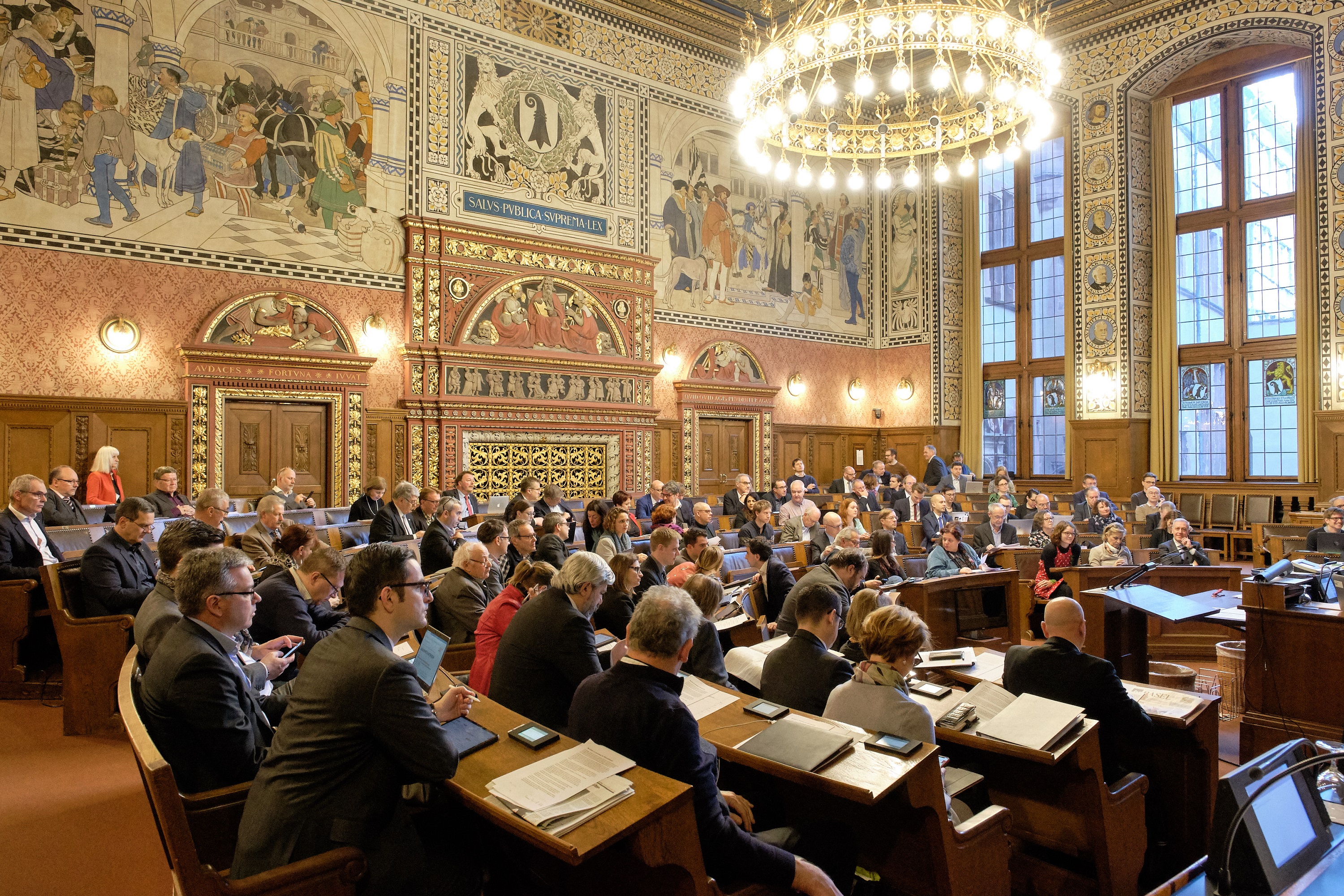 Stimmenzähler und Ratssekretariat um Thomas Dähler