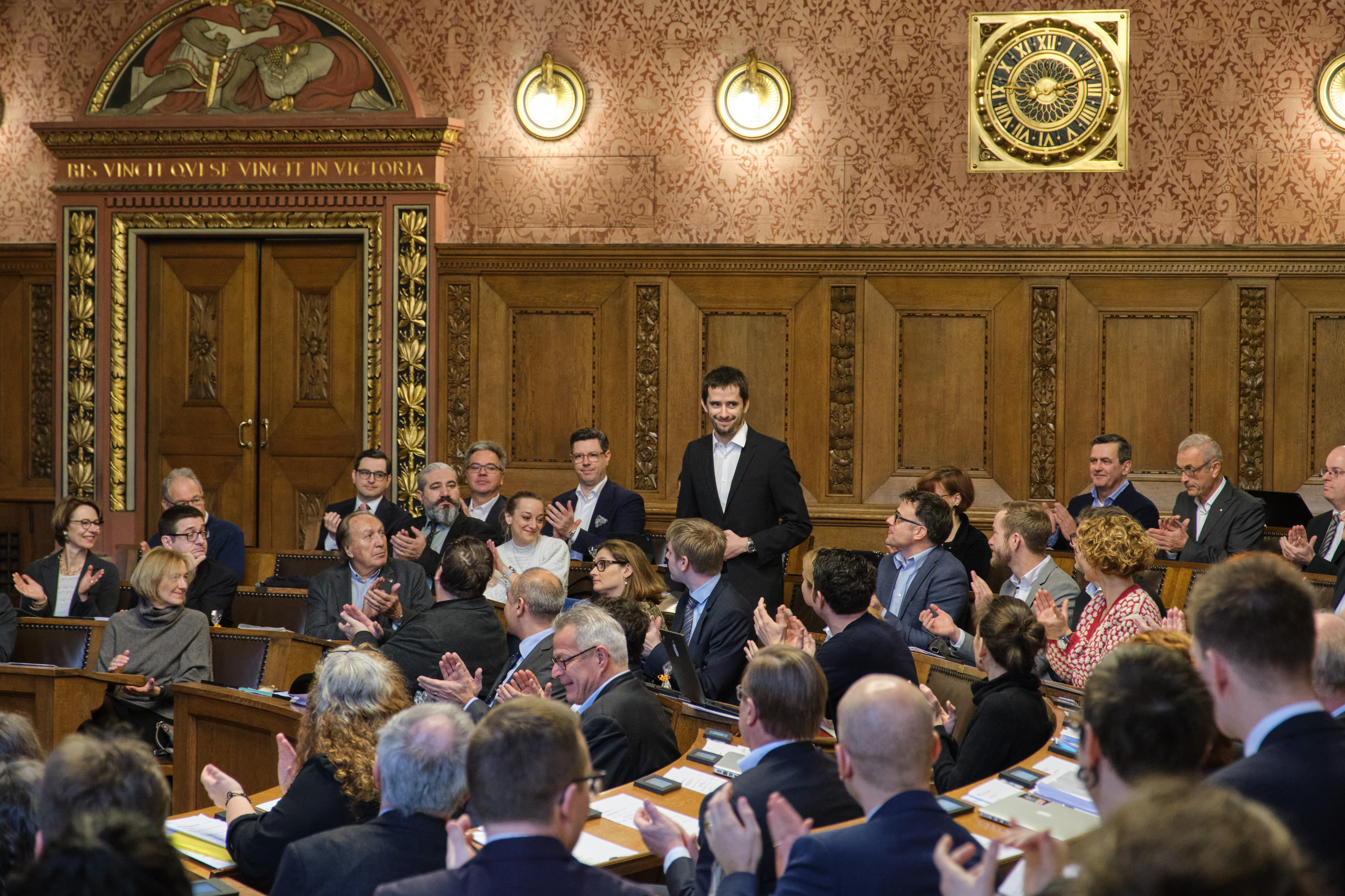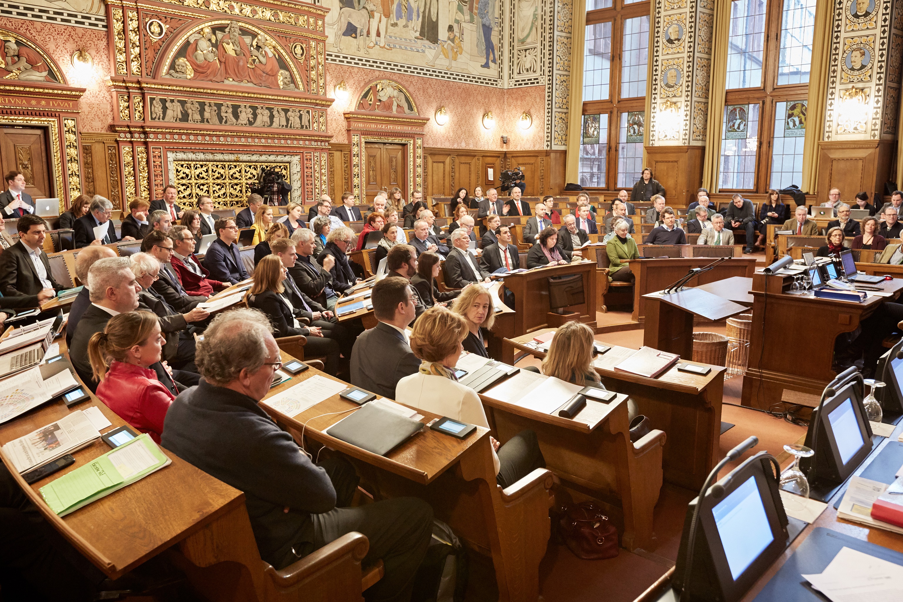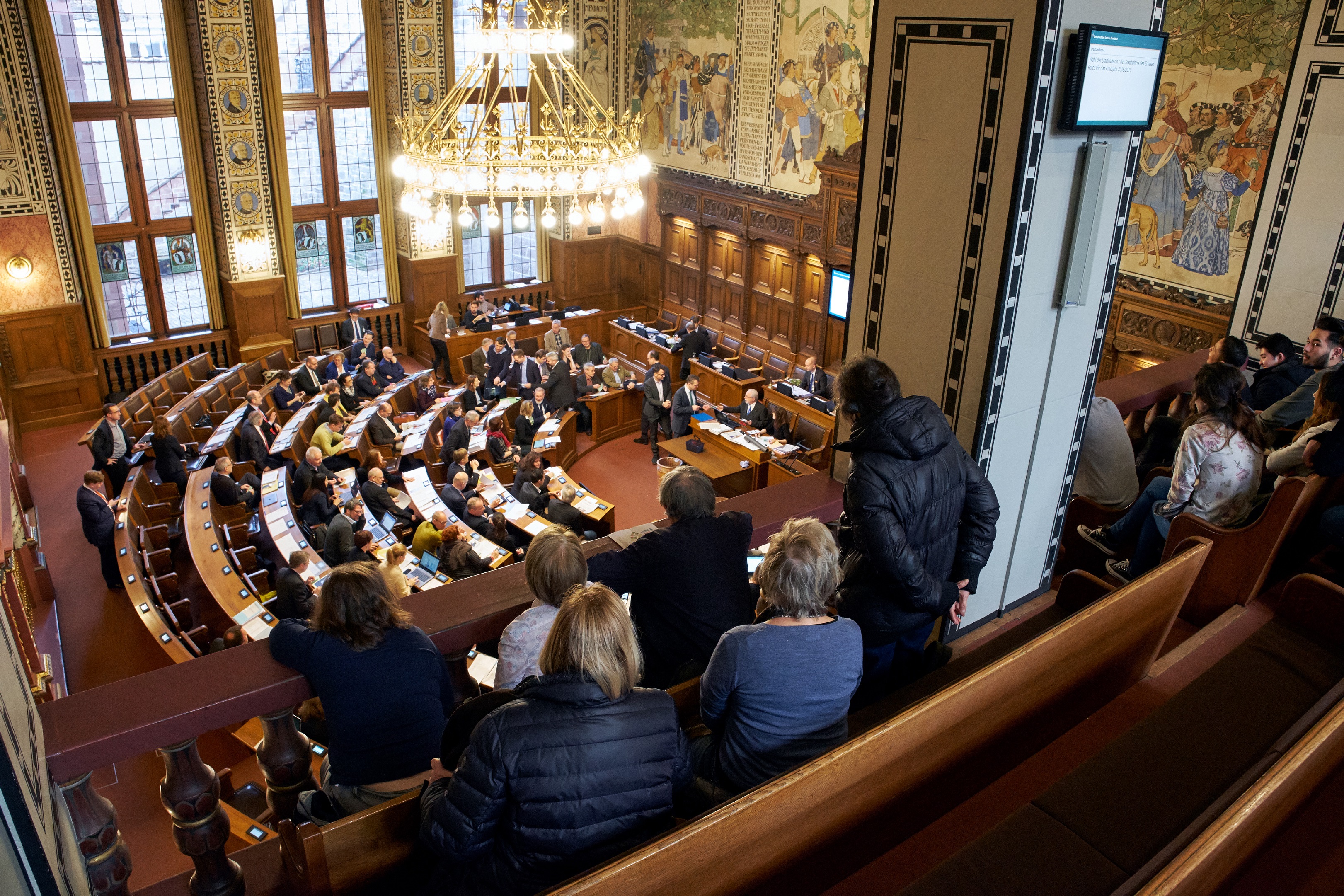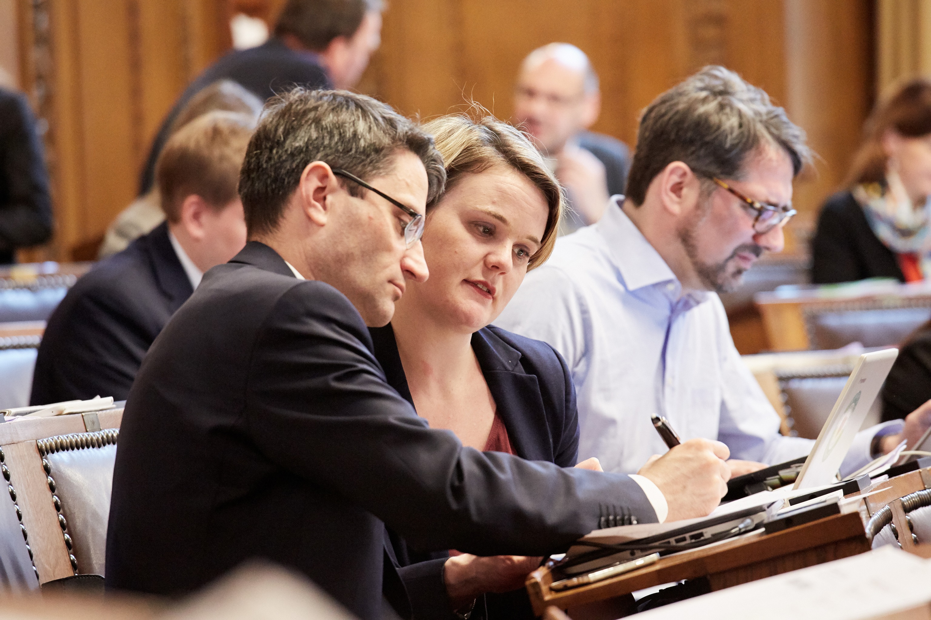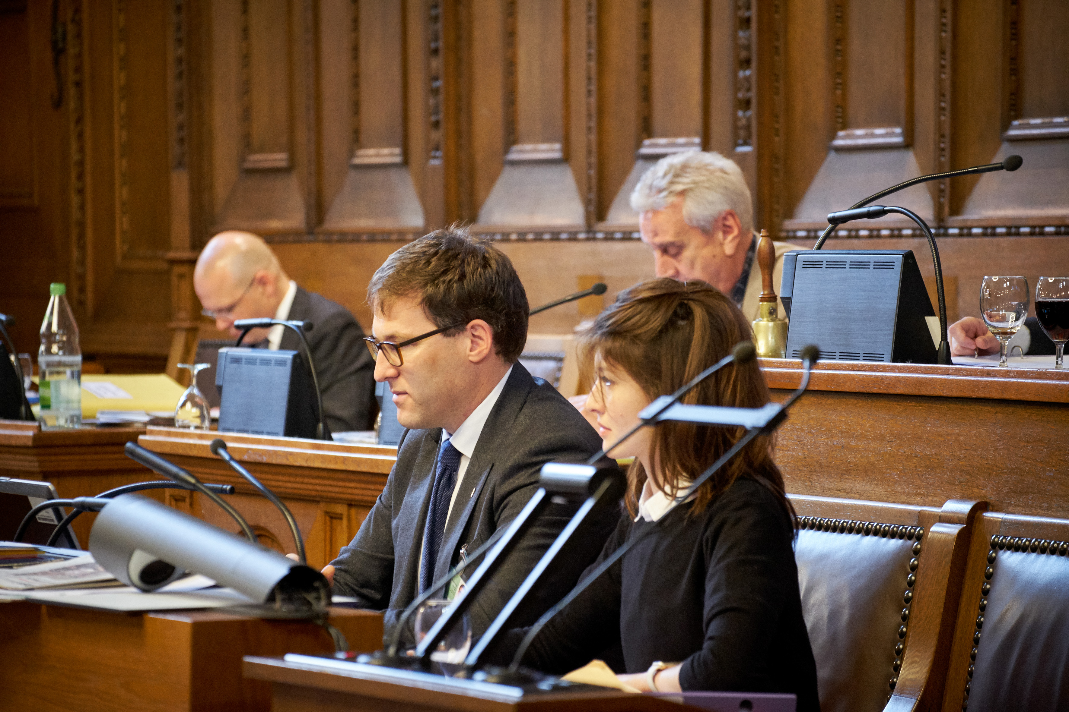 Stimmenzähler und Ratssekretariat um Thomas Dähler