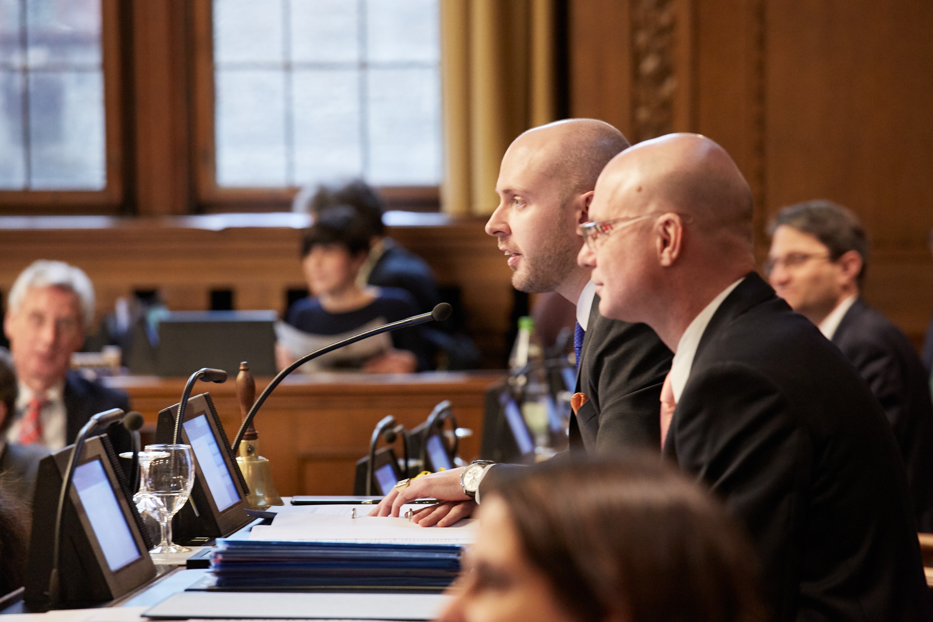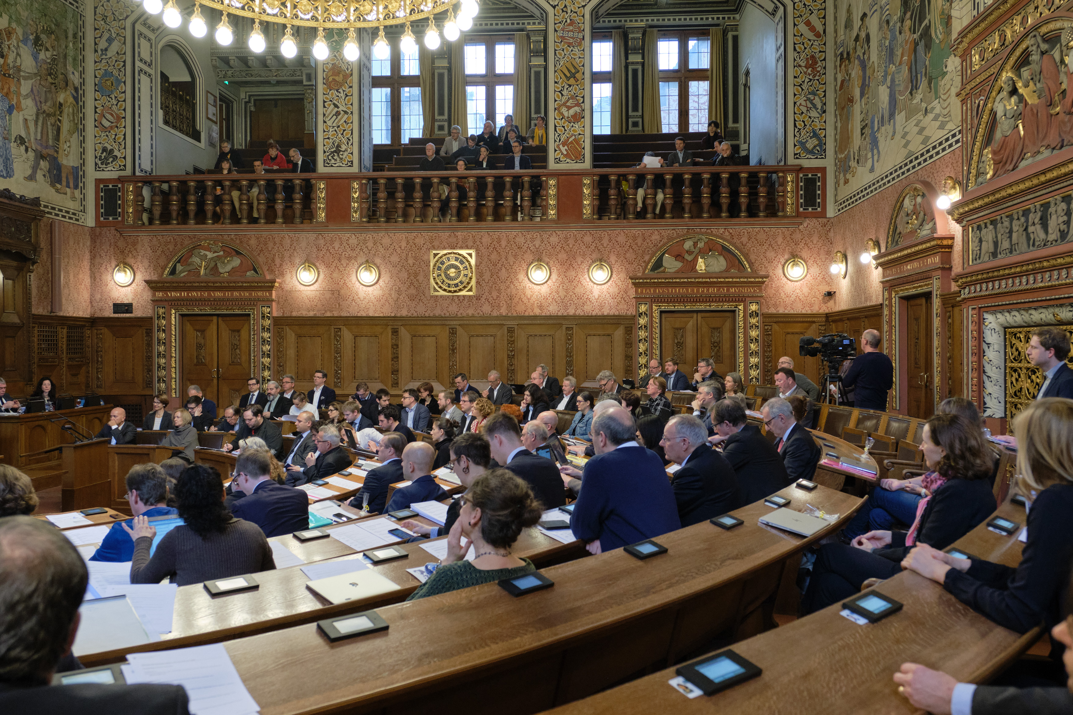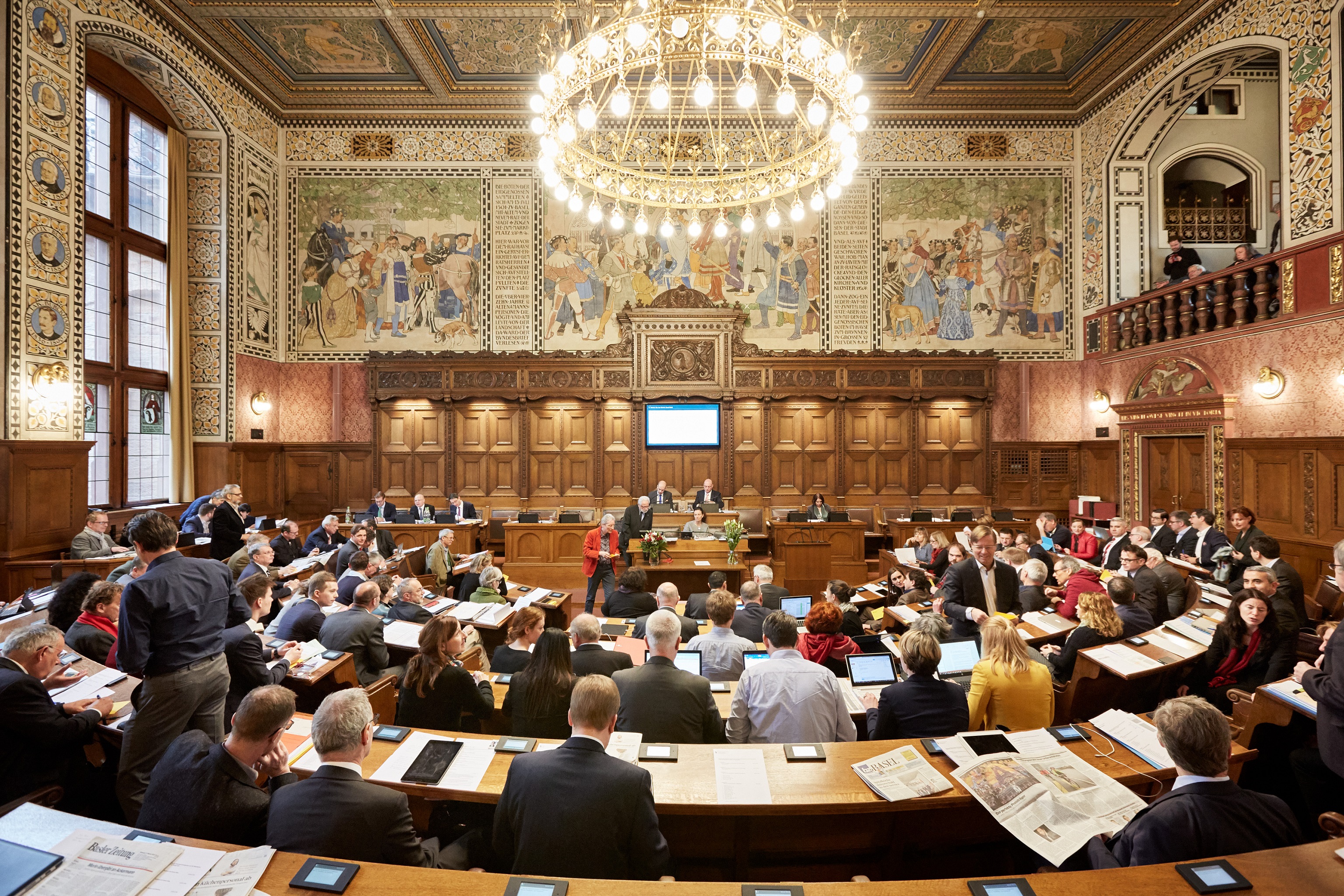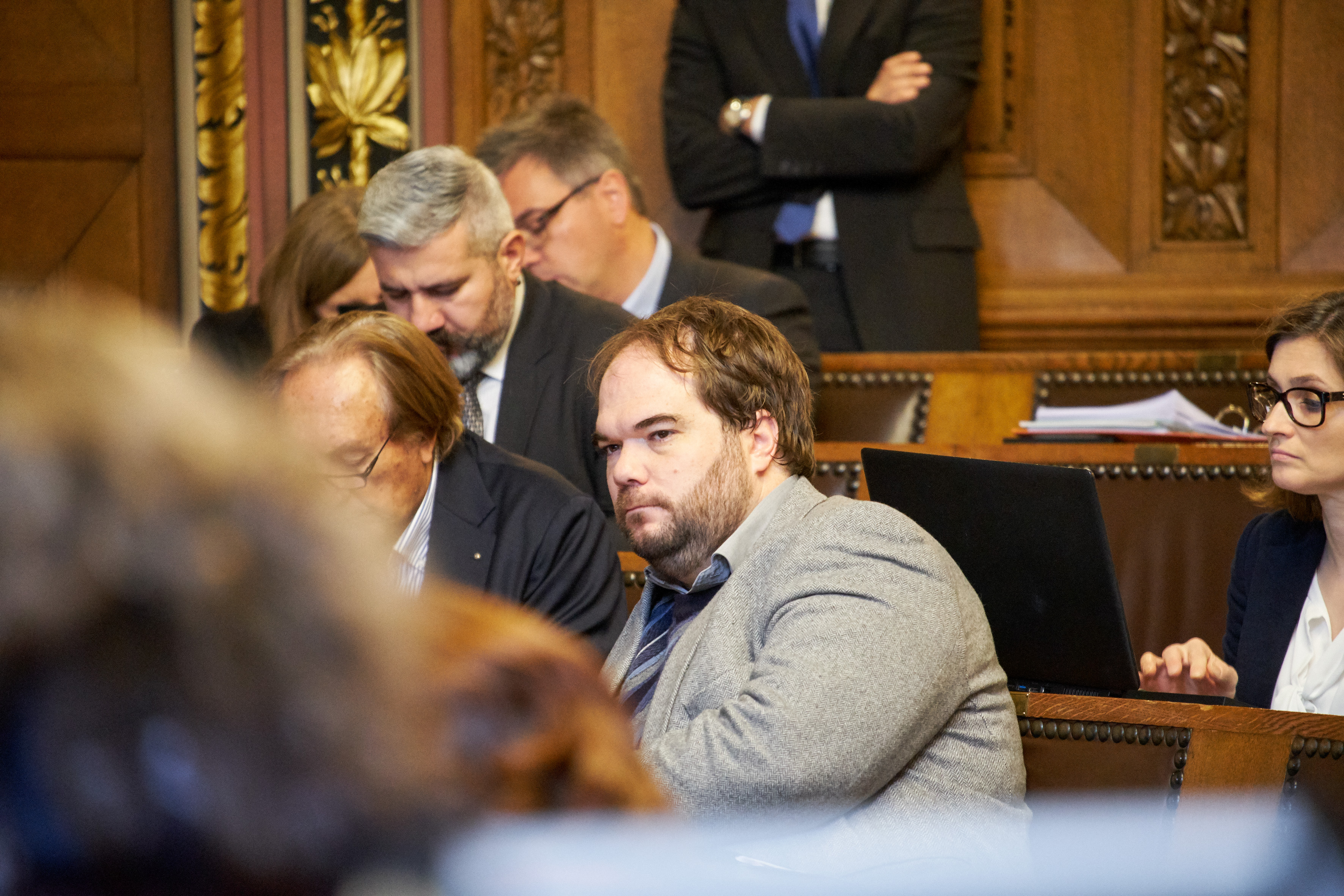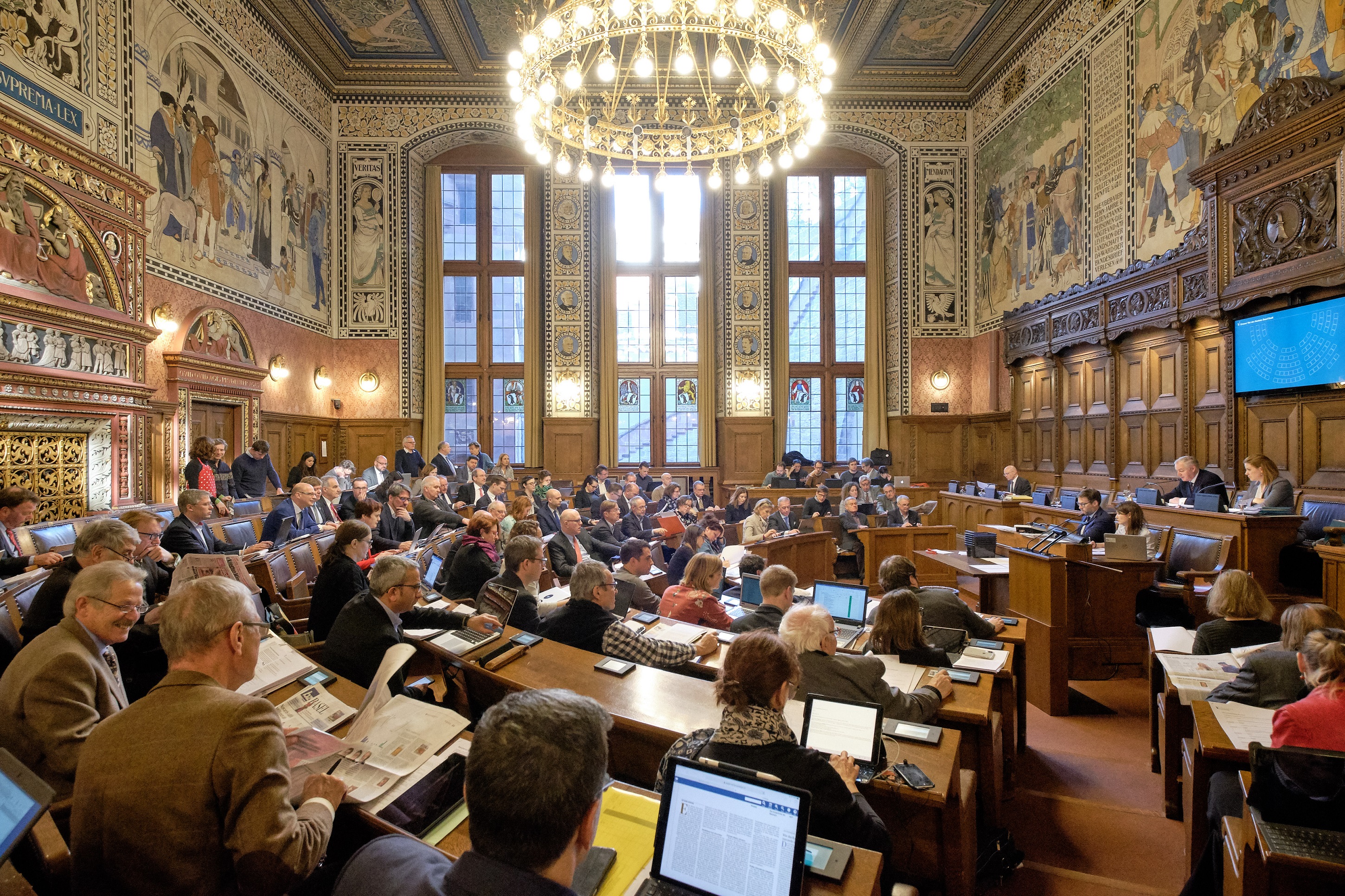 Stimmenzähler und Ratssekretariat um Thomas Dähler