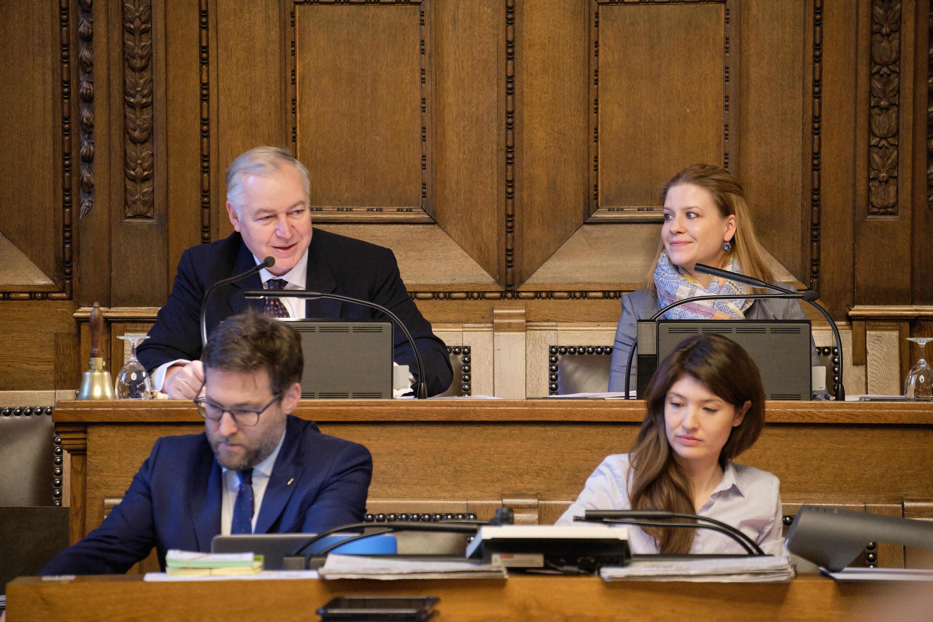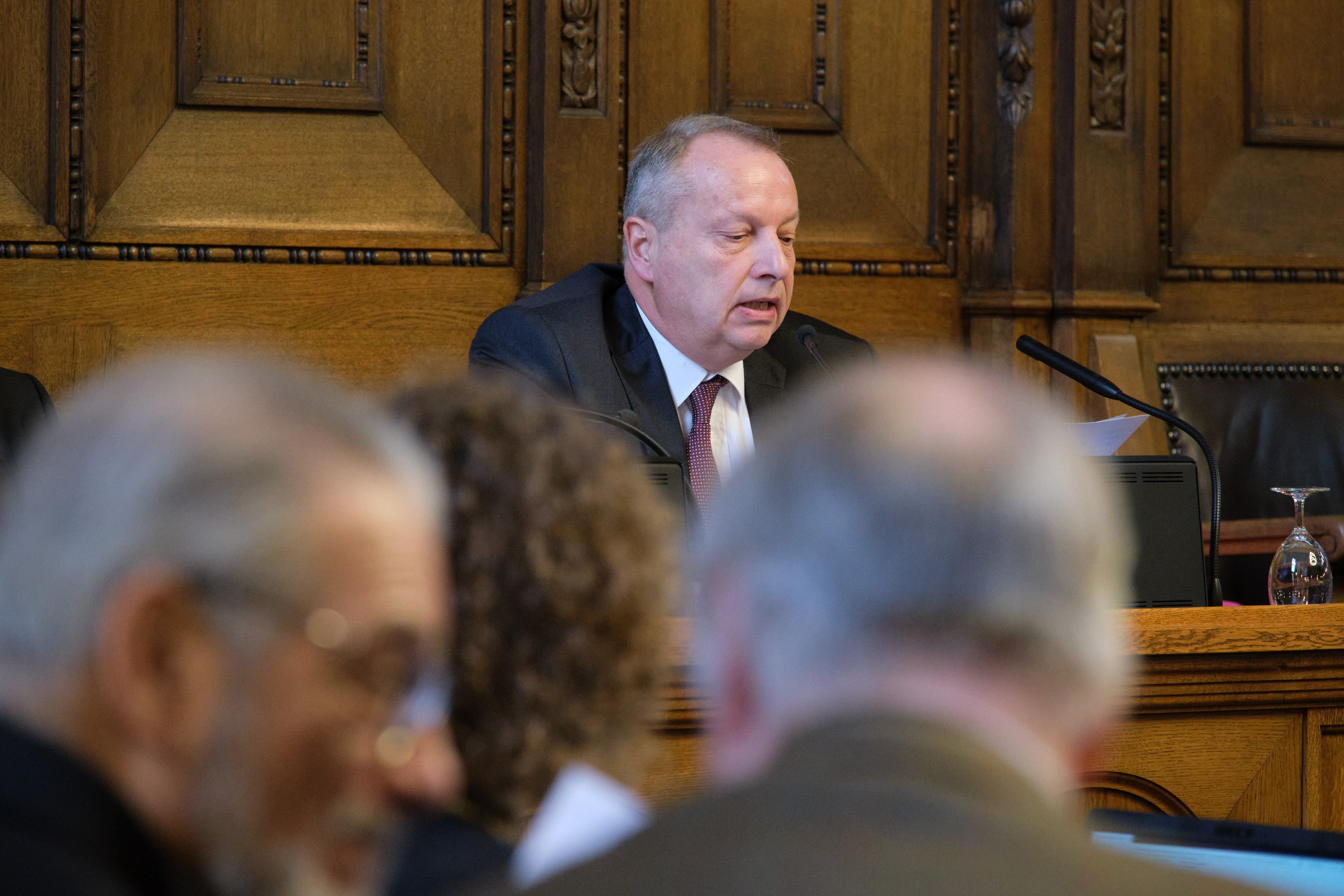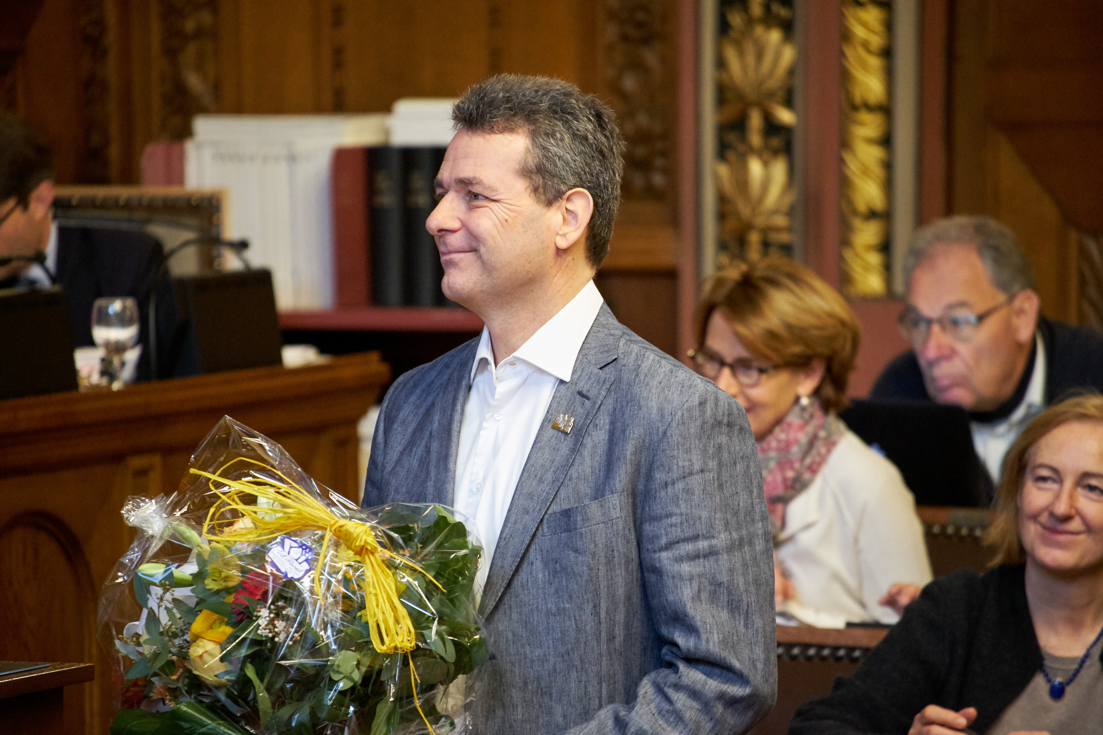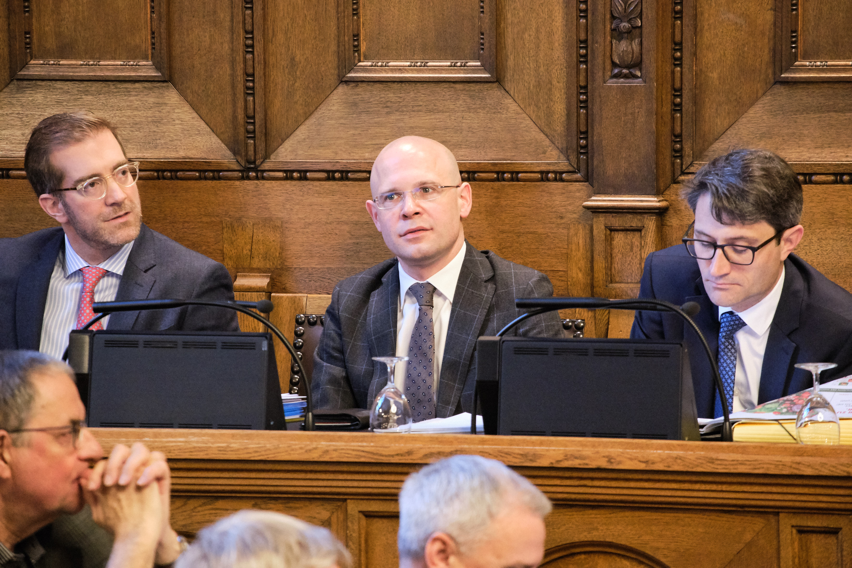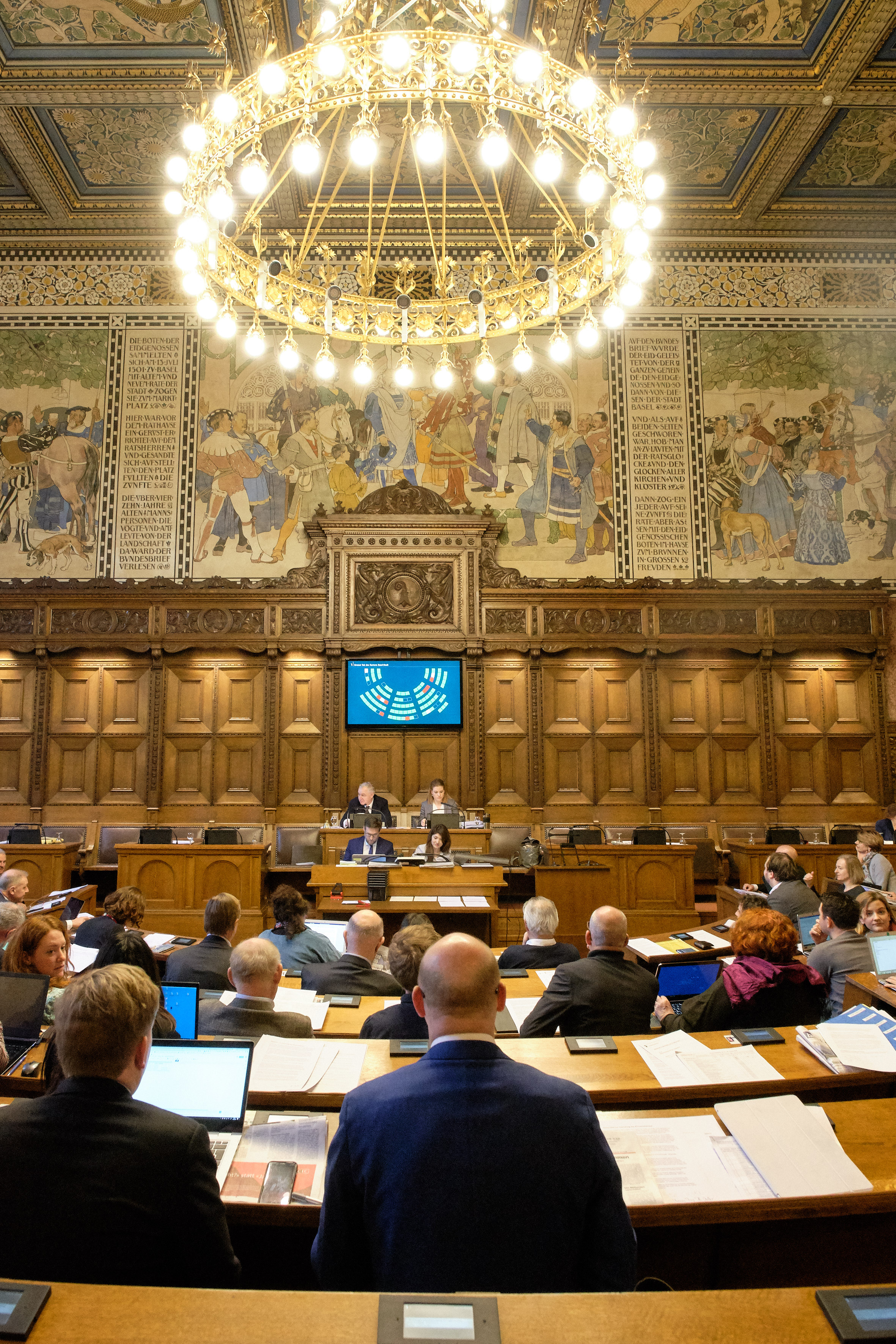 Stimmenzähler und Ratssekretariat um Thomas Dähler