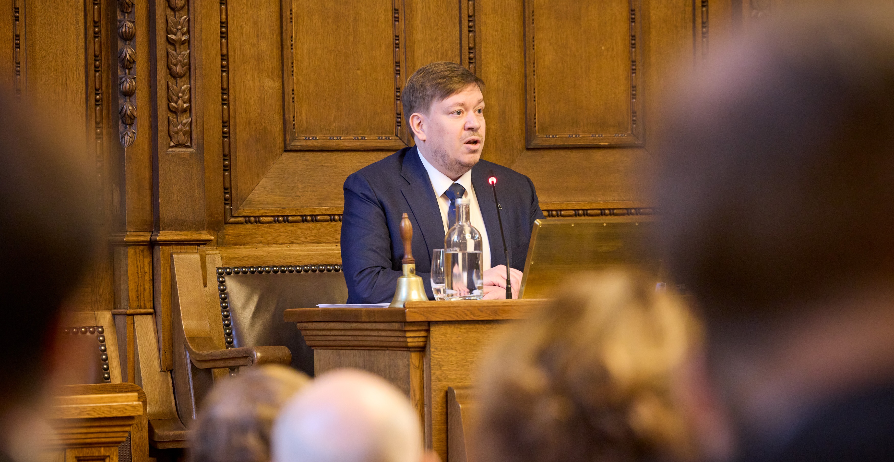 Ratspräsident Balz Herter hat seine Schlussrede vor dem Grossen Rat gehalten. Er knüpfte an sein Jahresmotto «Brücken bauen» an und mahnte, dass dieser Auftrag gesellschaftlich wie politisch dringend bleibe: «Wenn die Töne schriller werden und die Geduldsfäden kürzer, dann ist es die nobelste Aufgabe der Politik, das Verbindende über das Trennende zu stellen.» Der scheidende Präsident blickte auf zahlreiche Begegnungen seines Amtsjahres mit tausenden stillen Brückenbauerinnen und Brückenbauern zurück – ohne sie würde das Bauwerk Basel Risse bekommen. Auch der Grosse Rat habe gezeigt, dass politischer Diskurs trotz unterschiedlicher Meinungen von Anstand und Respekt getragen sein könne. Er blicke mit tiefer Dankbarkeit auf sein Amtsjahr und mit der beruhigenden Erkenntnis: Die Brücken in Basel halten. Dennoch gelte: «Tragen wir Sorge zu Basel. Bauen wir weiter.»